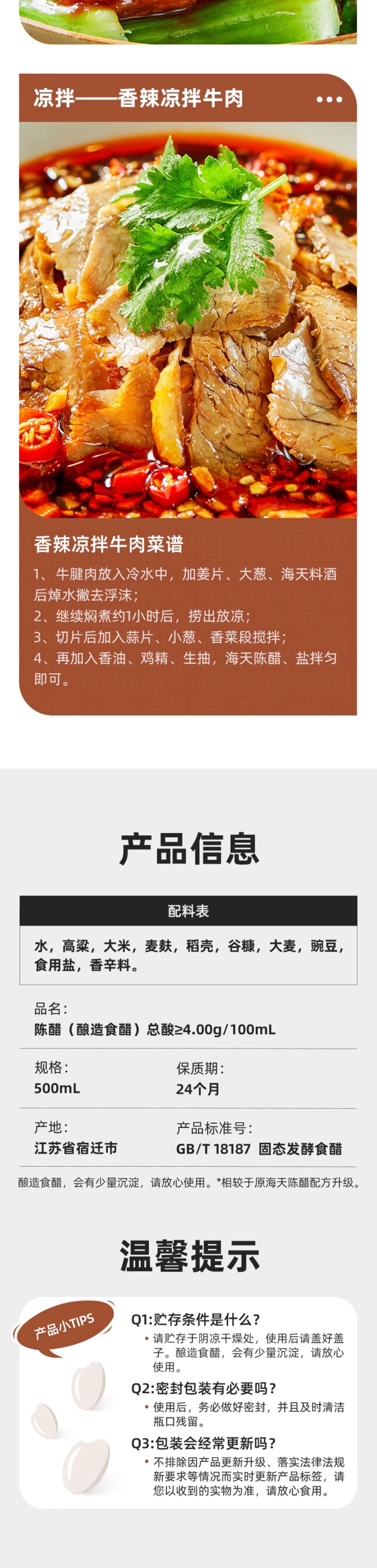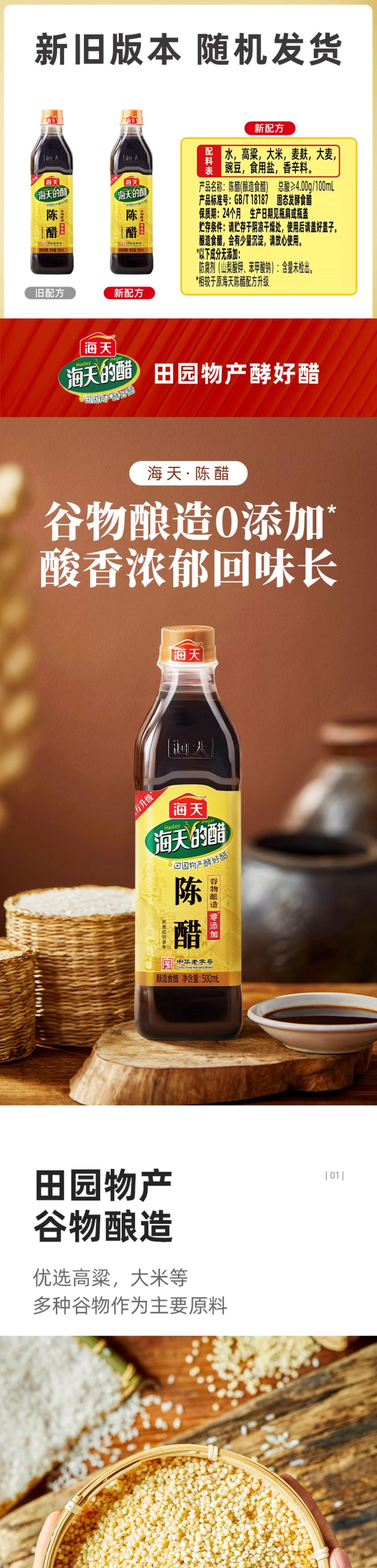 海天 陈醋PET方瓶500mL*2瓶白醋新鲜健康美味 KJDF-20241213-0011