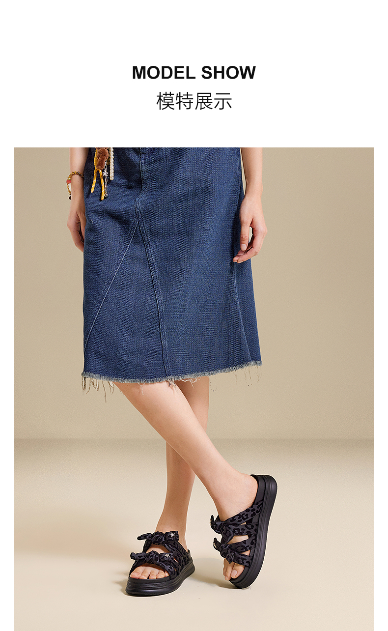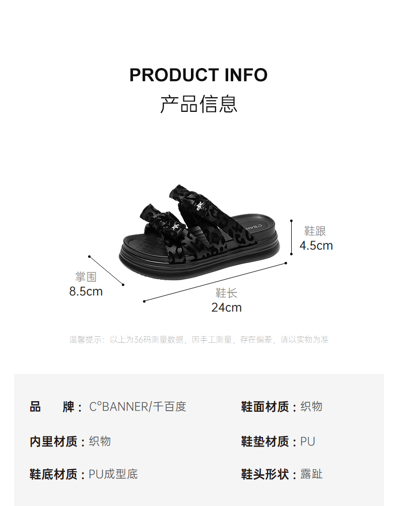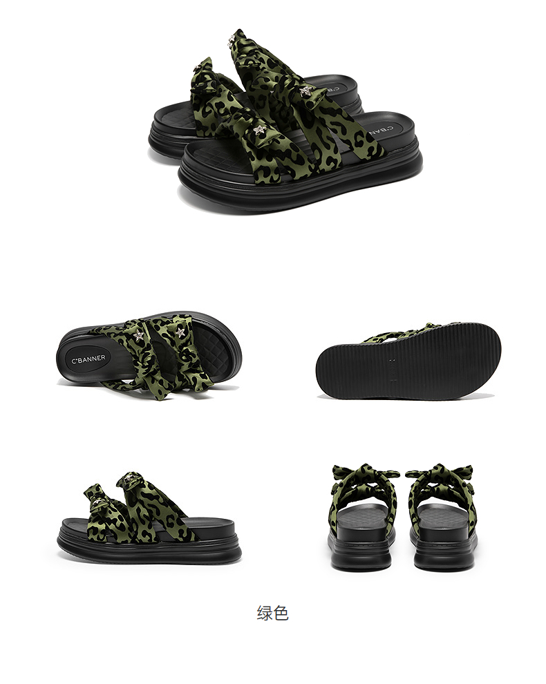 千百度厚底蝴蝶结凉拖鞋女款琥珀平底一字拖外穿拖鞋A25385533