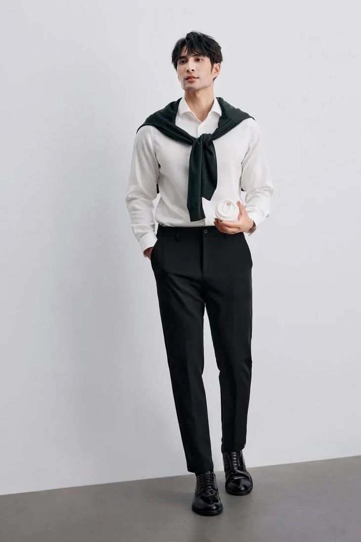 这款裤子有黑色、藏青色和卡其色三色可选。