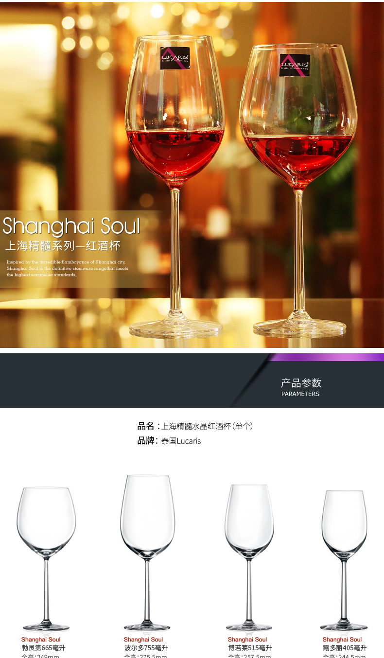 泰国LUCARIS上海精髓系列勃艮第/波尔多葡萄酒杯