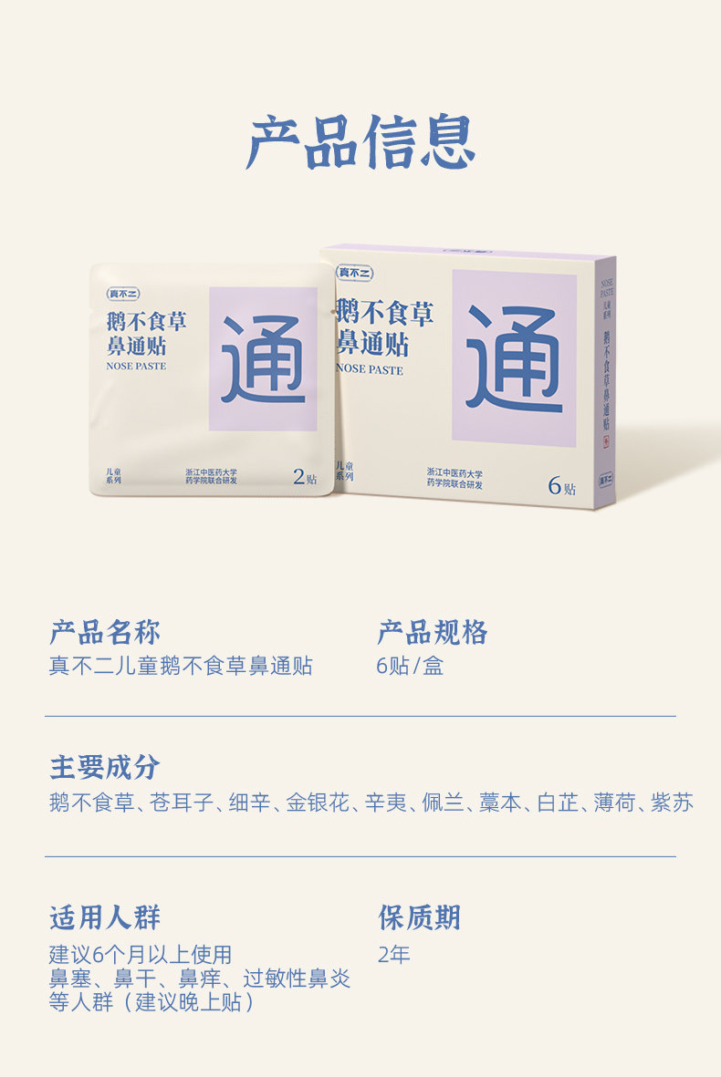 预售30天!【真不二】鹅不食草鼻通贴3盒装儿童成人贴鼻塞通鼻神器晚安贴( 6贴/盒 6个月及以上可用)