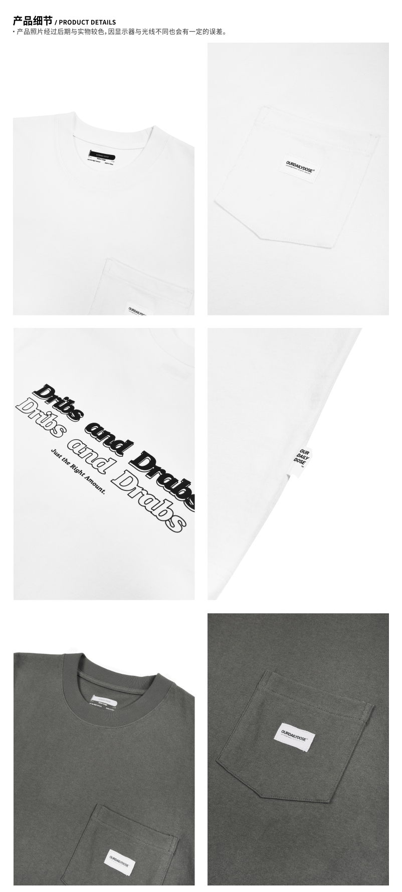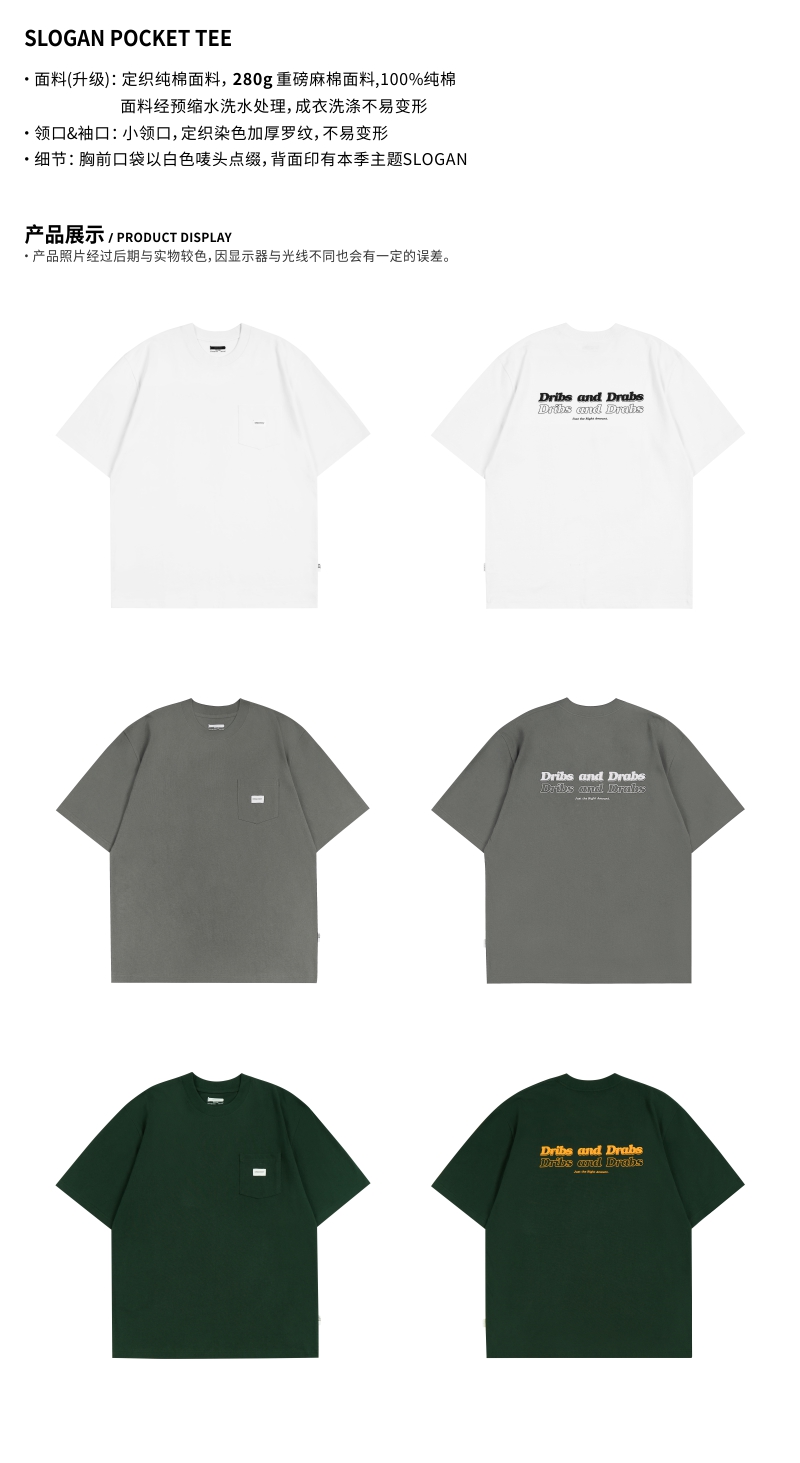 OURDAILYDOSE 21SS原创潮牌重磅麻棉水洗标语字母口袋圆领短袖T恤