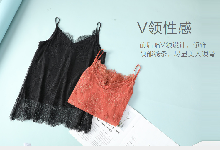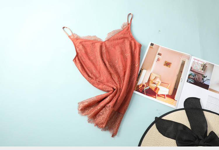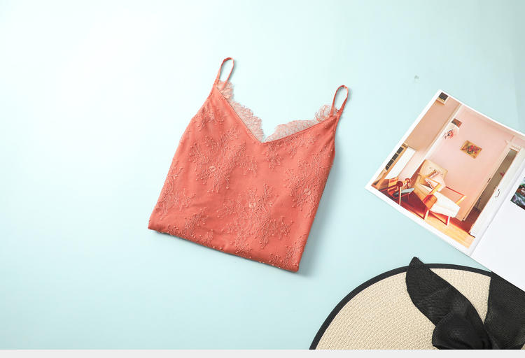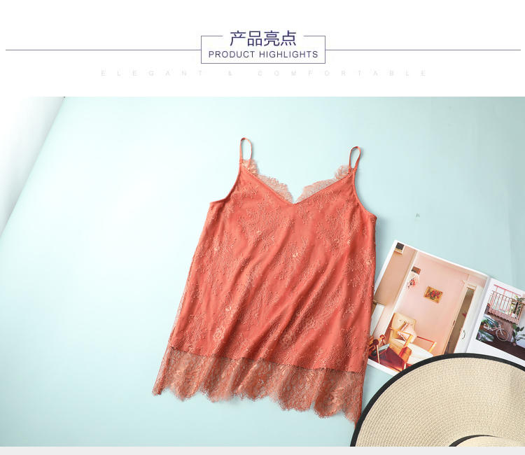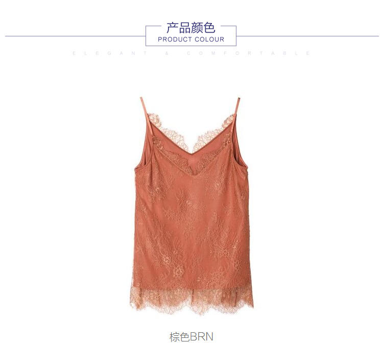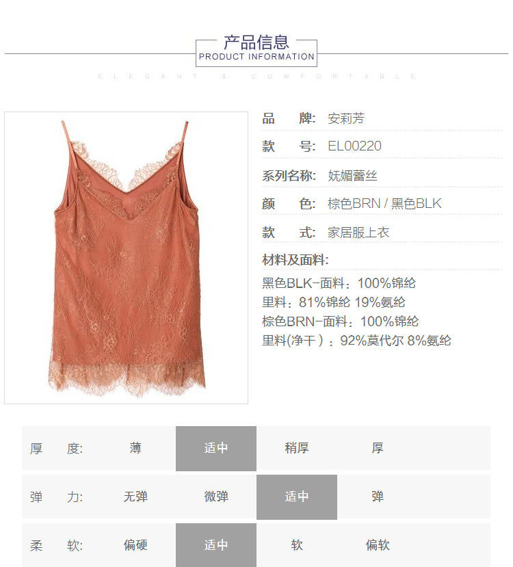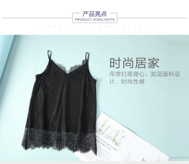 安莉芳性感深V蕾丝吊带睡衣女士舒适薄款冰丝家居上衣EL00220