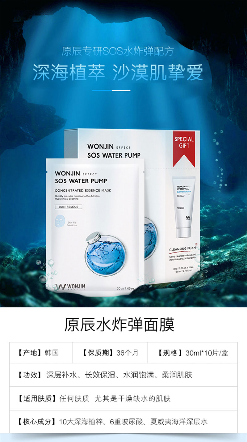 韩国原辰 安瓶补水保湿急救弹力面膜10片/盒