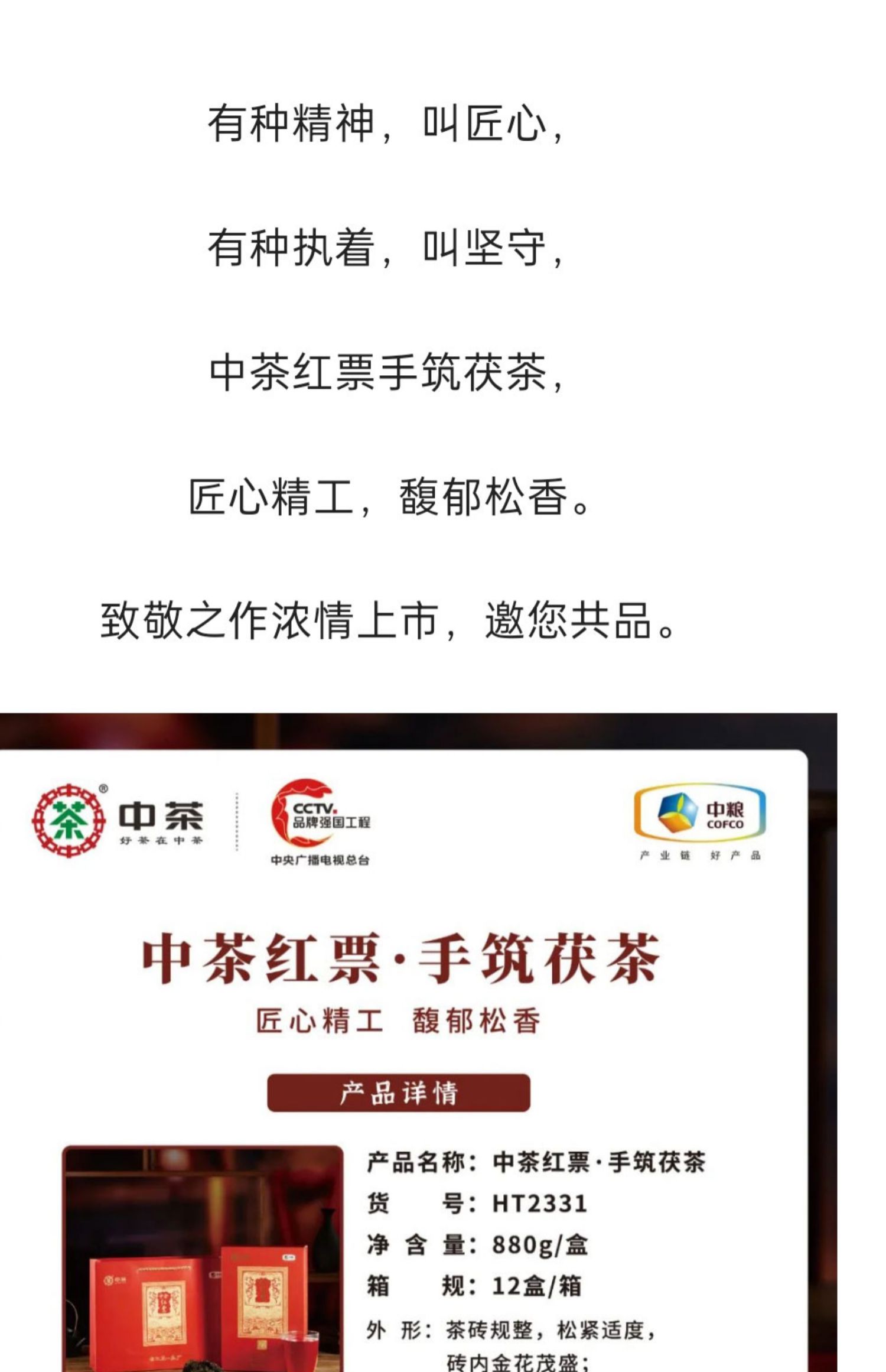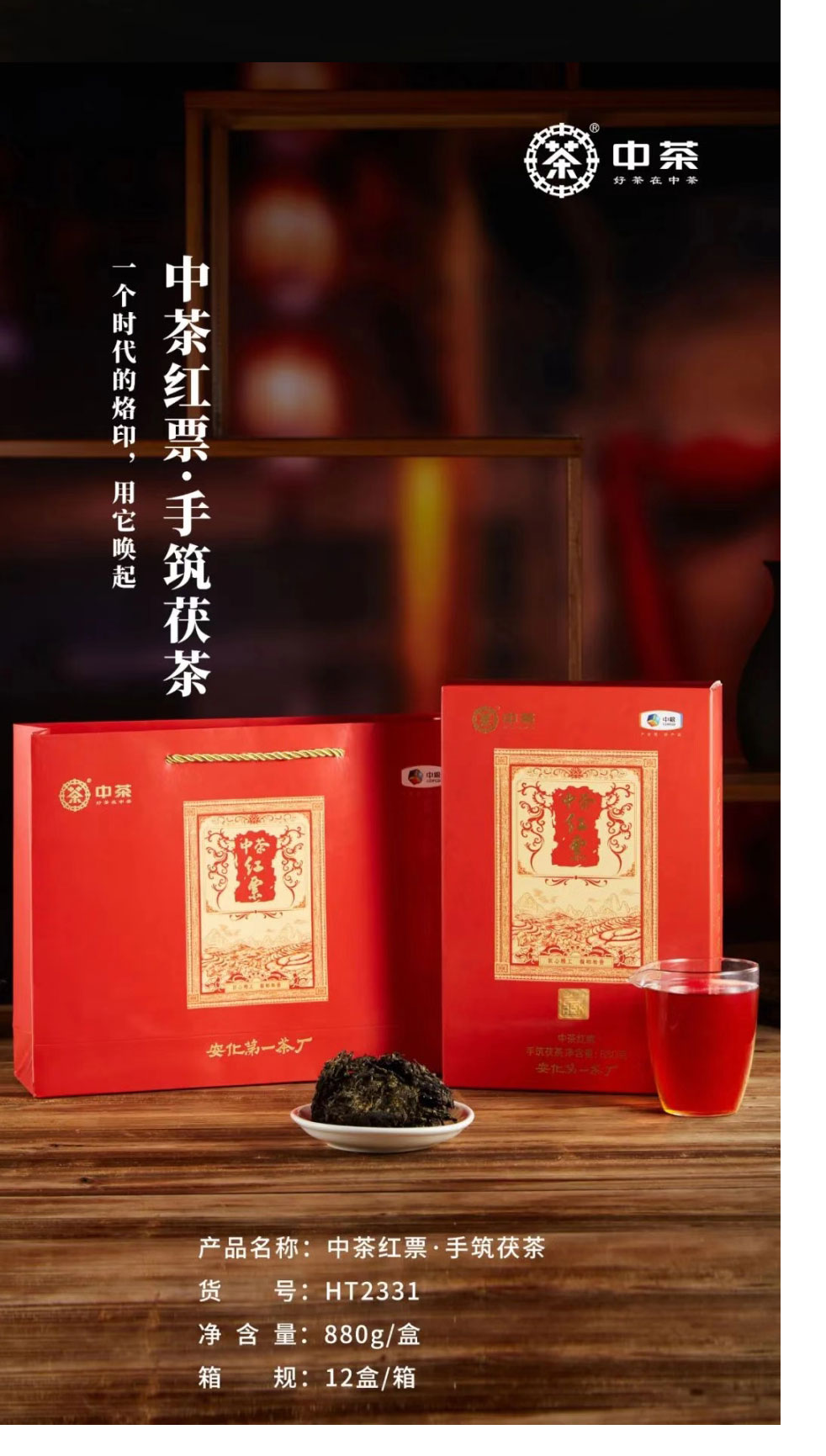 中粮-中茶安化黑茶·中茶中粮金花茯砖茶红票880克/盒/原产地直发