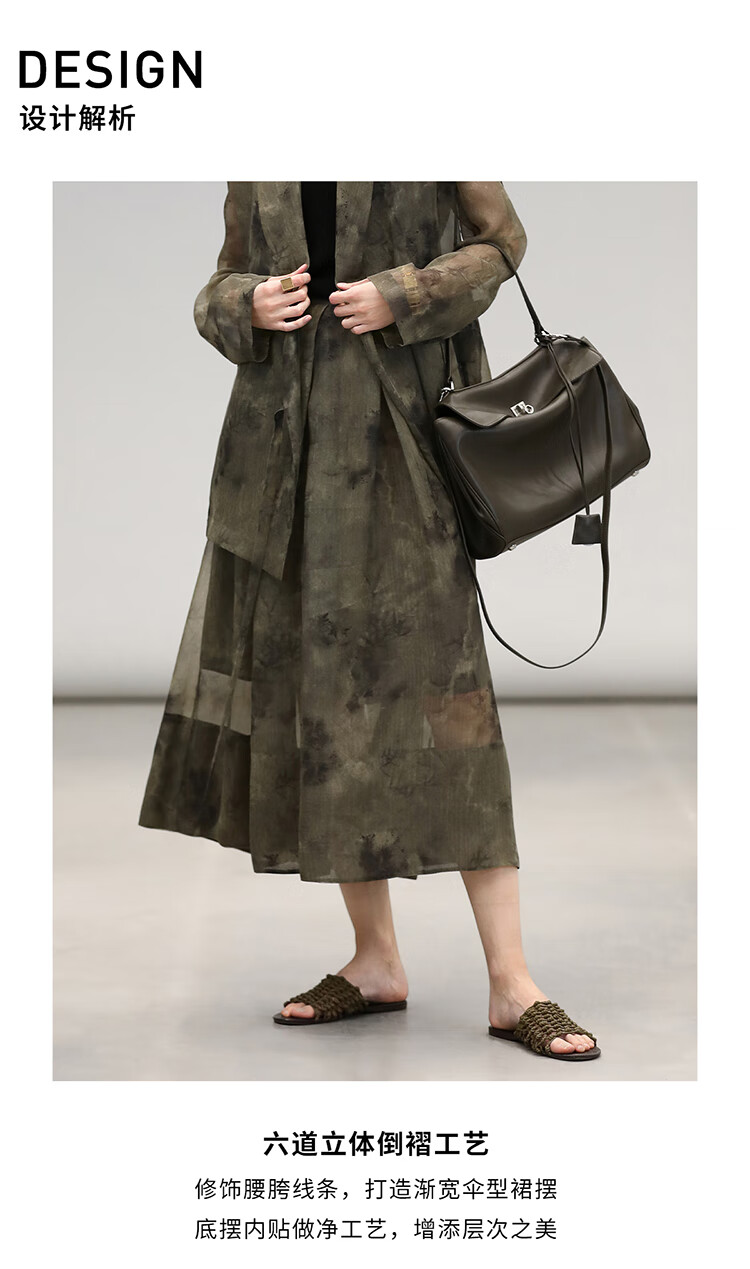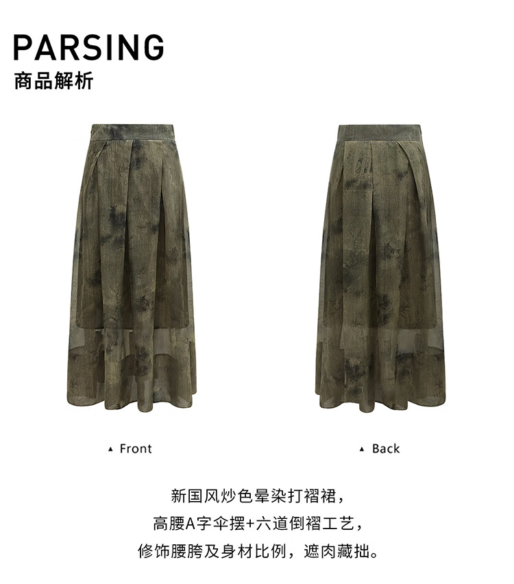 COCOBELLA新中式老钱风古法炒色晕染半身裙女国风捏褶长裙HS7057
