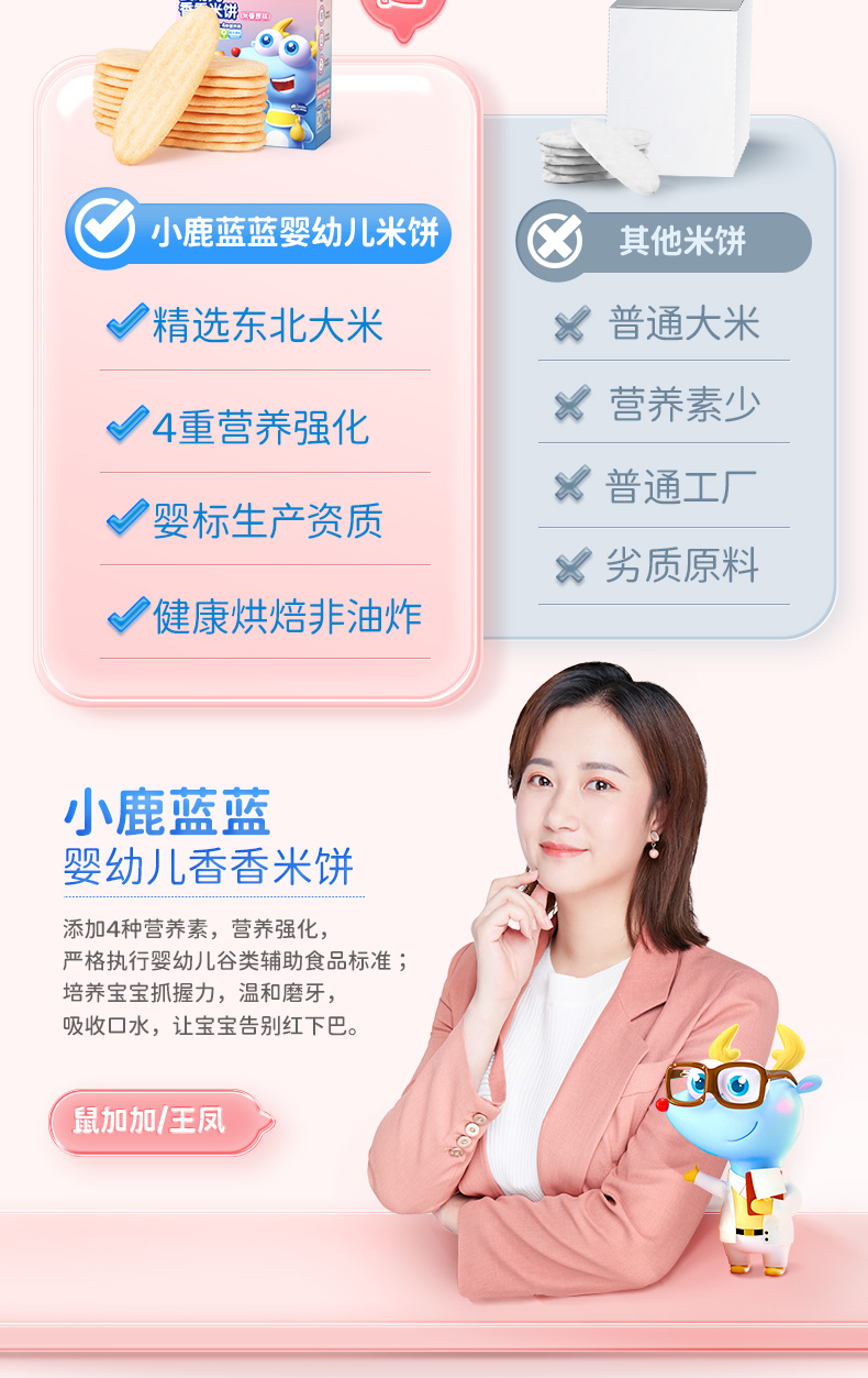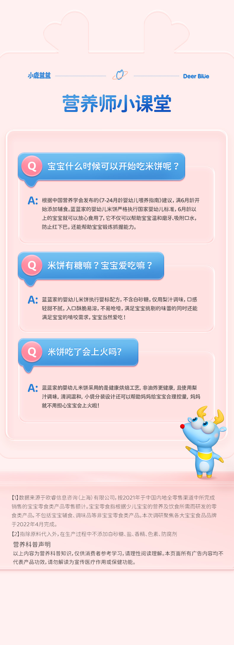 - 小鹿蓝蓝始终致力于为主人提供更优质、高性价比的产品、服务和体验,共同打造婴童零食生态圈,提升母婴行业的国货自信,守护和陪伴新一代儿童健康、快乐地成长。
