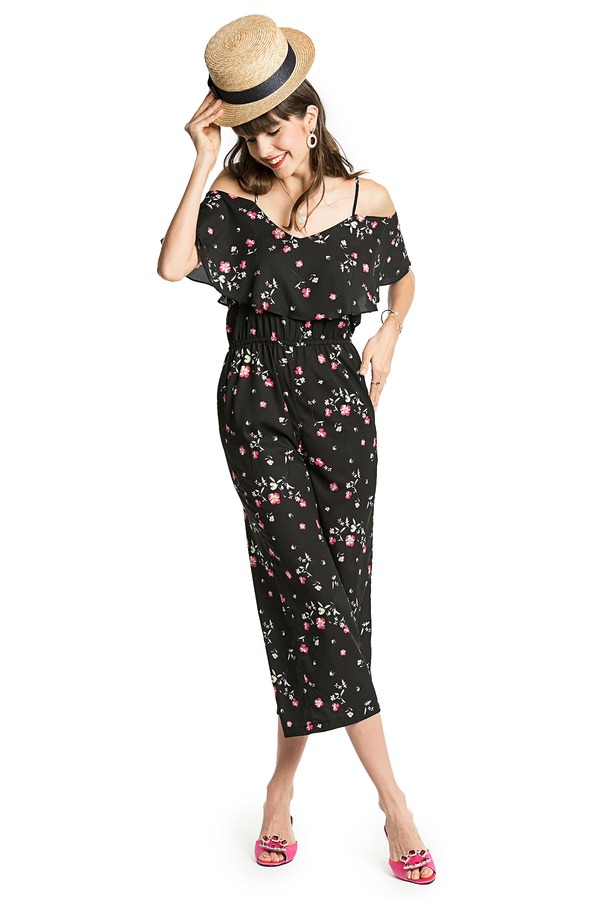 EMC亿美丞 印花挖肩雪纺连身裤 1120