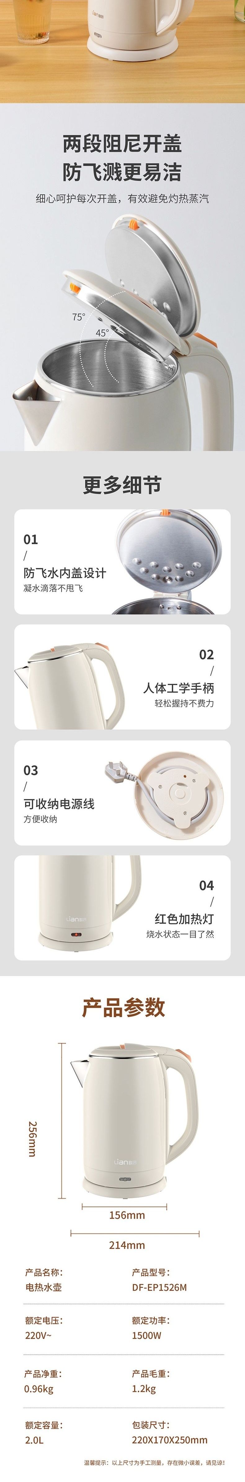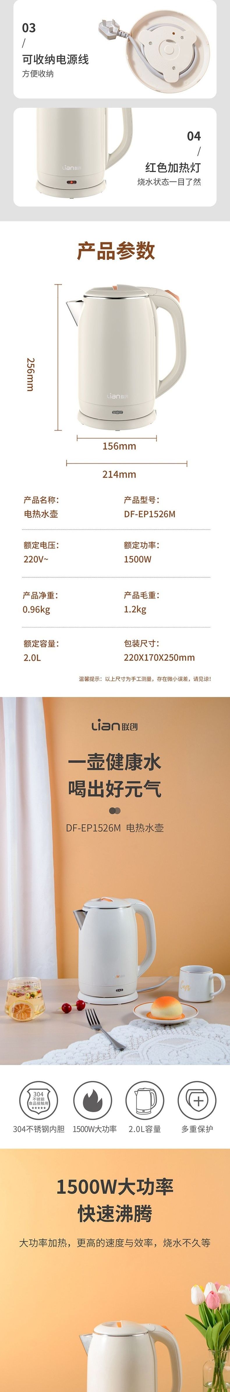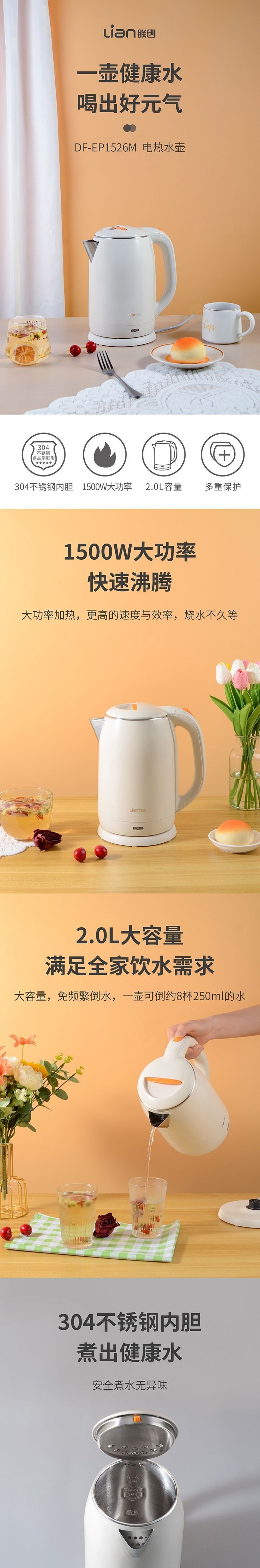 联创 电热水壶 DF-EP1526M 自动断电烧水壶家用大容量快烧