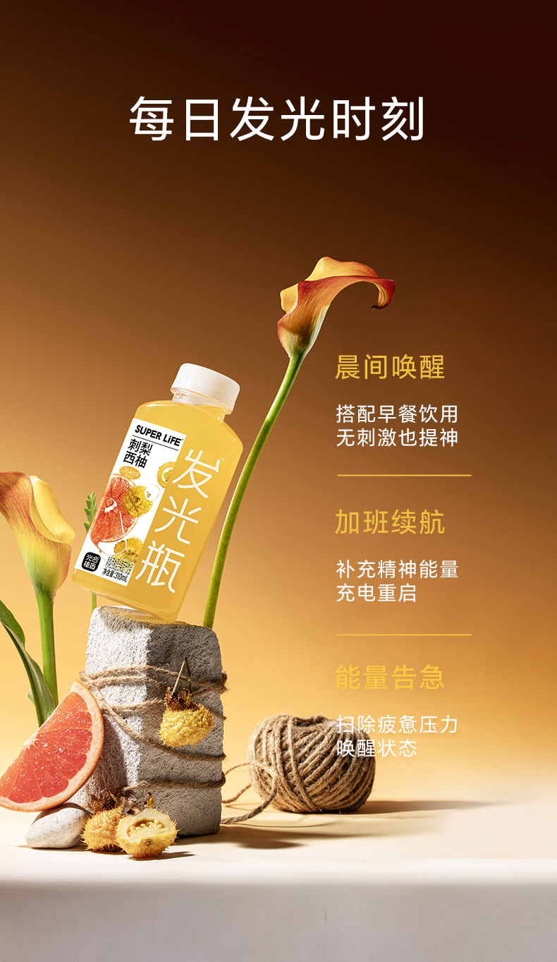【自营】光合植造发光瓶刺梨西柚果蔬汁310ml*6瓶一提装发货