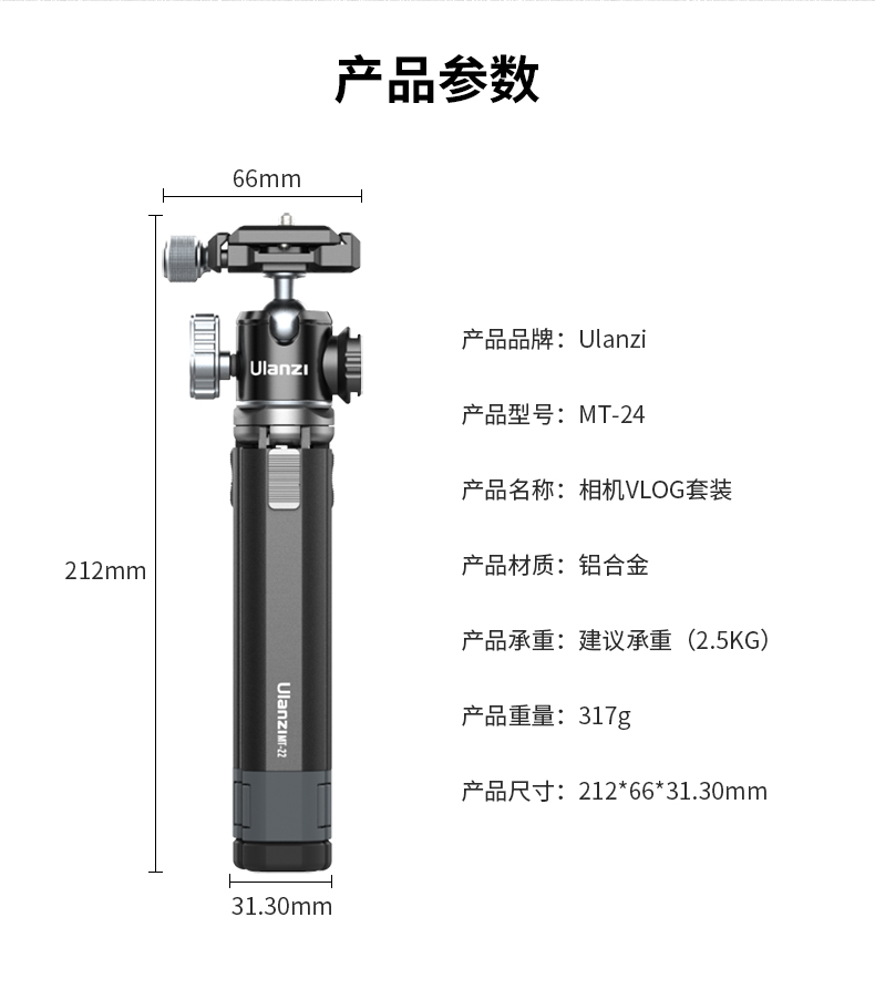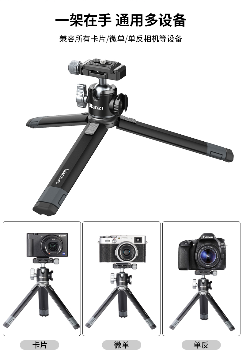 Ulanzi优篮子 MT-24迷你金属桌面延长三脚架相机微单通用便携摄影拍照vlog伸缩阿卡冷靴拓展支架云台三角架