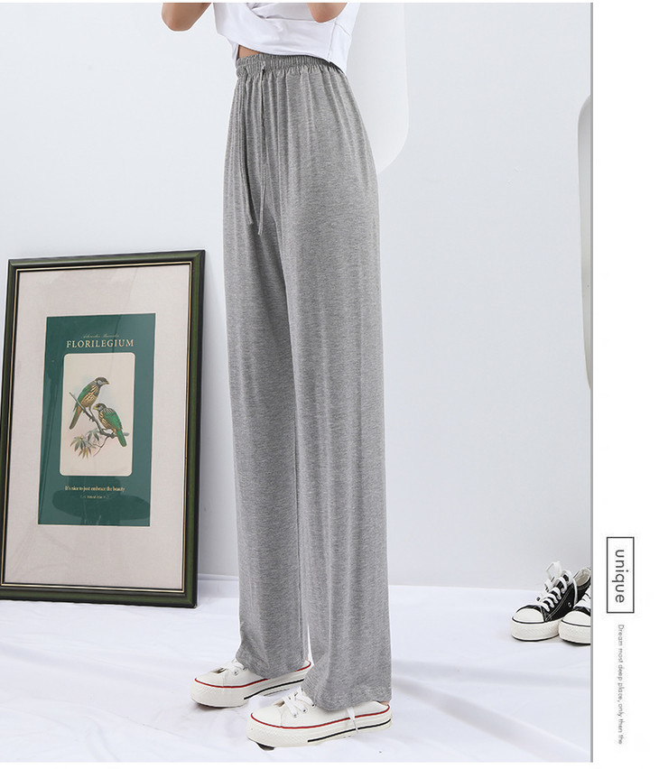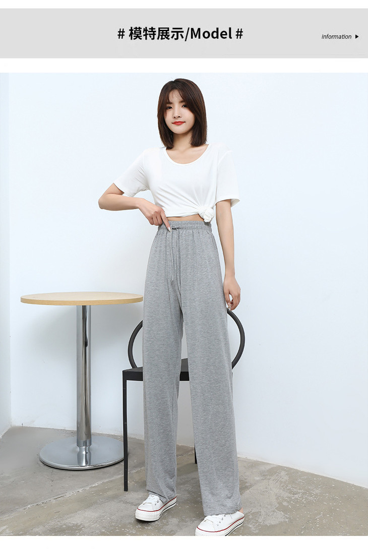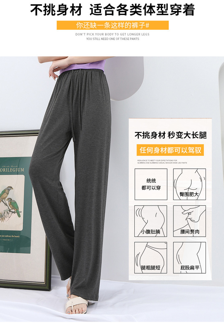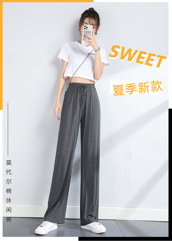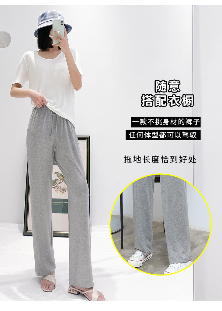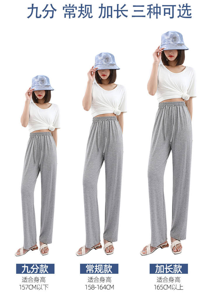灰色莫代尔阔腿裤 夏季薄款女高腰垂感宽松直筒休闲冰丝防蚊防晒裤