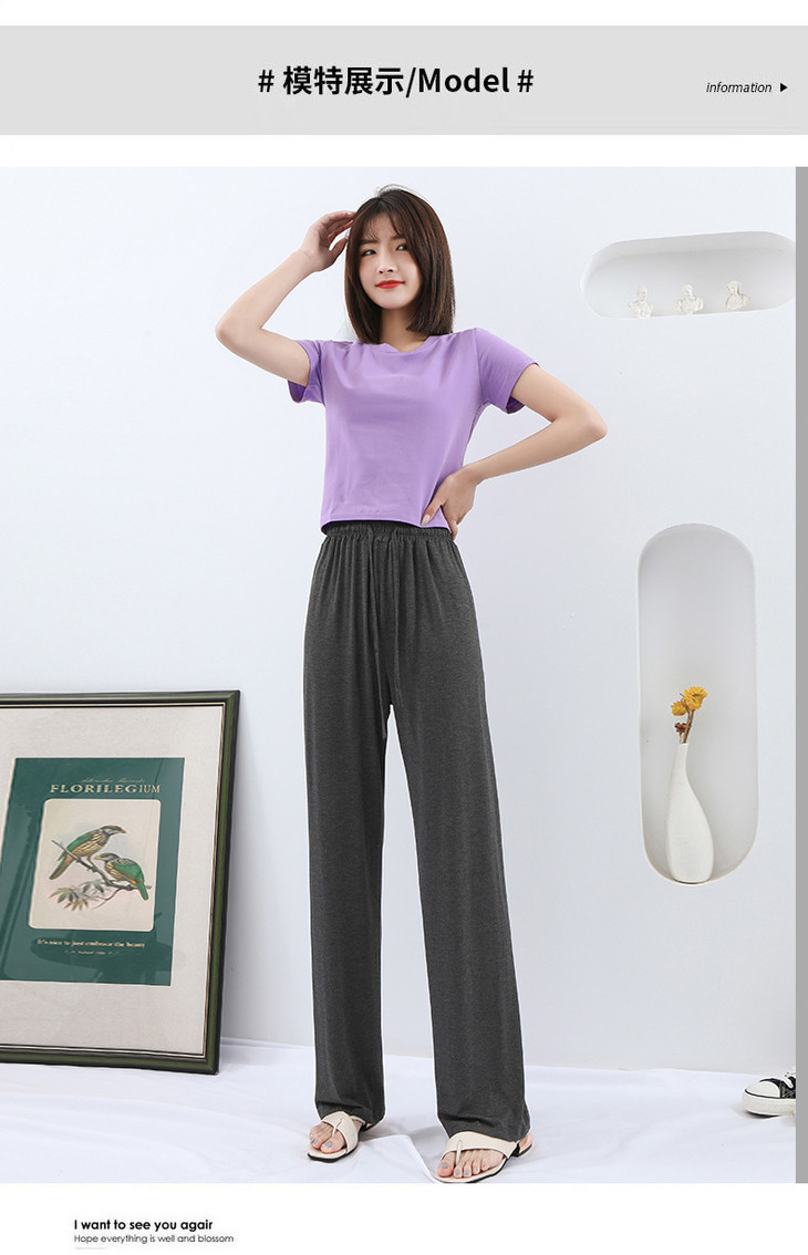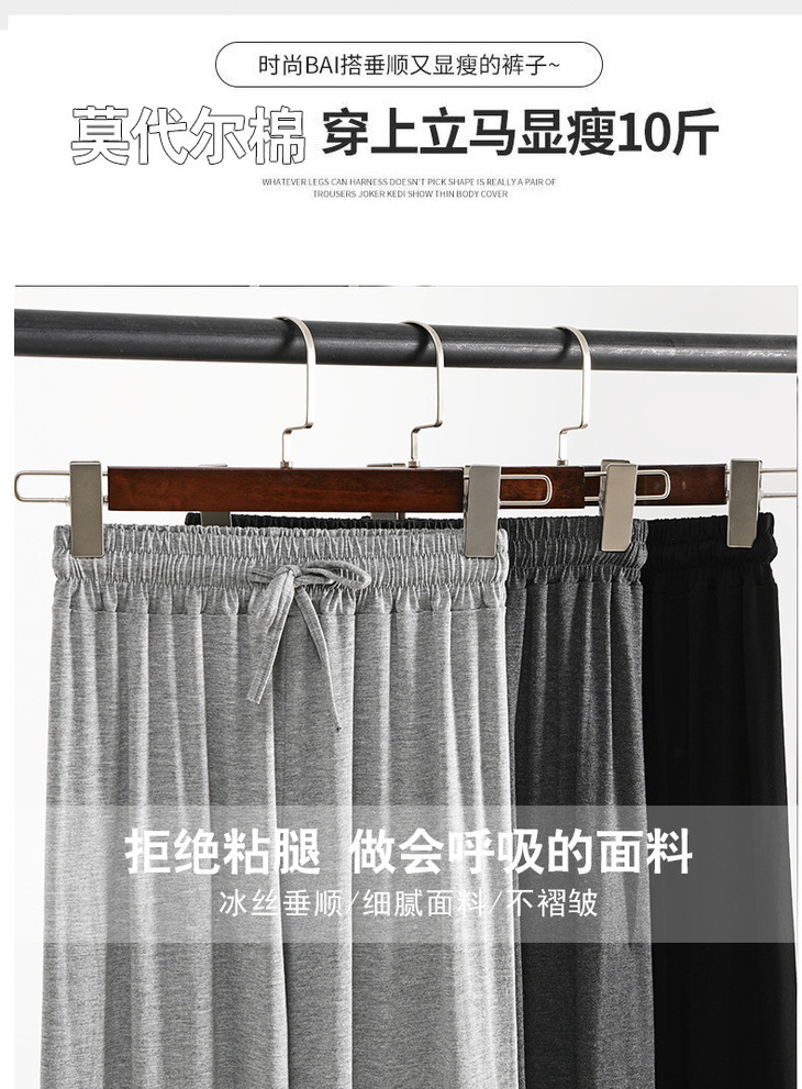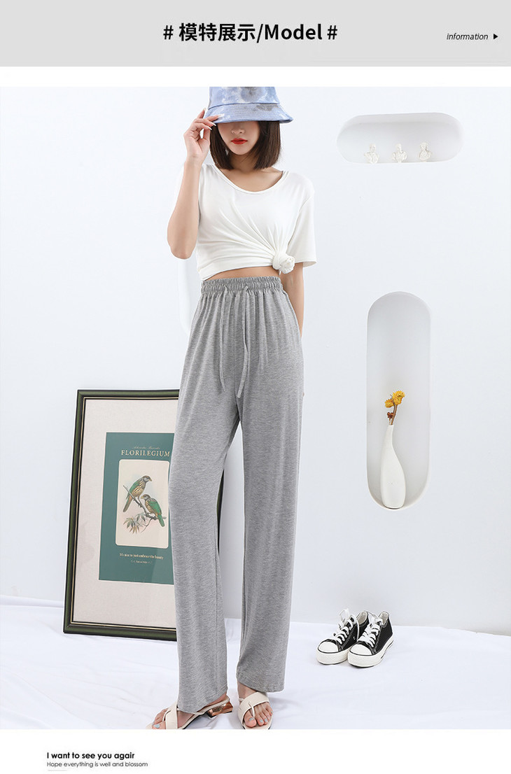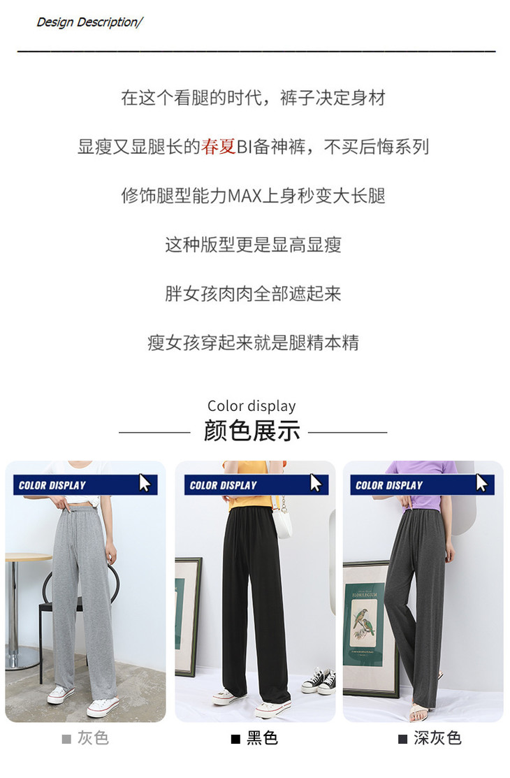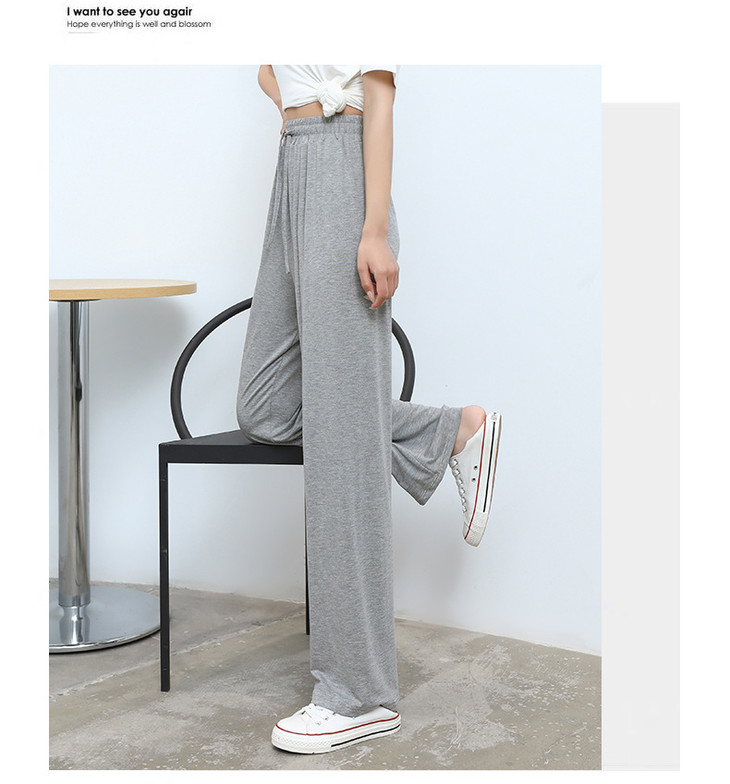 灰色莫代尔阔腿裤 夏季薄款女高腰垂感宽松直筒休闲冰丝防蚊防晒裤