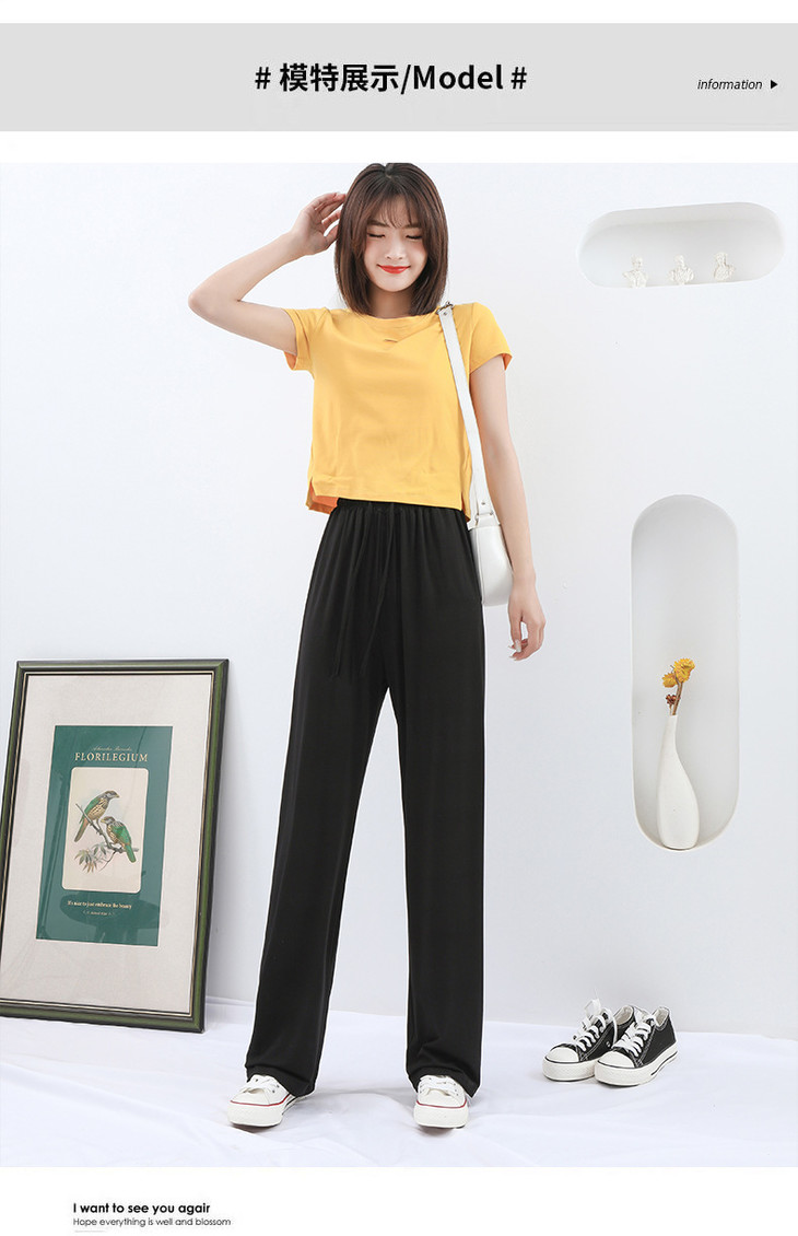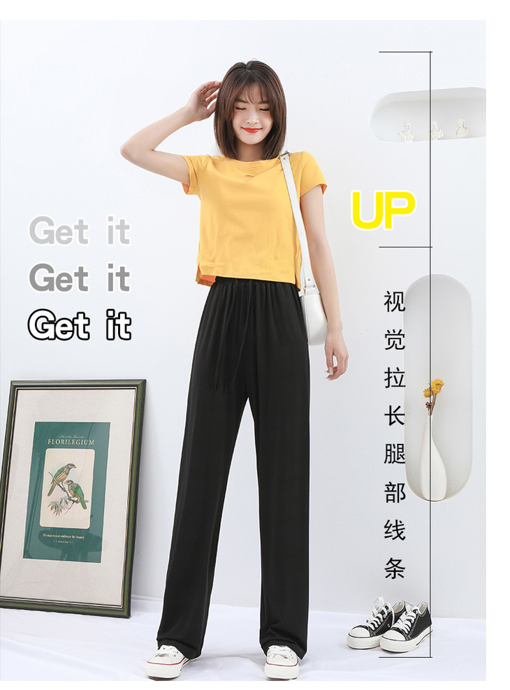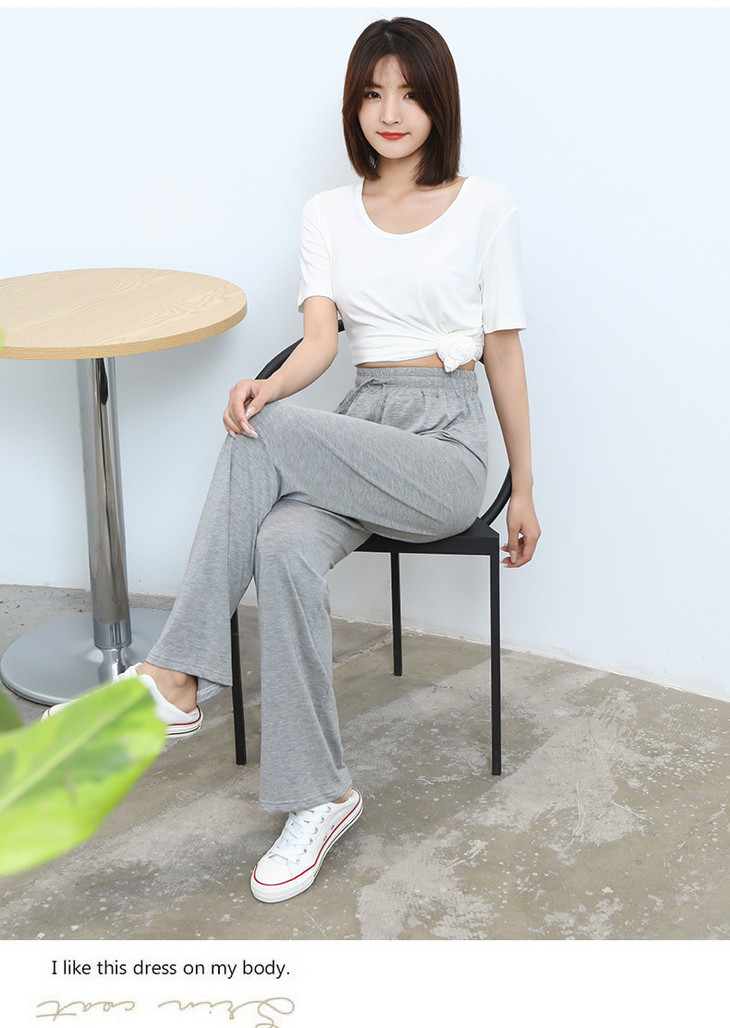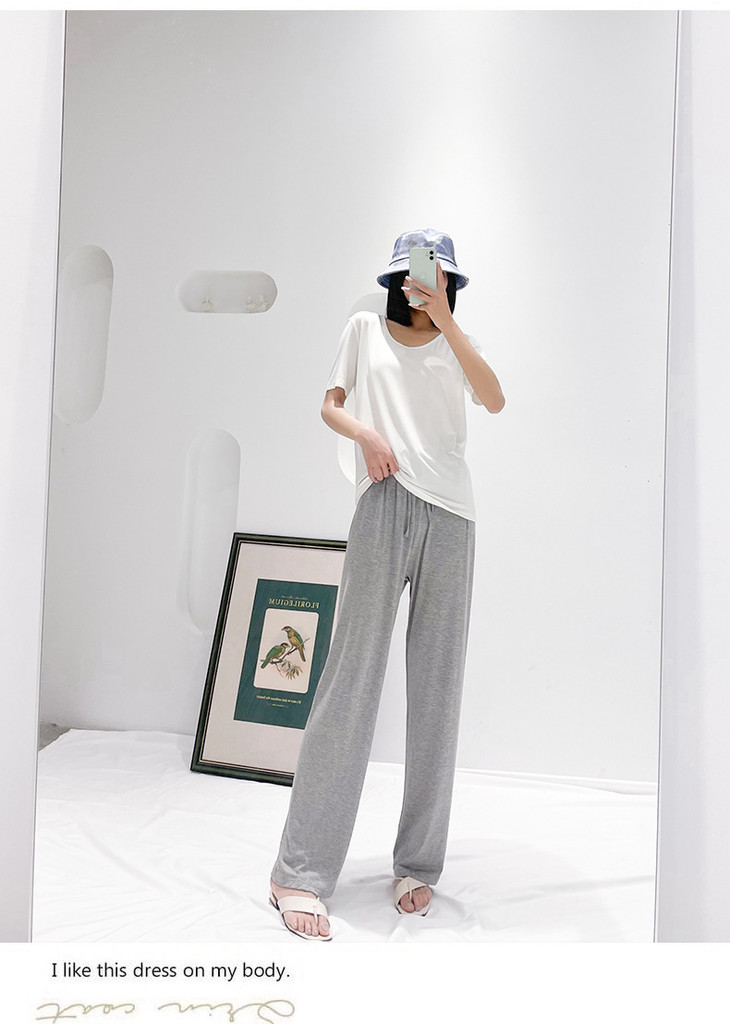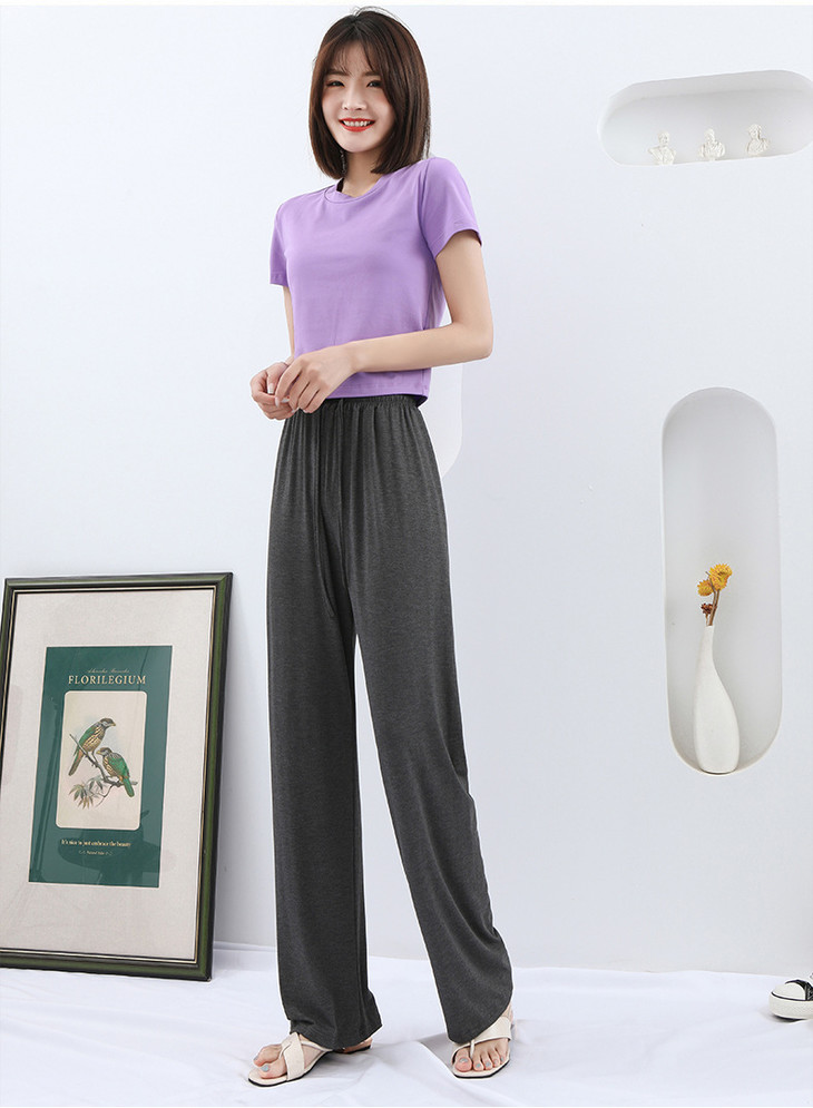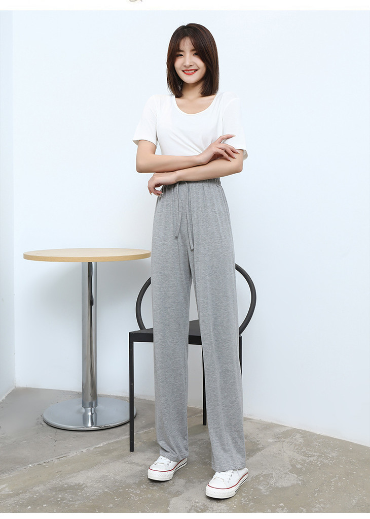 灰色莫代尔阔腿裤 夏季薄款女高腰垂感宽松直筒休闲冰丝防蚊防晒裤