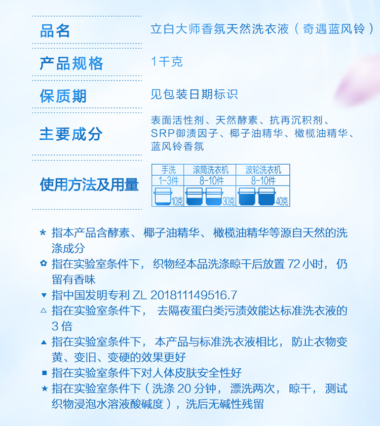 立白大师香氛液(蓝风铃)瓶装1kg 1-3瓶装