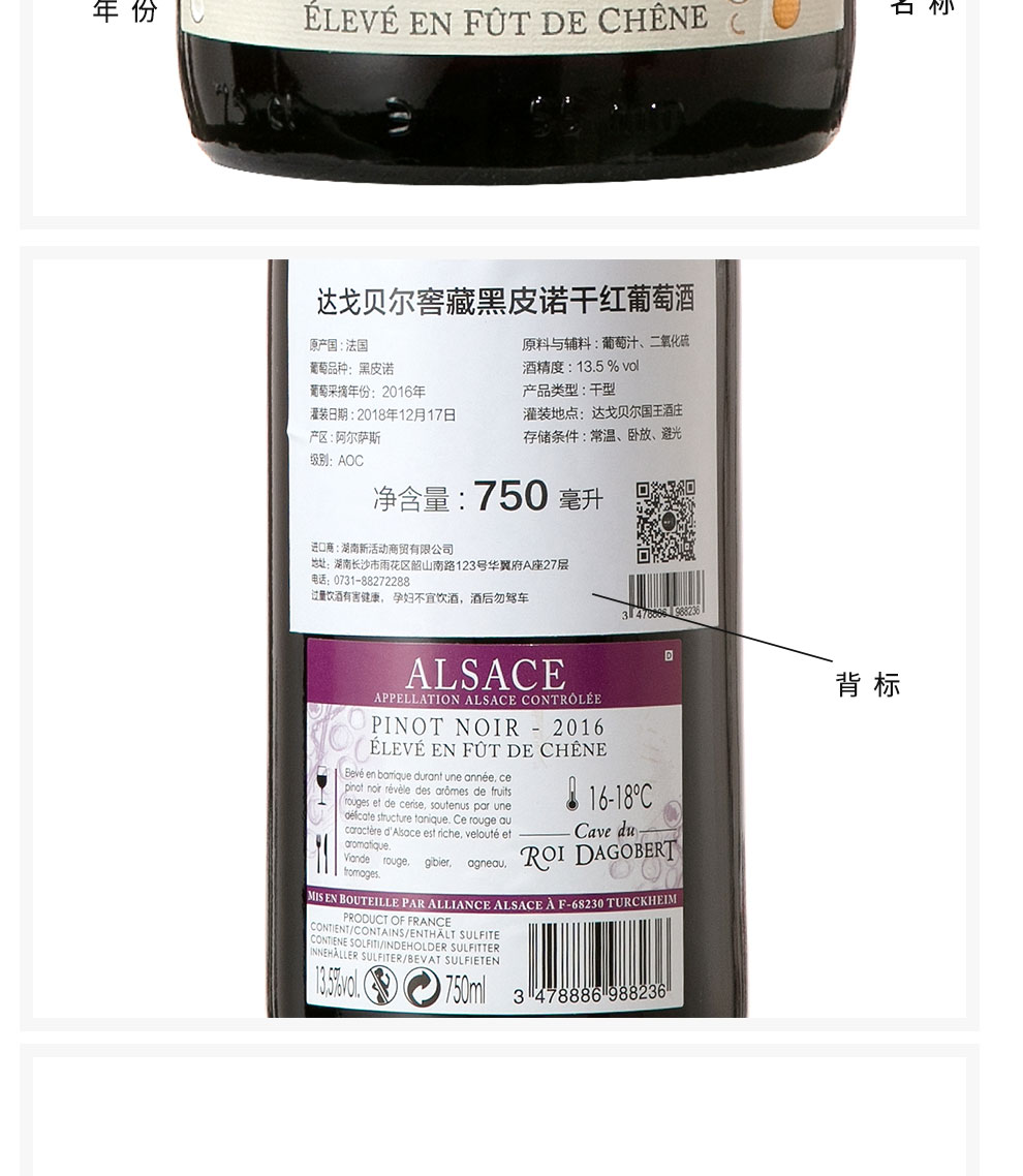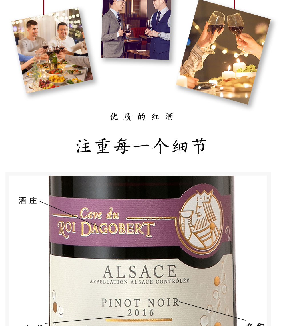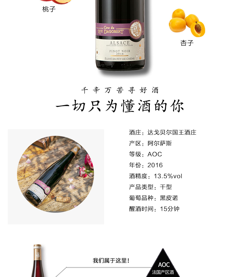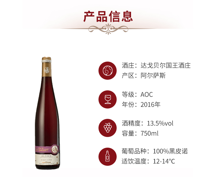 【赛斯乐】法国原装进口 阿尔萨斯达戈贝尔国王酒庄AOC窖藏黑皮诺干红葡萄酒精品酒庄酒 750ml