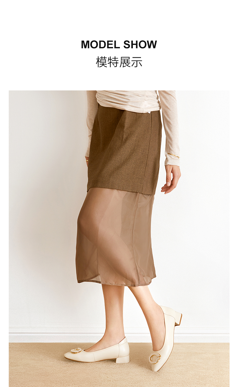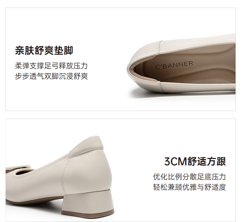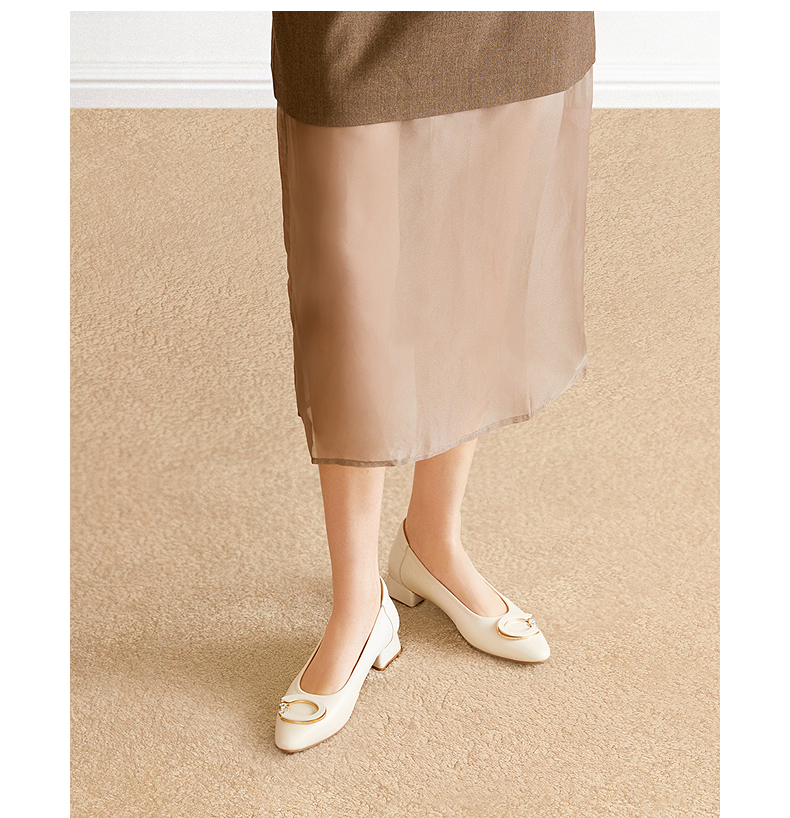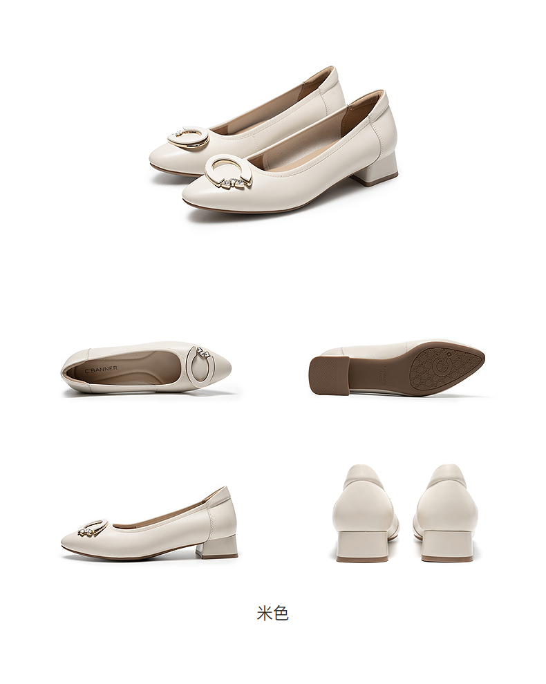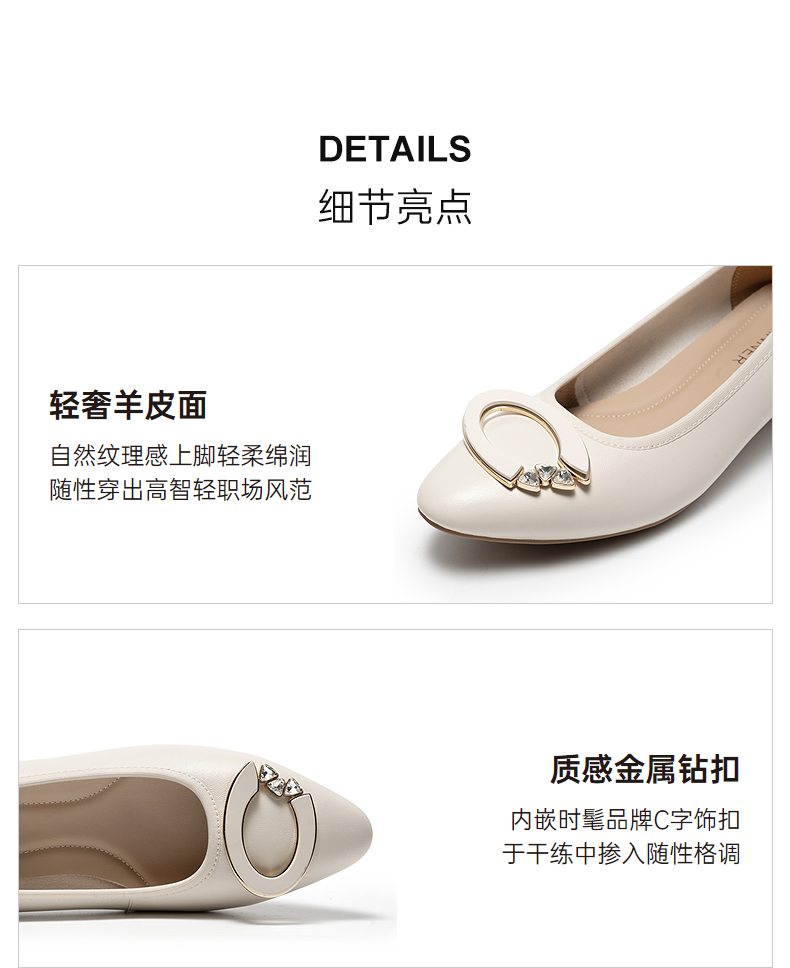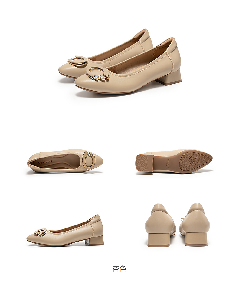 千百度轻奢羊皮C扣粗中跟鞋女2026春季新款通勤裸色晚晚浅口单鞋A26180367