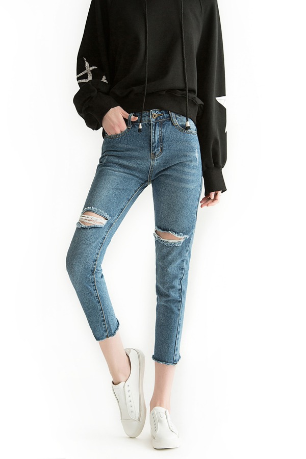 LNNNS 高腰破洞铅笔牛仔裤 1363