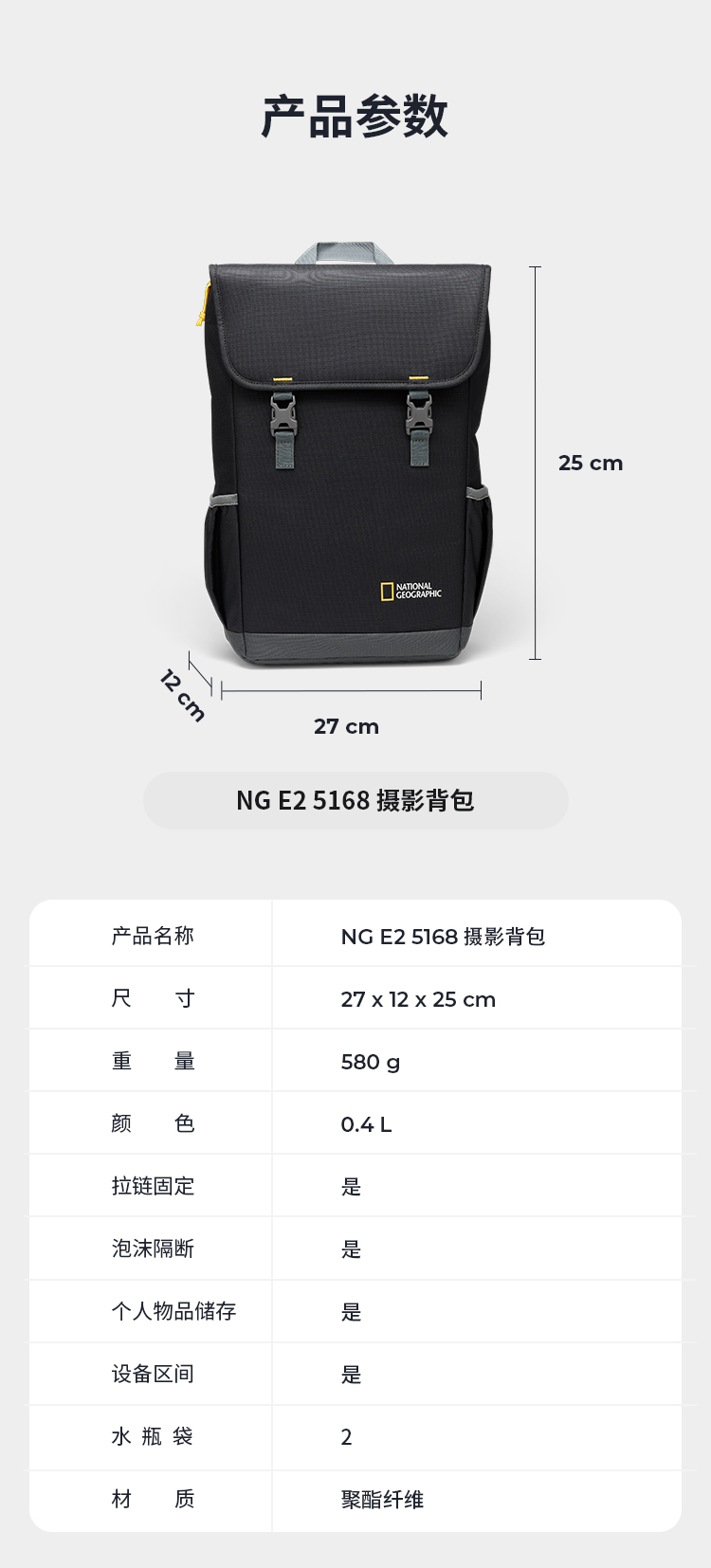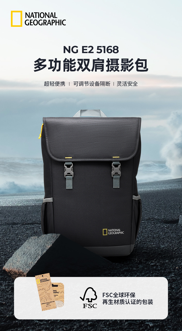 National Geographic摄影包 环保再生材质 为专业摄影师打造 轻量、舒适、可调节隔断 多产品适配 NG E2 5168