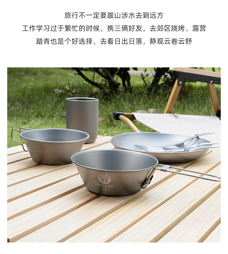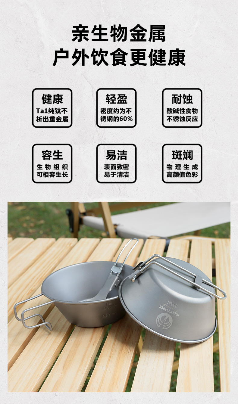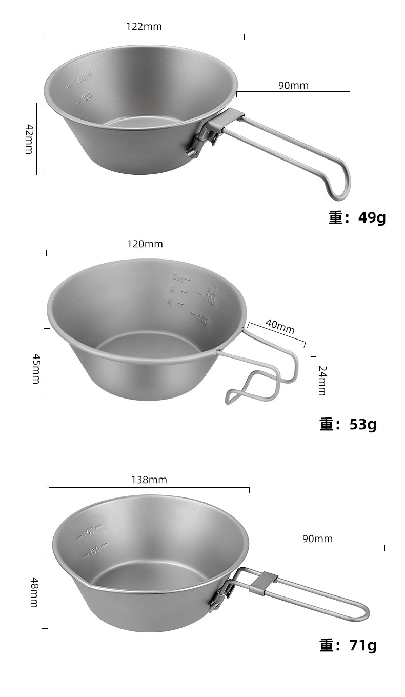 【纯钛户外雪拉碗】户外纯钛便携式雪拉碗多功能露营折叠手柄雪拉杯登山咖啡杯炊饮具