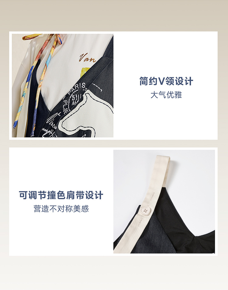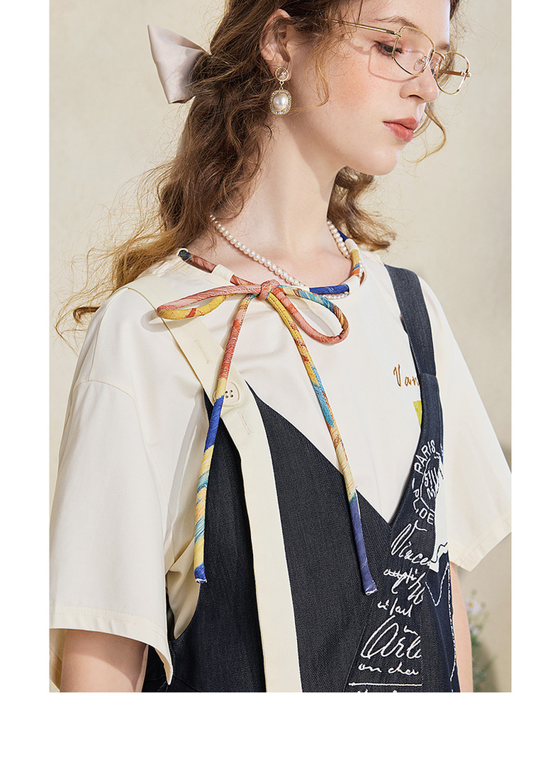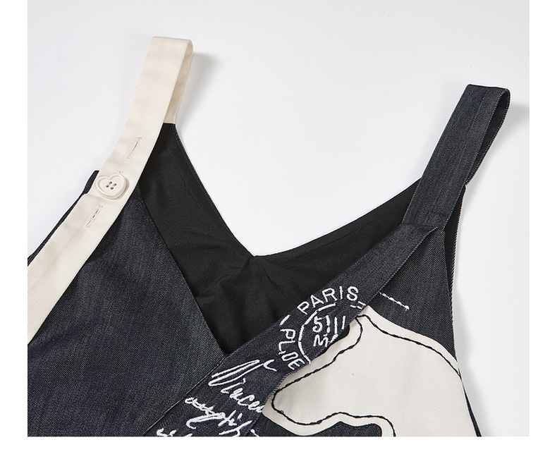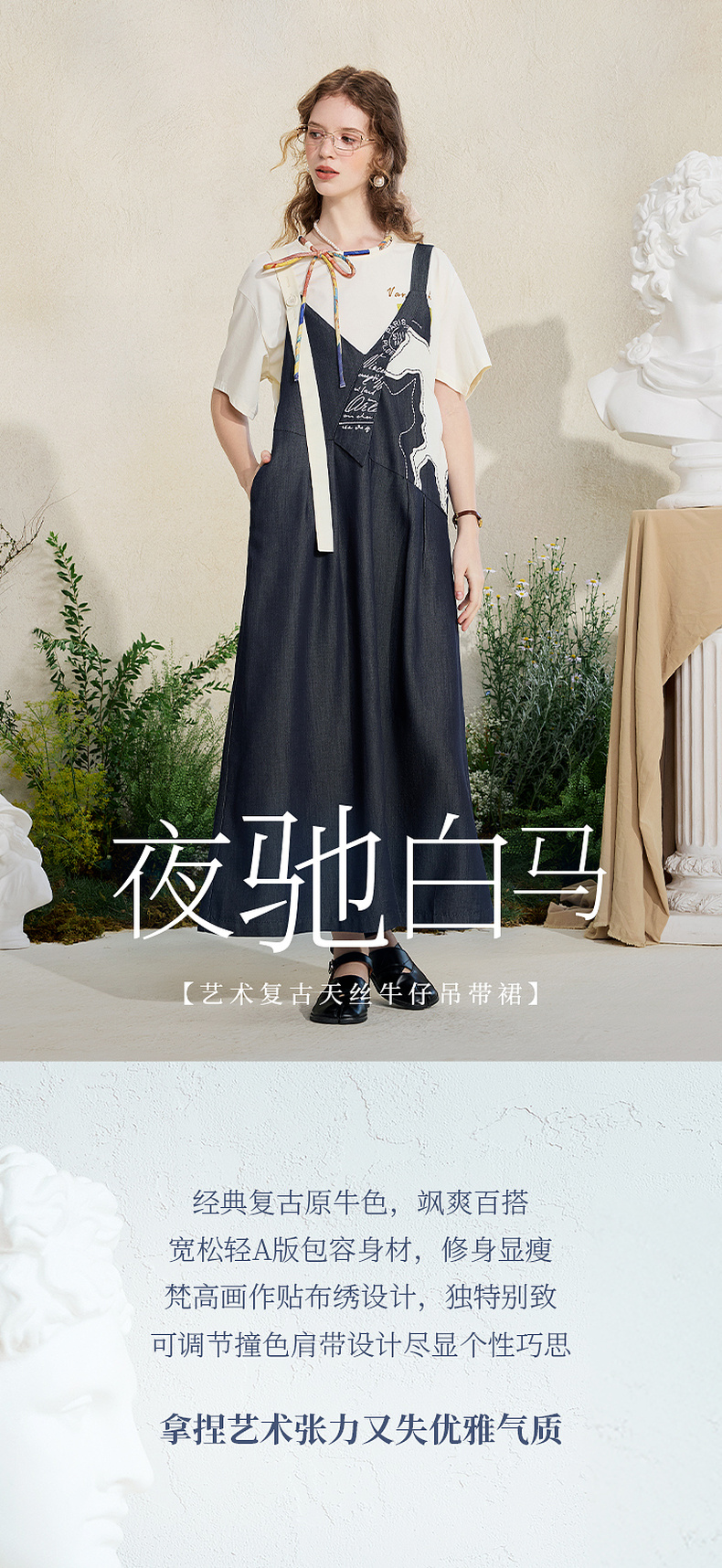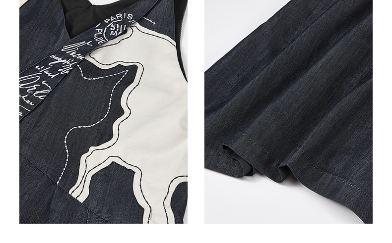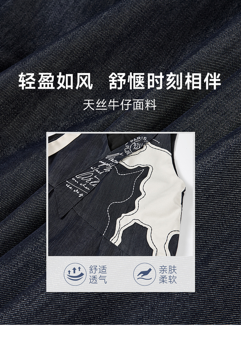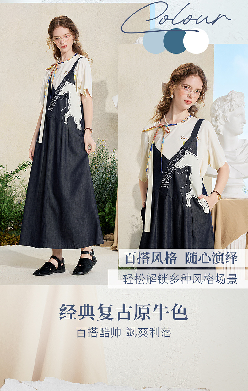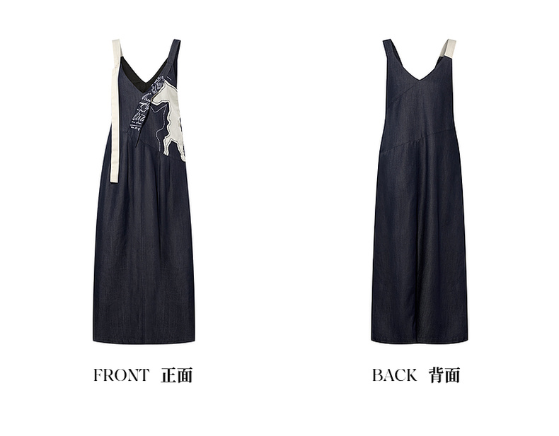 两三事梵高文艺夜驰白马2025夏季新款贴布绣天丝牛仔背带裙连衣裙