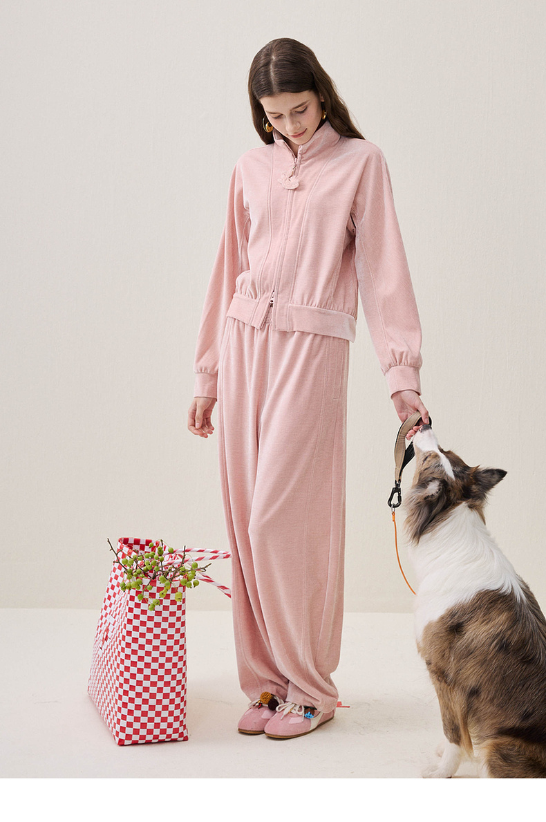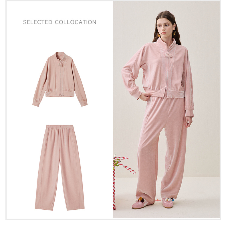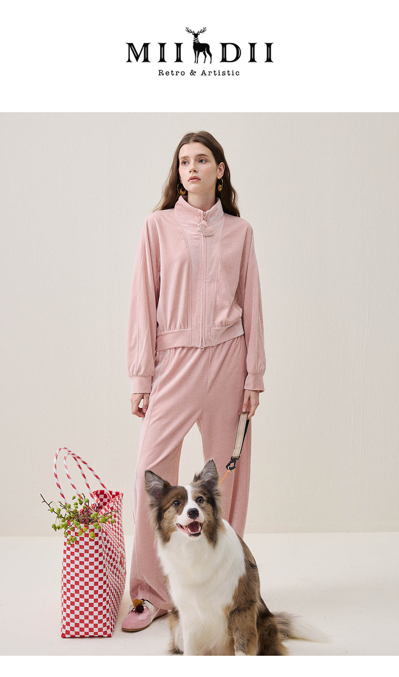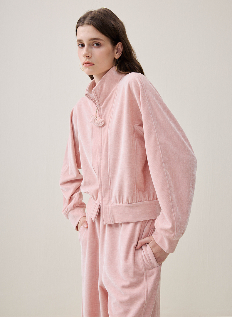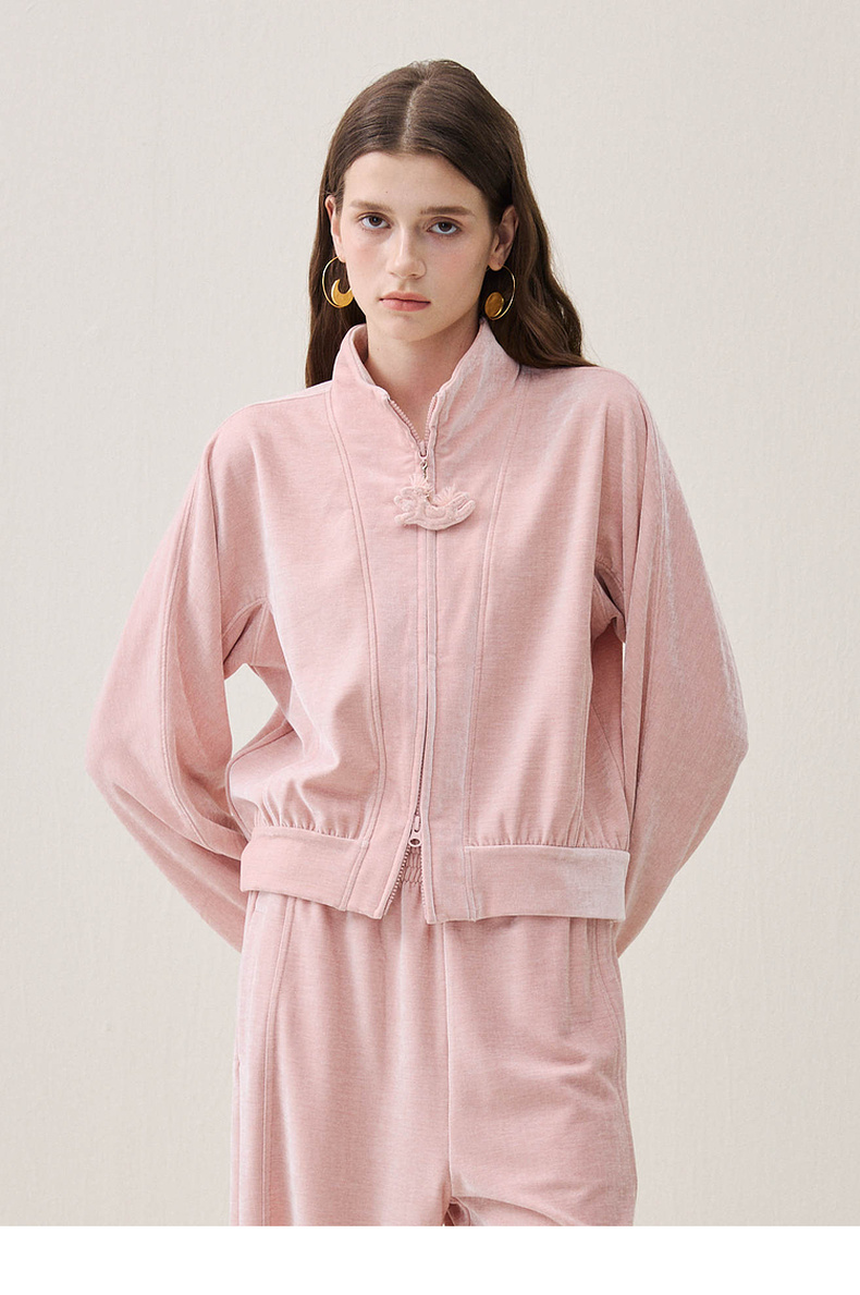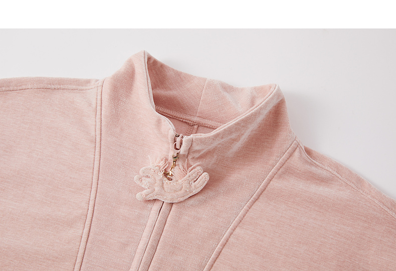 谜底立领卫衣开衫长袖2025年冬季新品裸粉色趣味拉链女254MV1672