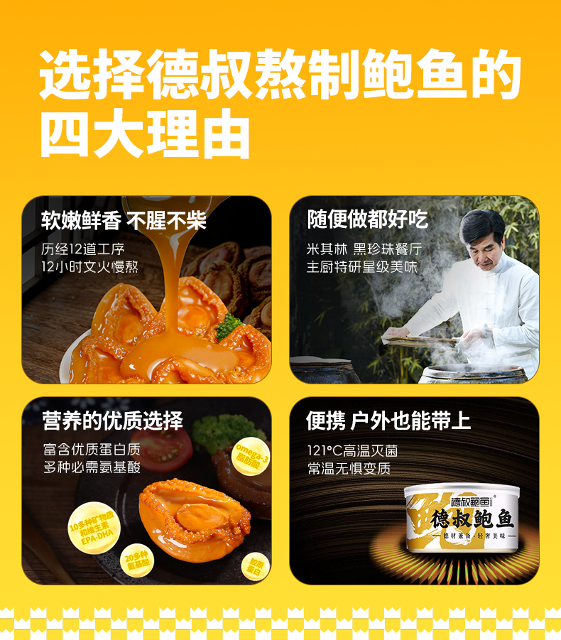 德叔鲍鱼熬制半干即食鲍鱼罐头4只装*5罐【12头活鲍熬制】【常温储存】