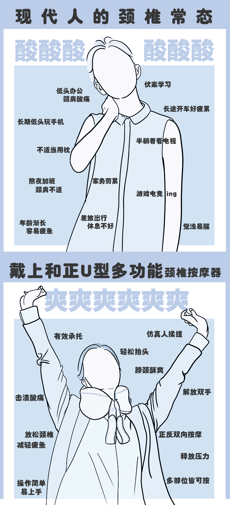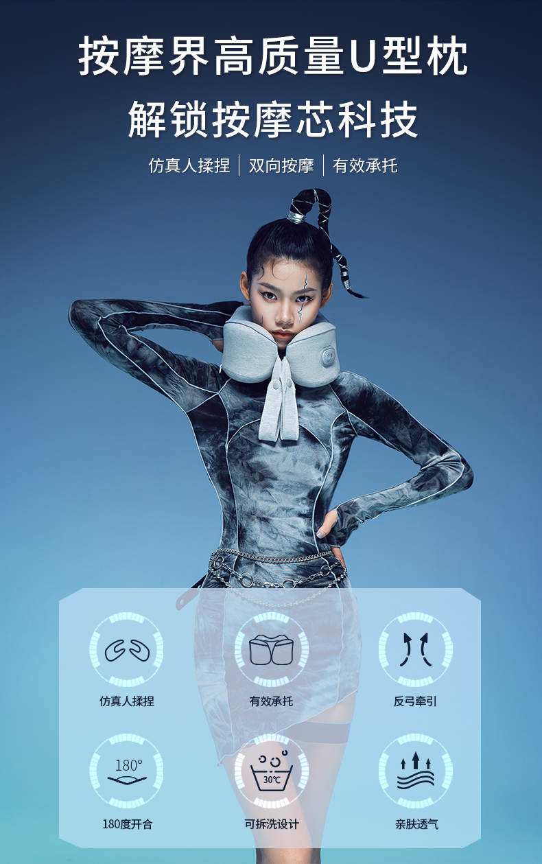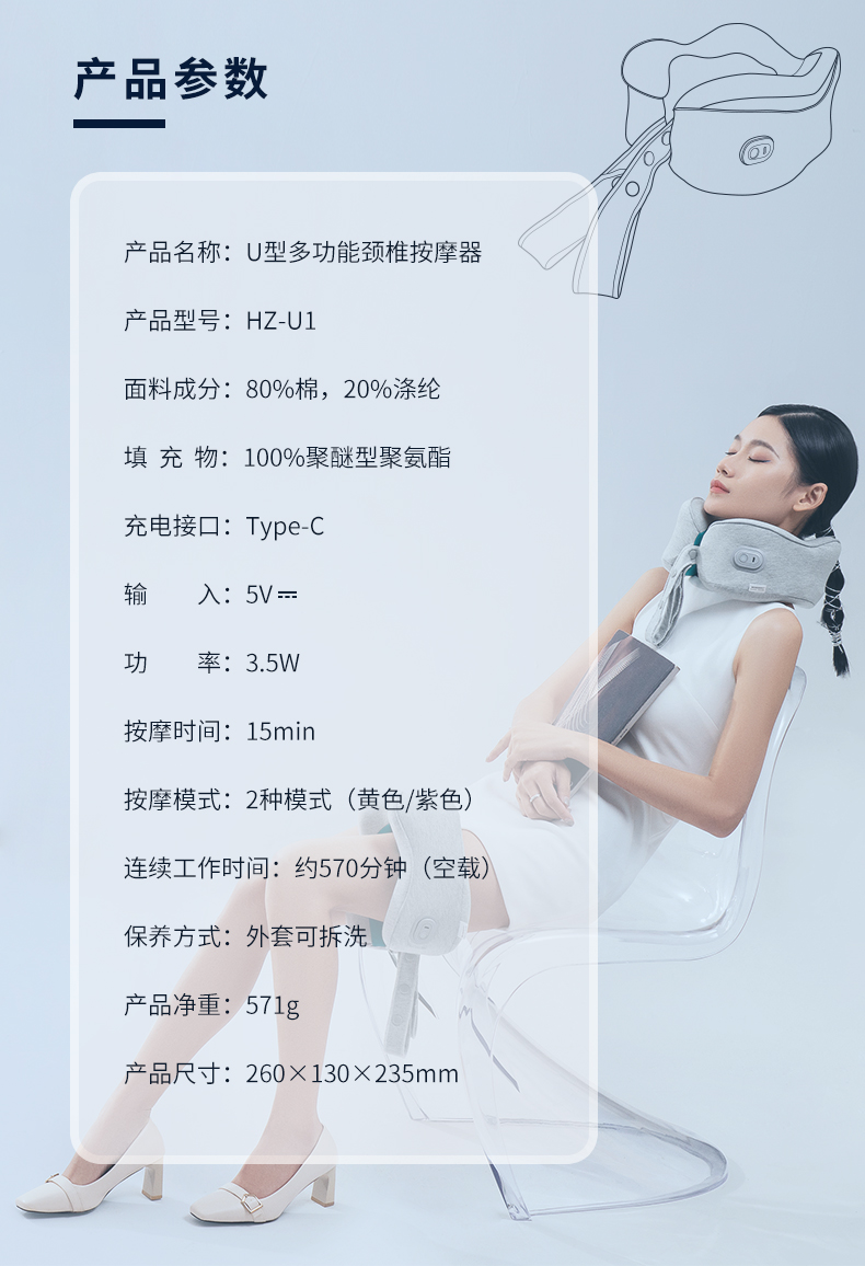 和正颈椎按摩器颈部按摩仪 肩颈按摩器 护颈仪 多功能办公家用商务旅行便携U型枕生日礼物 送礼礼品 经典款 百搭灰 HZ-U1