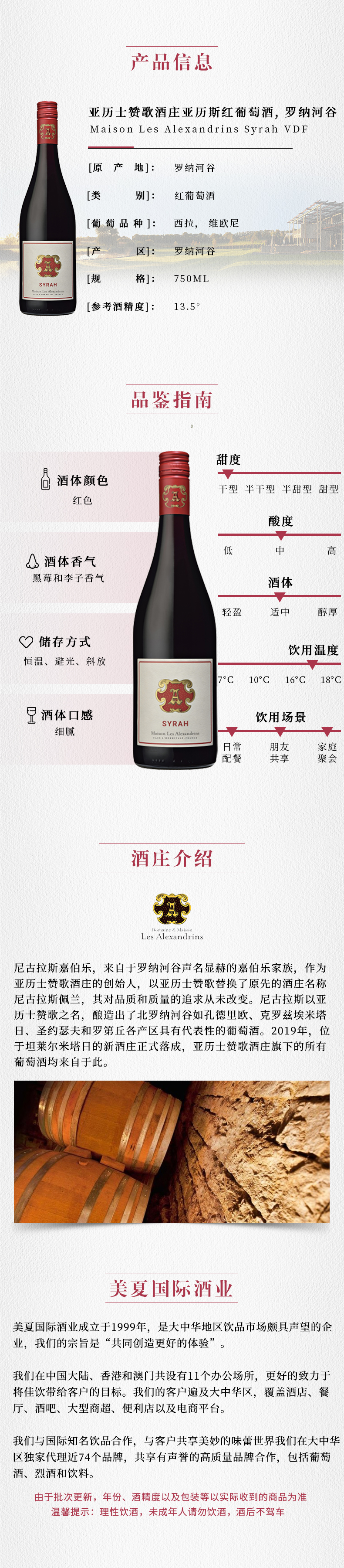 进口法国 亚历士赞歌酒庄亚历斯红葡萄酒 罗纳河谷 750ml精选包邮