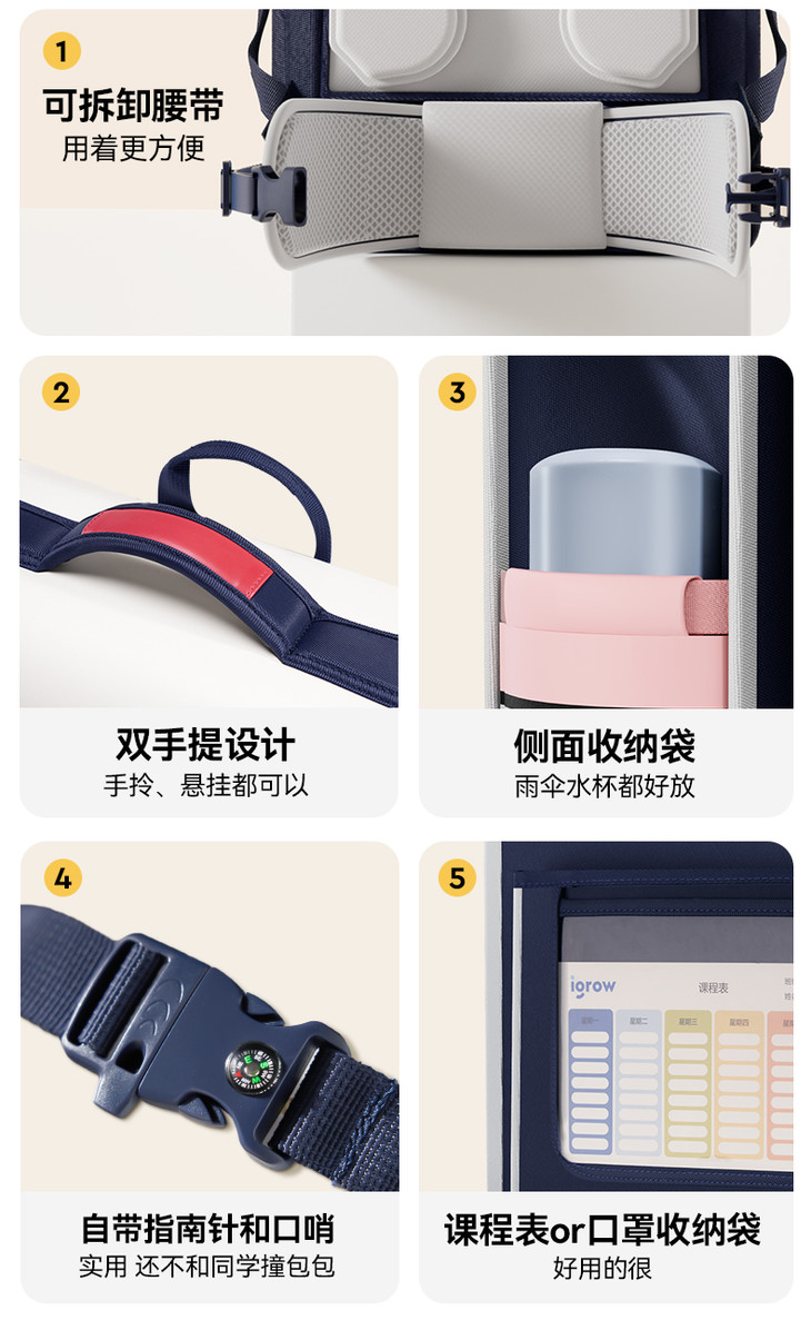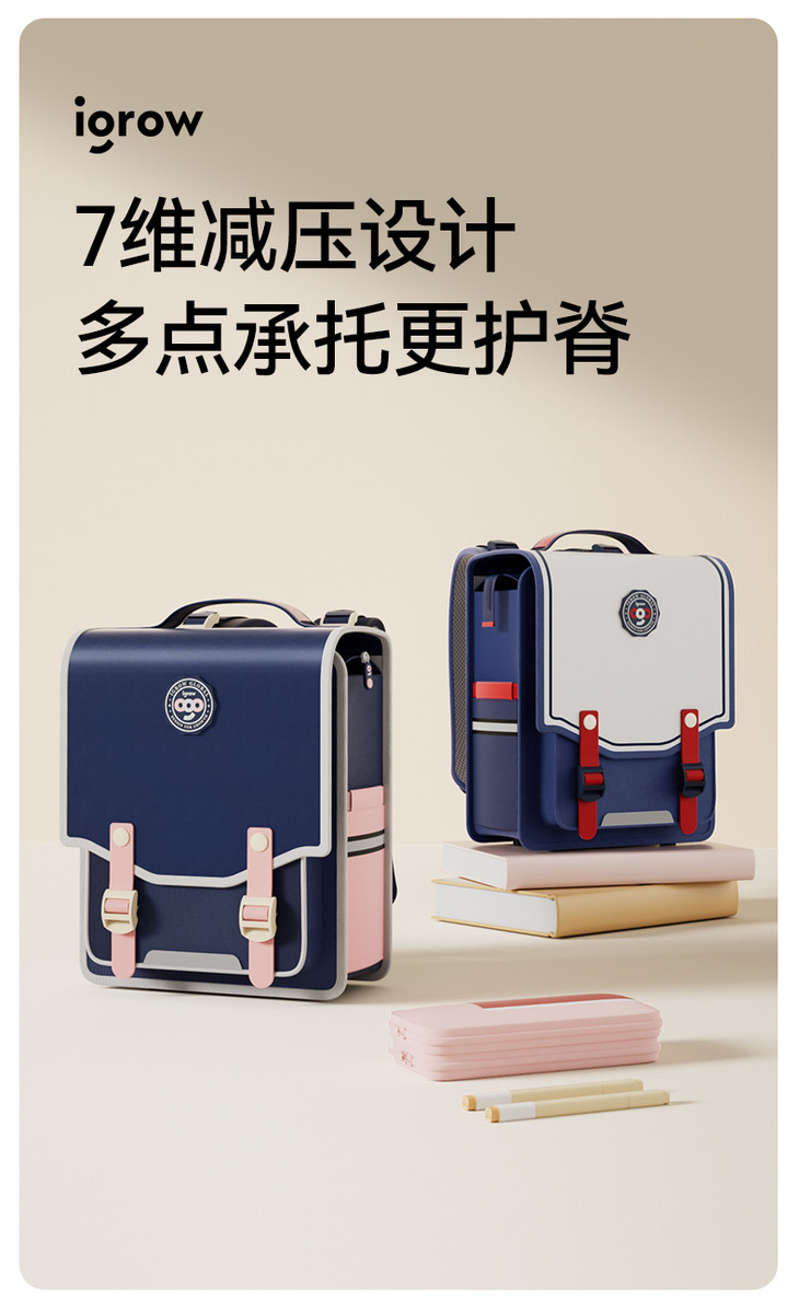 【开学季】爱果乐igrow学院风书包儿童护腰护脊书包男生女童学院风英伦风时尚