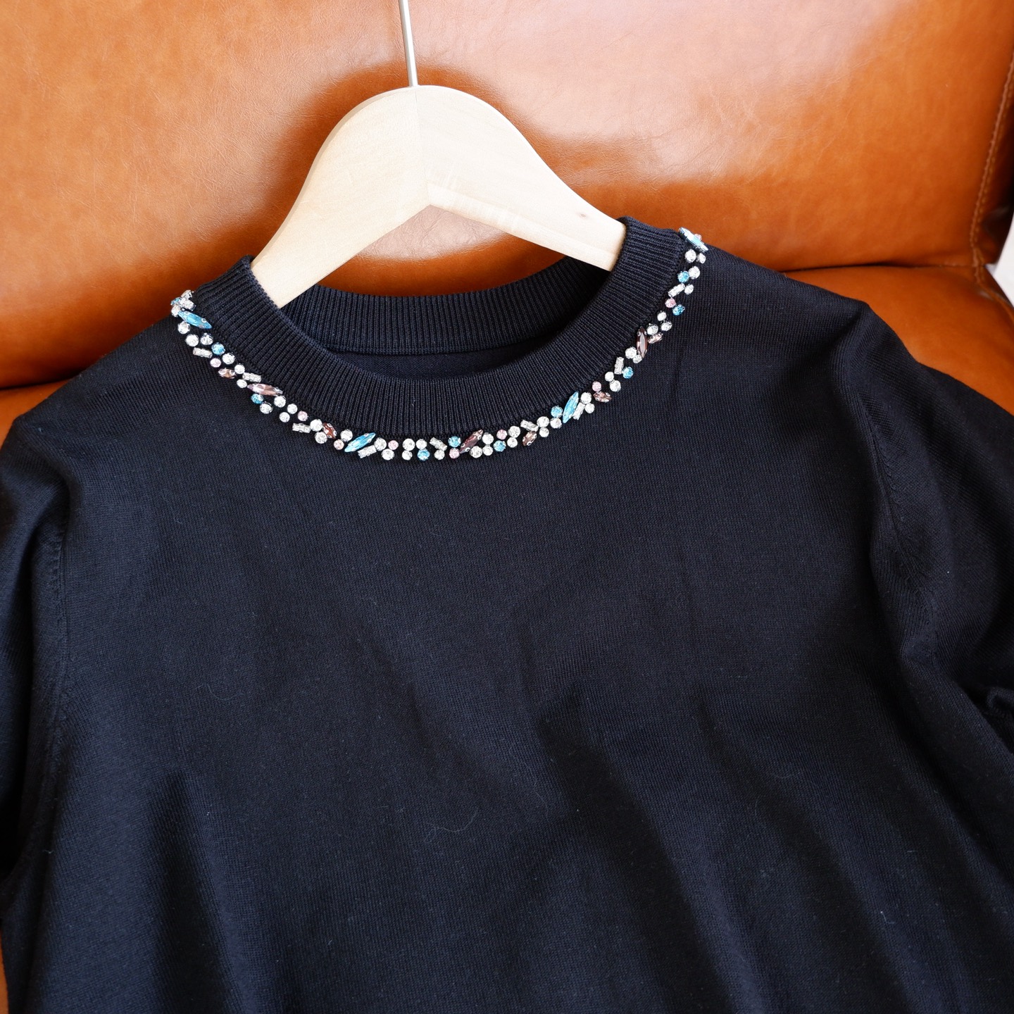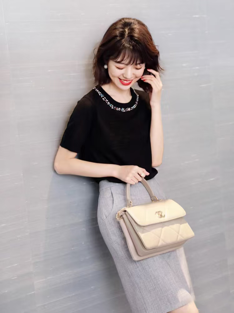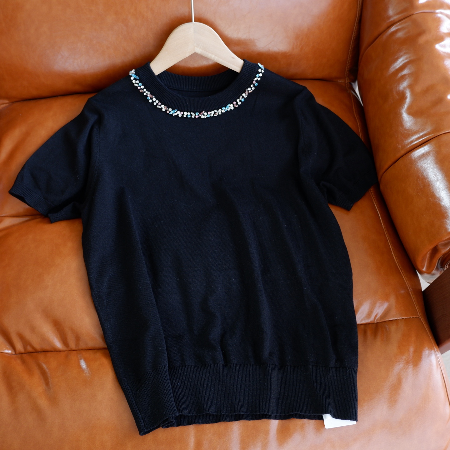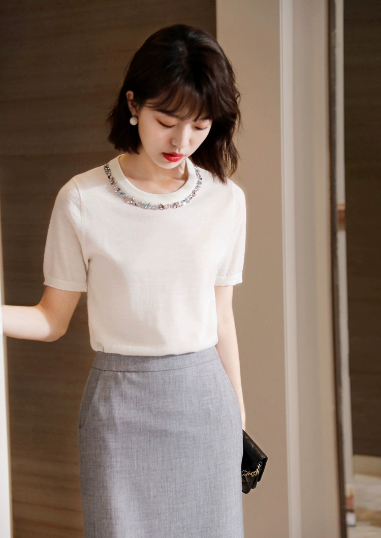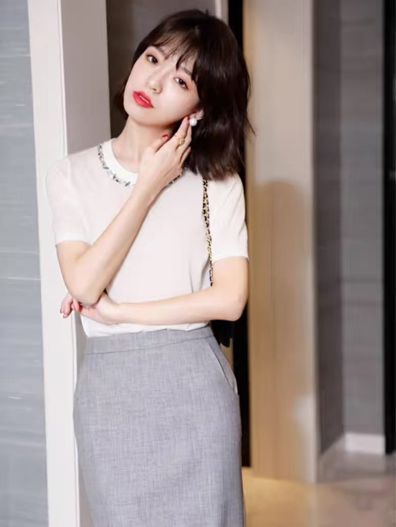 💰105元包邮 阿玛施同款,重工手工钉珠镶钻莱赛尔天丝针织短袖【JS3699378 】 一件自带贵气感的针织 T 恤 才是衣橱里适配所有场合的 “百搭王牌”