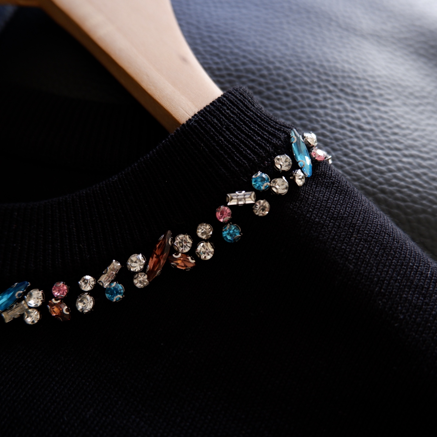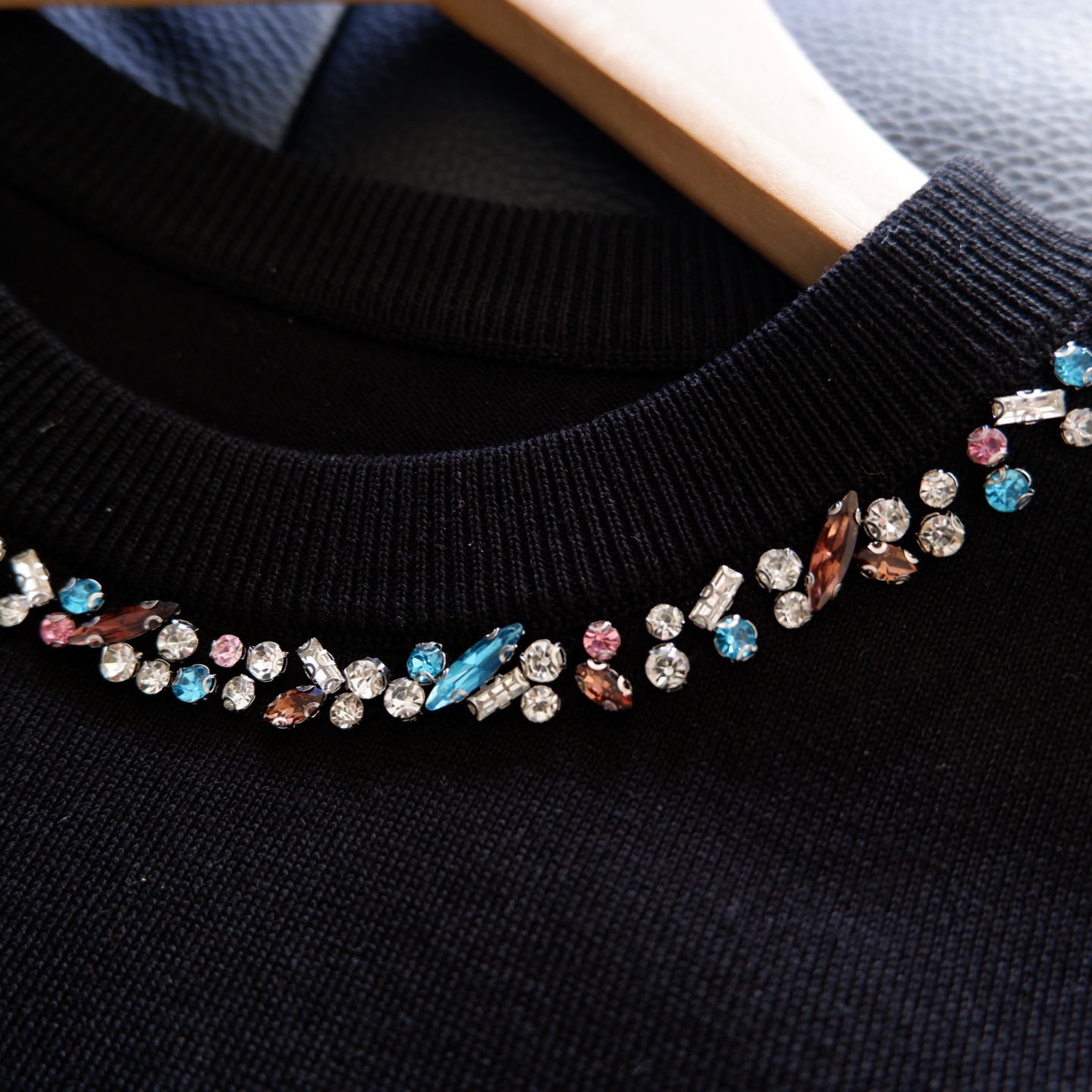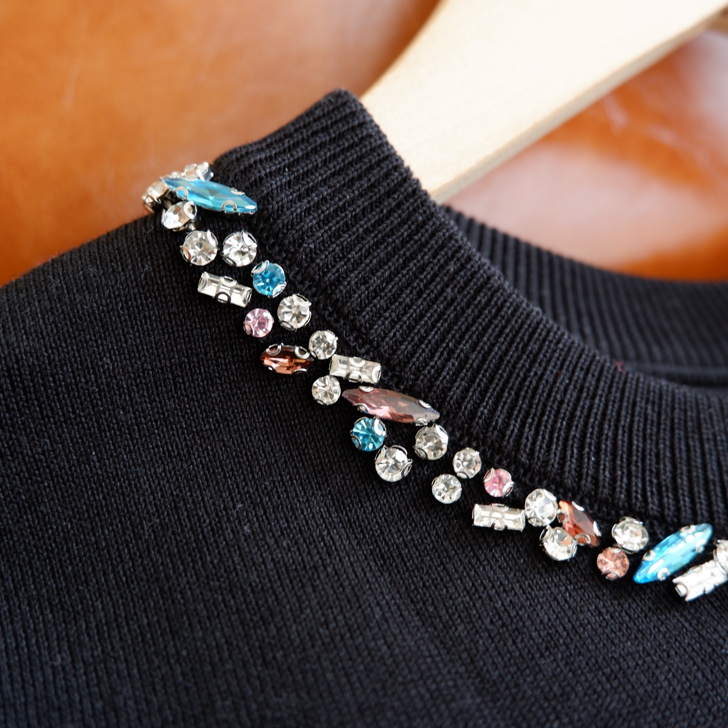 精致的彩钻沿圆领错落排列,