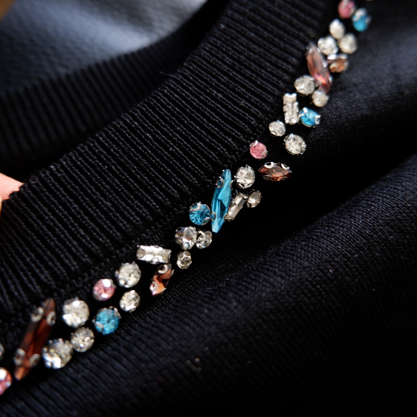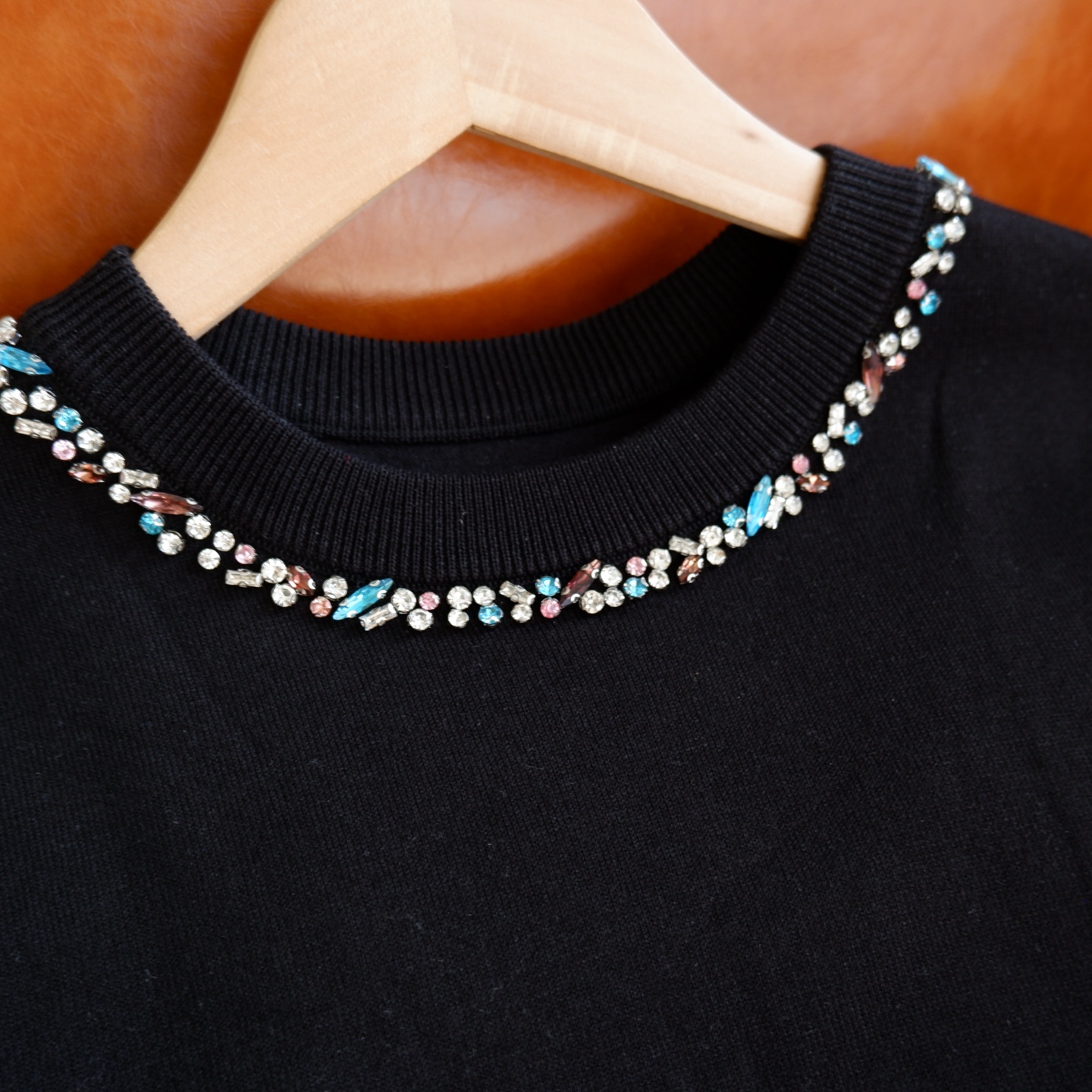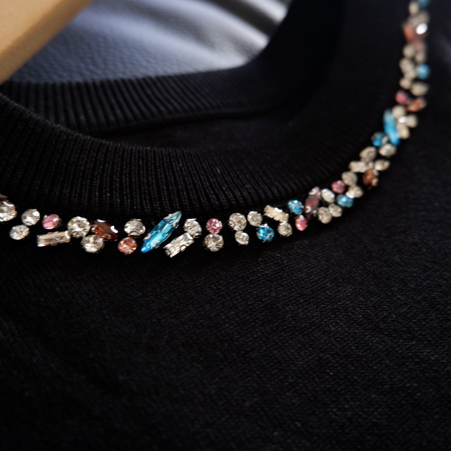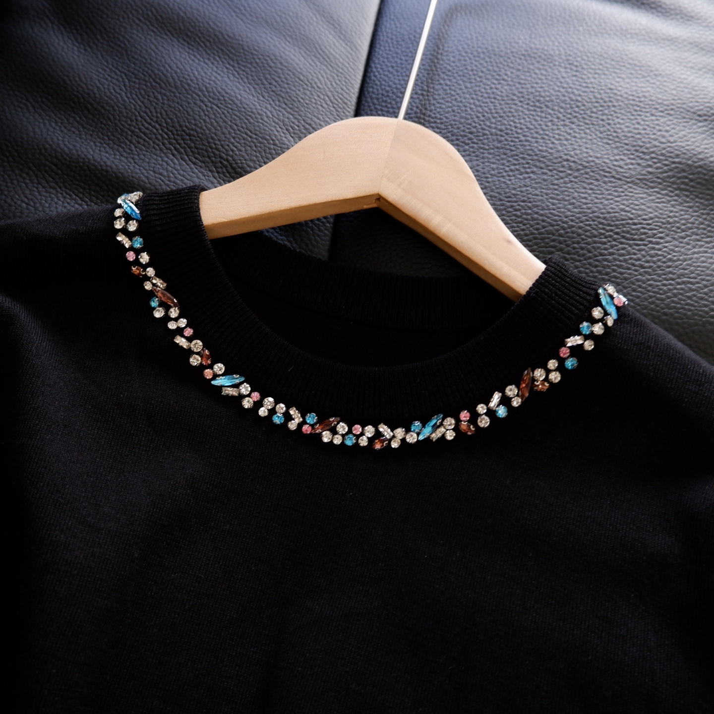 精致的彩钻沿圆领错落排列,