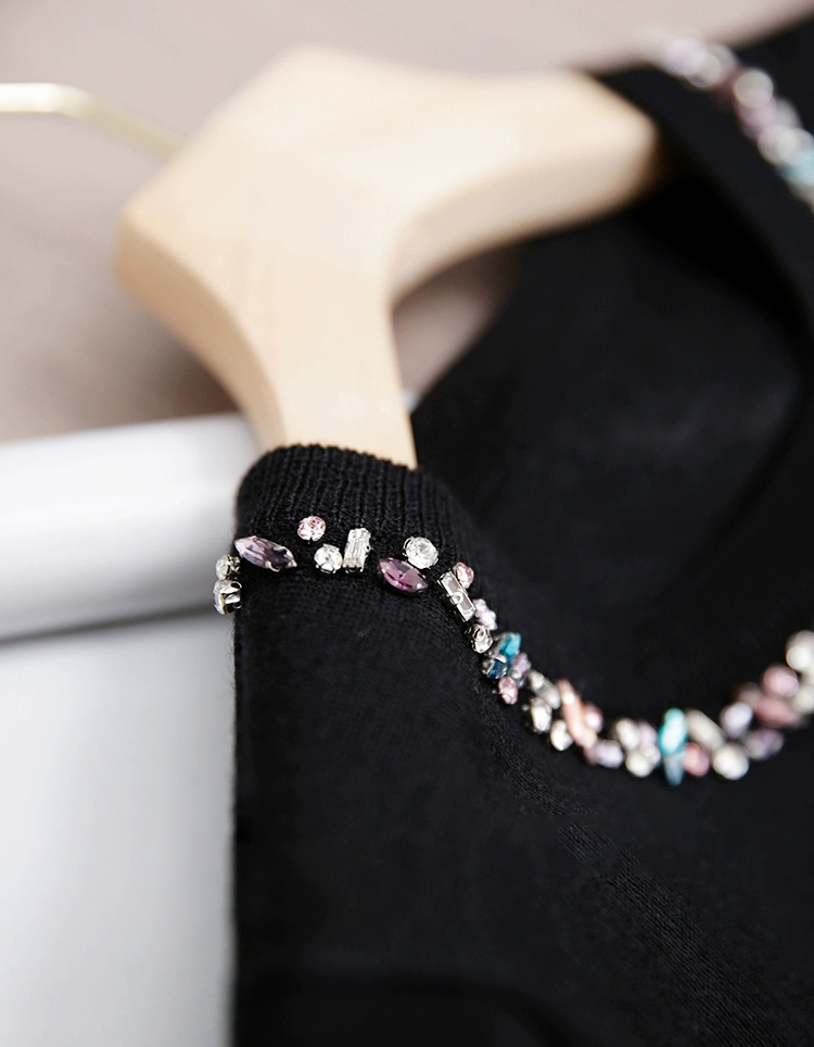 领口的彩钻设计是整件衣服的灵魂亮点,