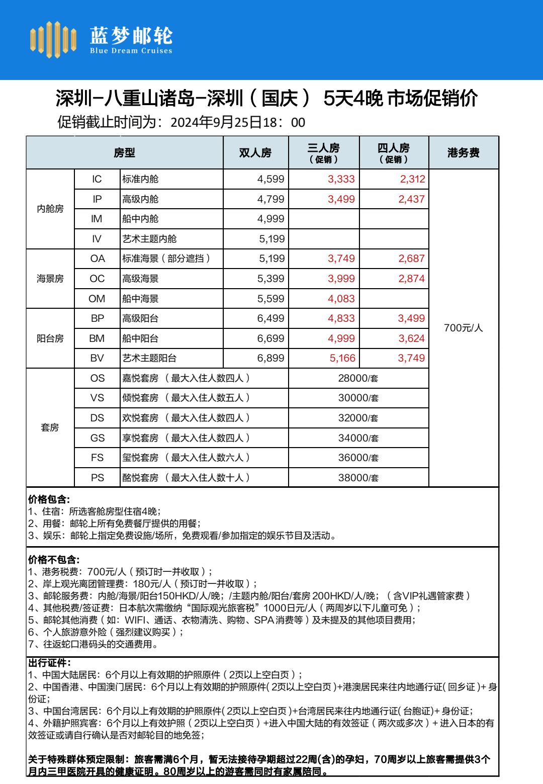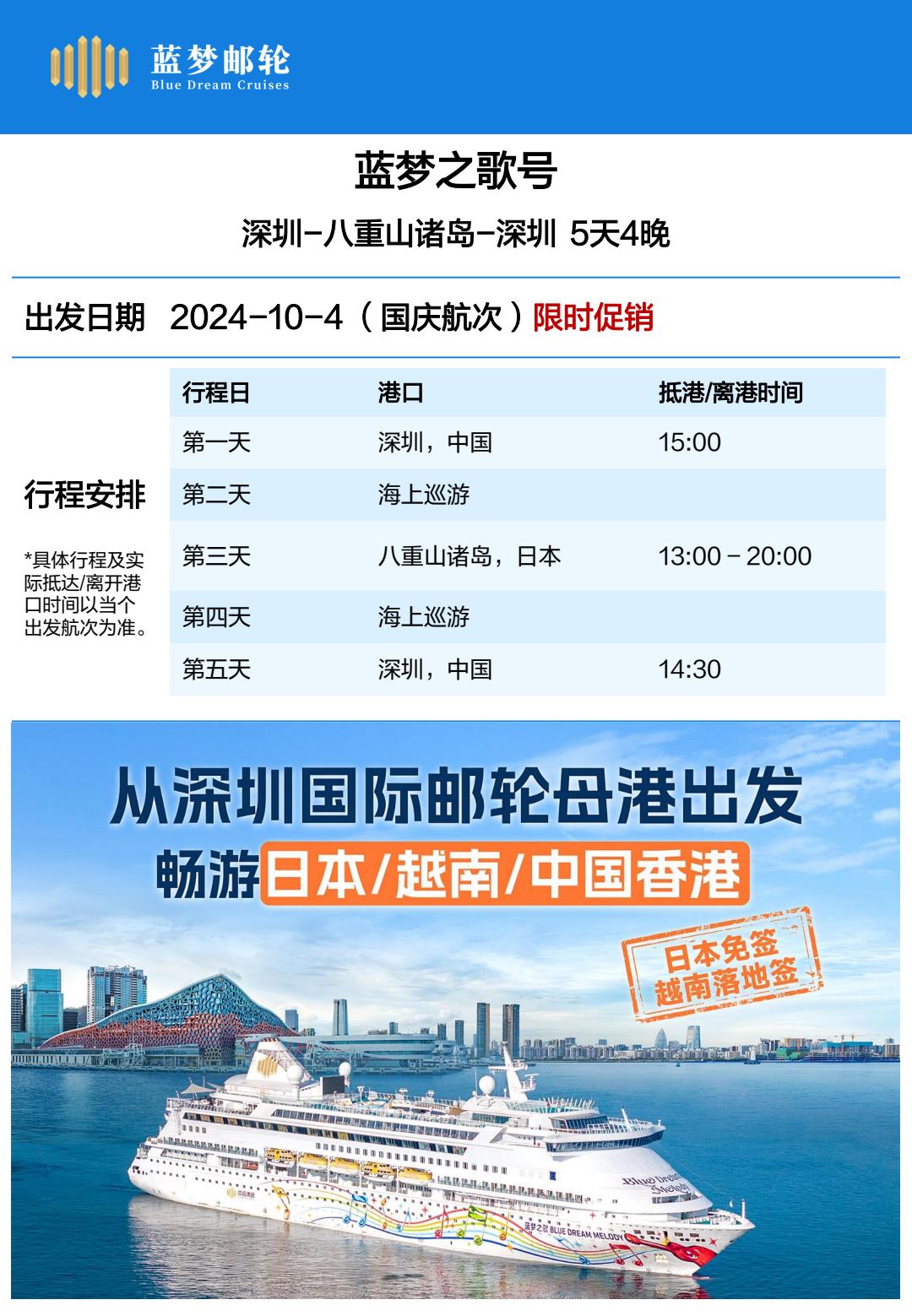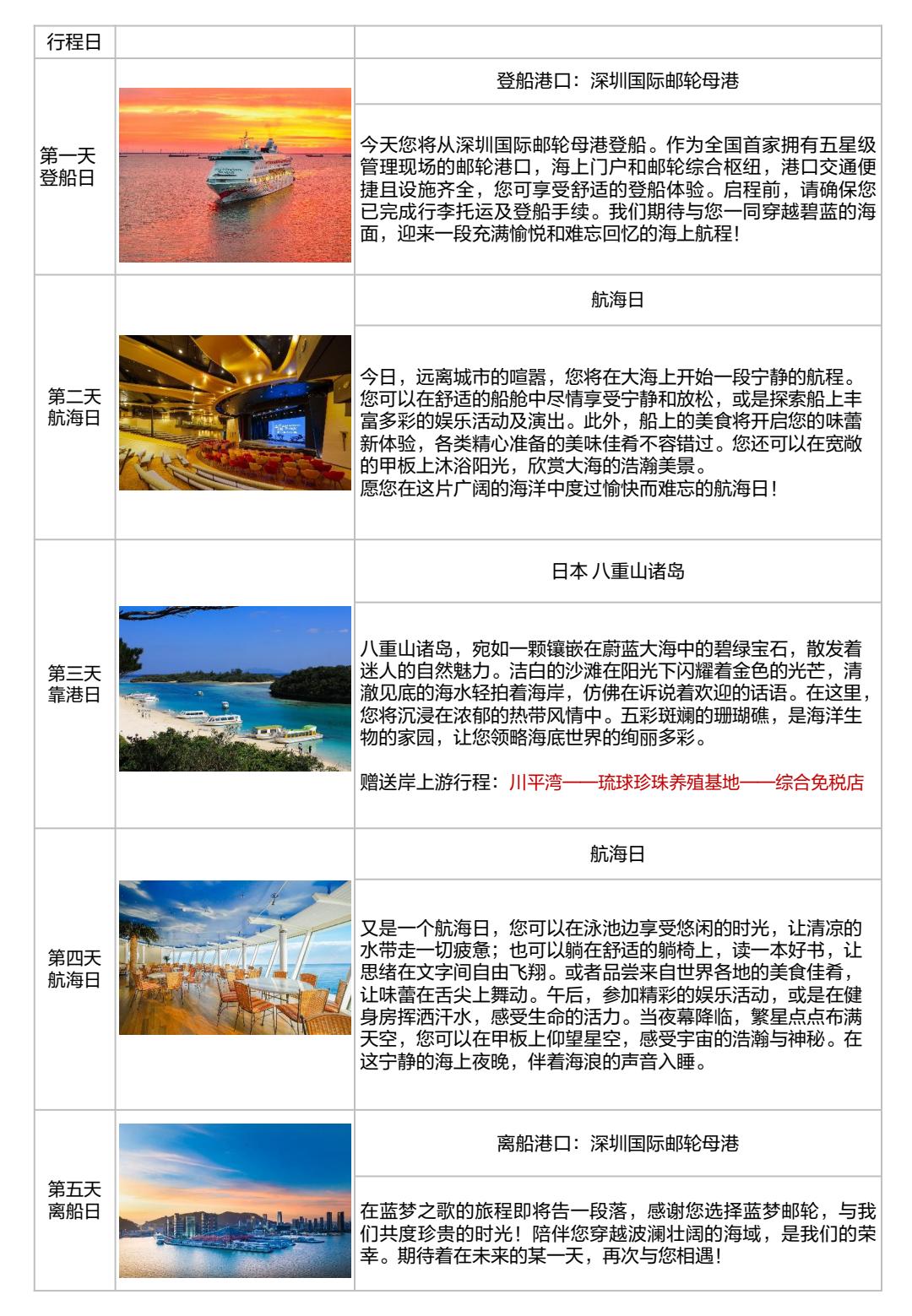 蓝梦邮轮<蓝梦之歌号>深圳-八重山诸岛-深圳 5天4晚