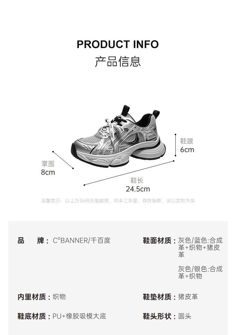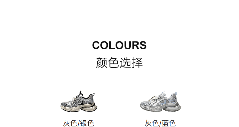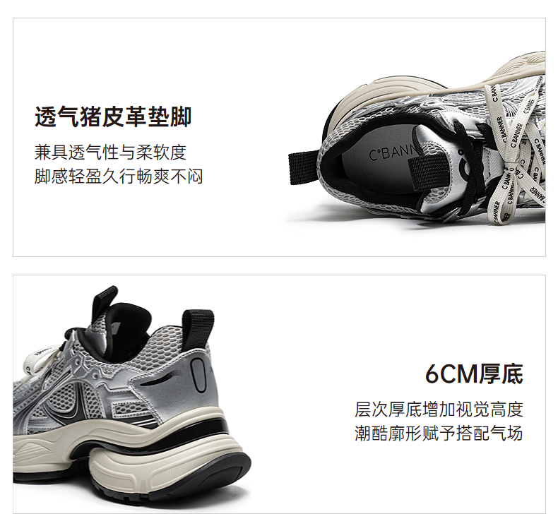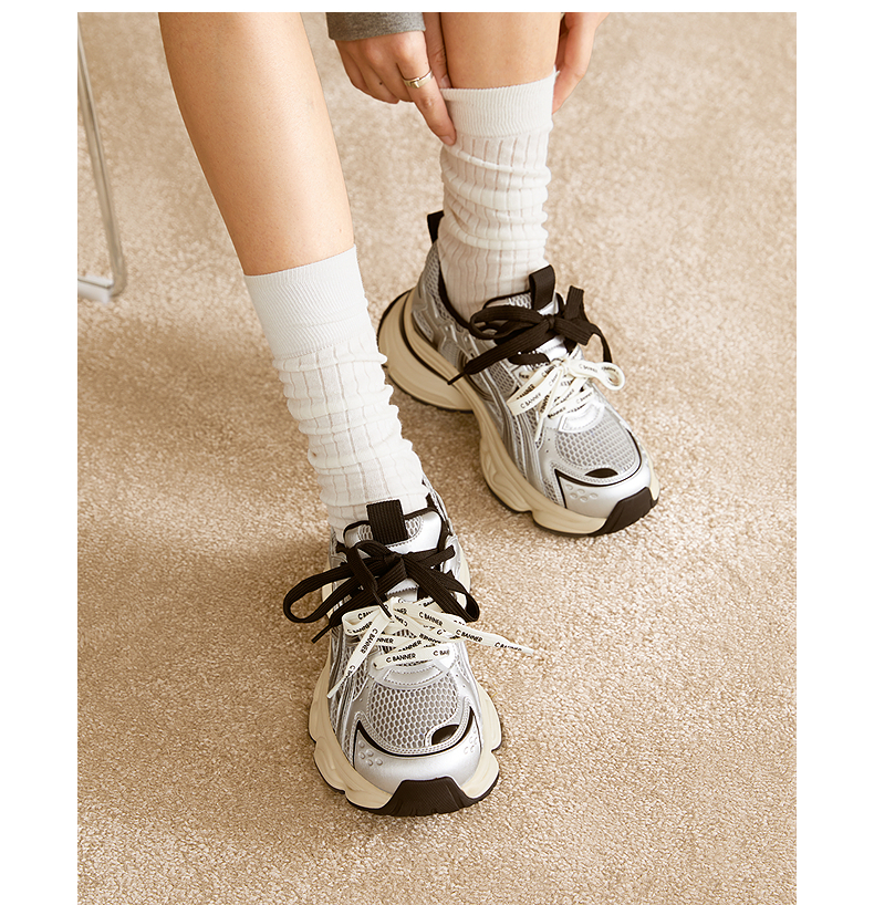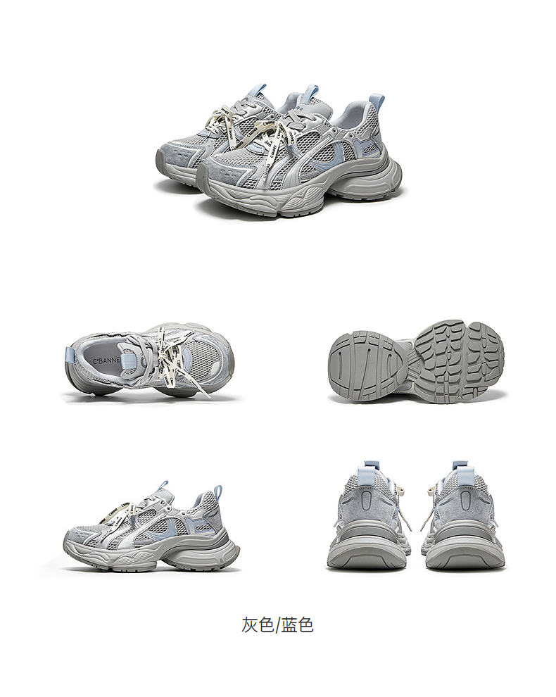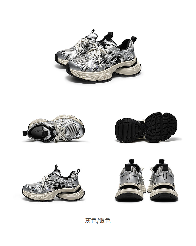 【上新】千百度厚底网面老爹鞋女2026春季新款银色透气增高拼接运动休闲鞋A26150781