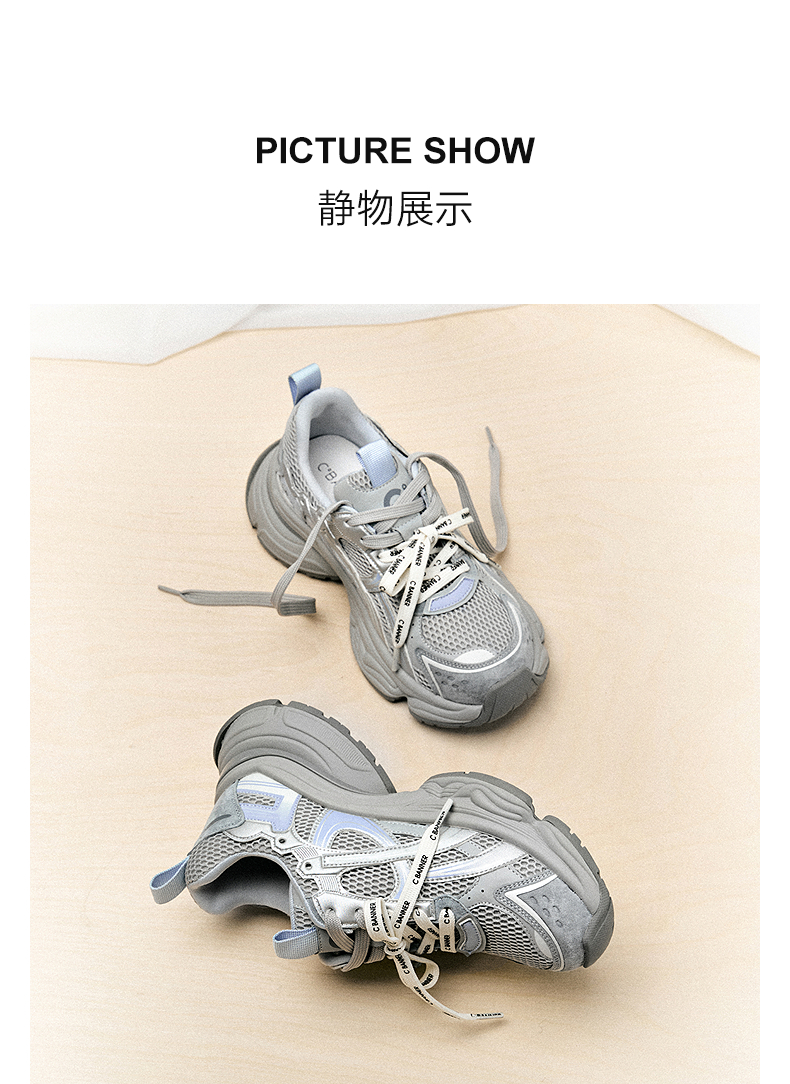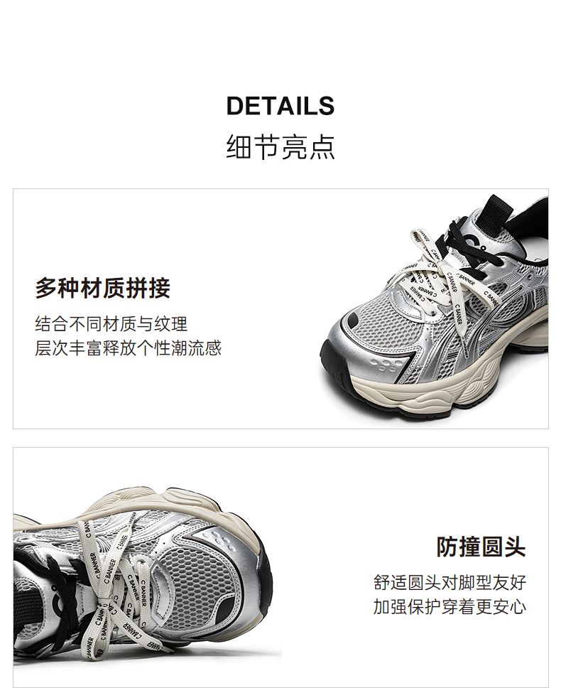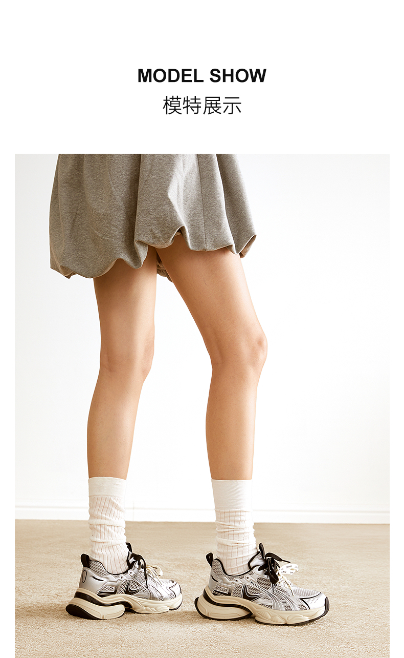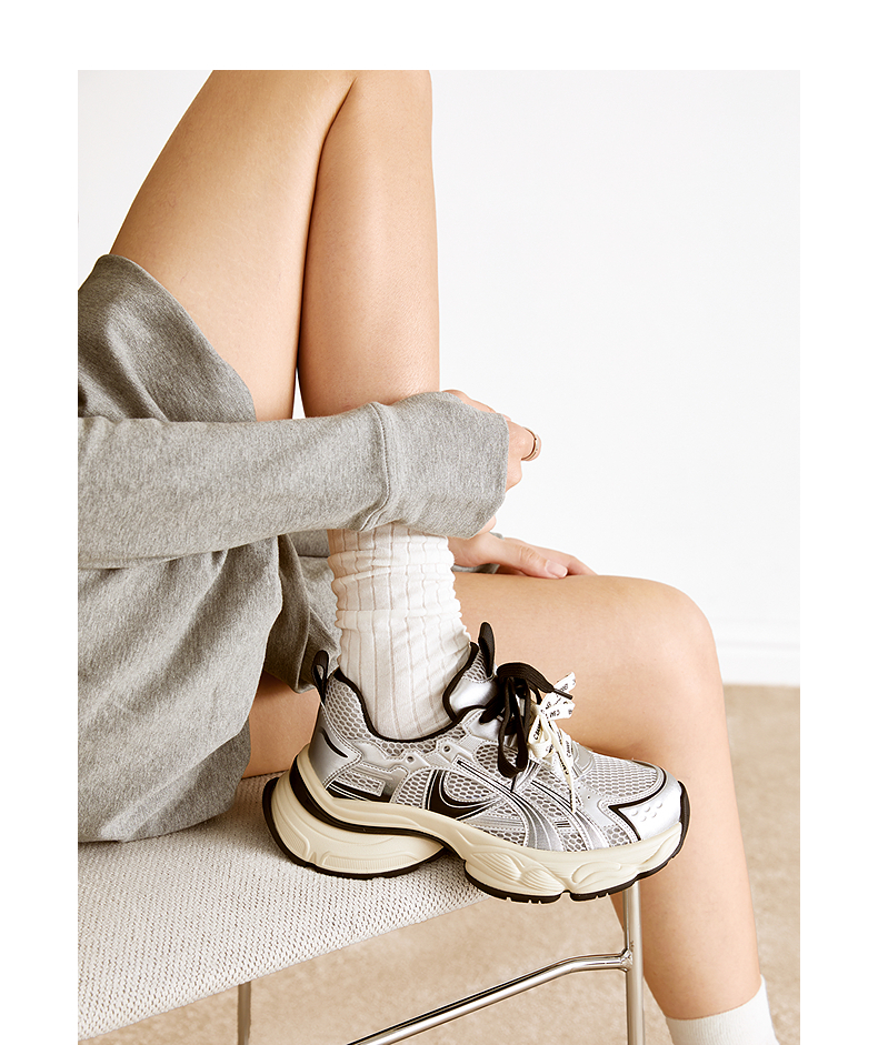【上新】千百度厚底网面老爹鞋女2026春季新款银色透气增高拼接运动休闲鞋A26150781