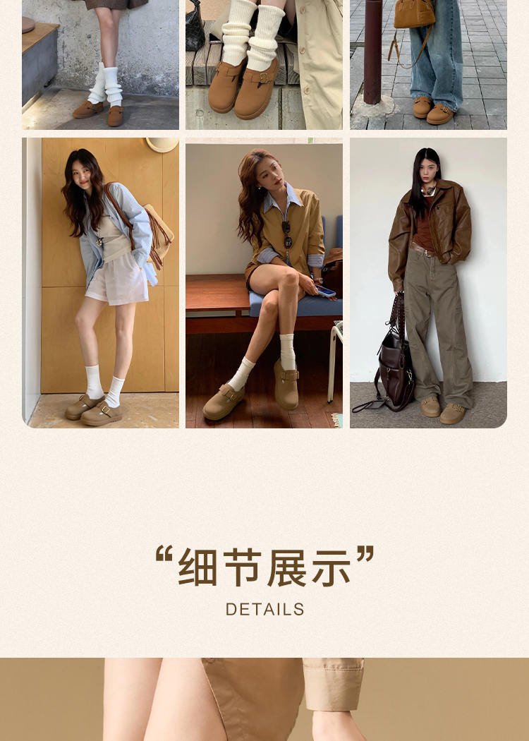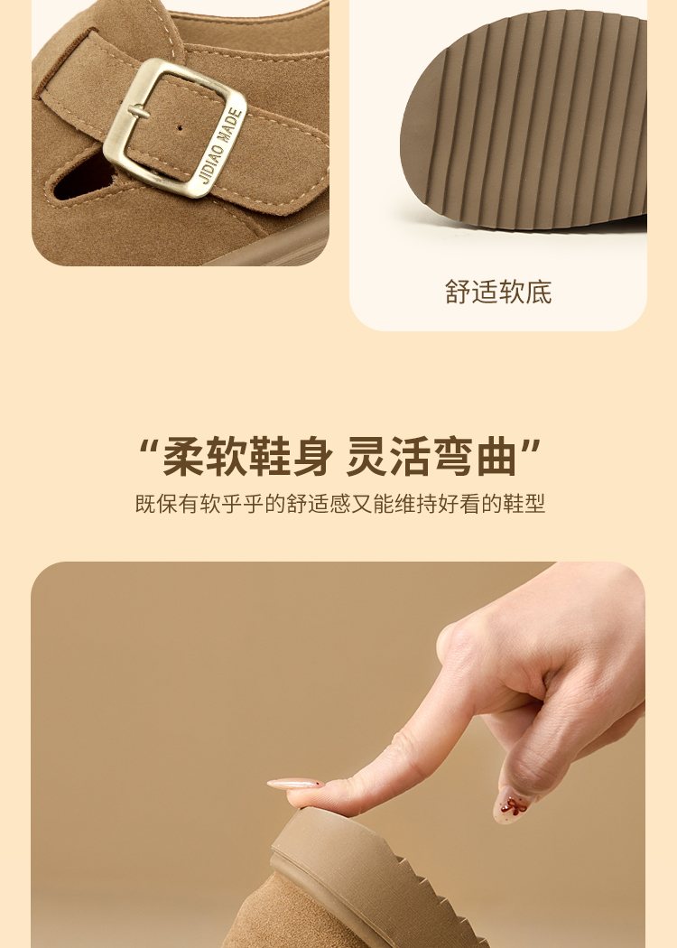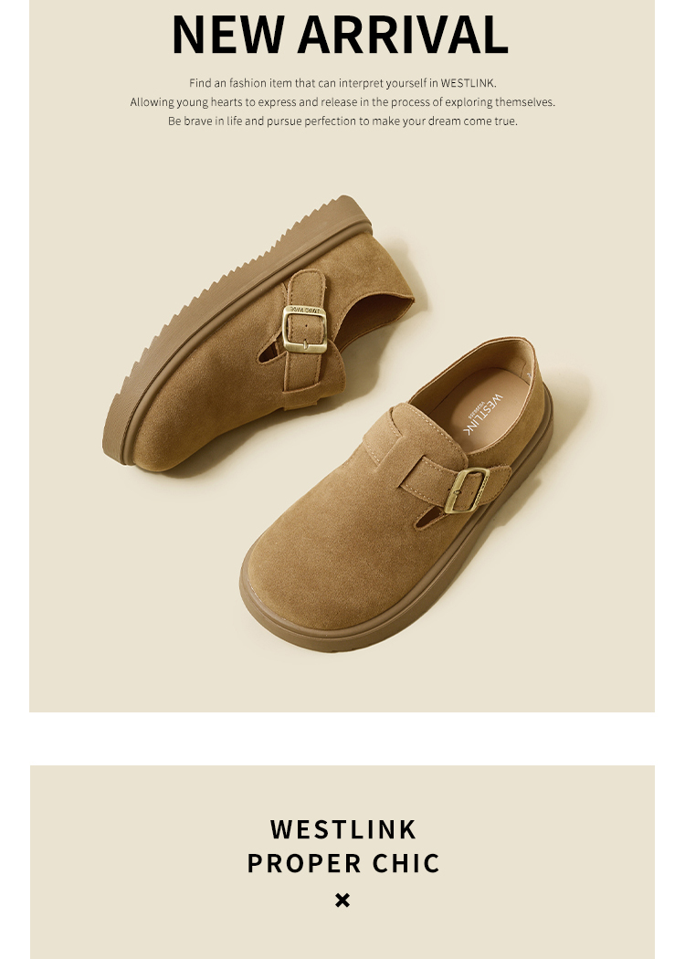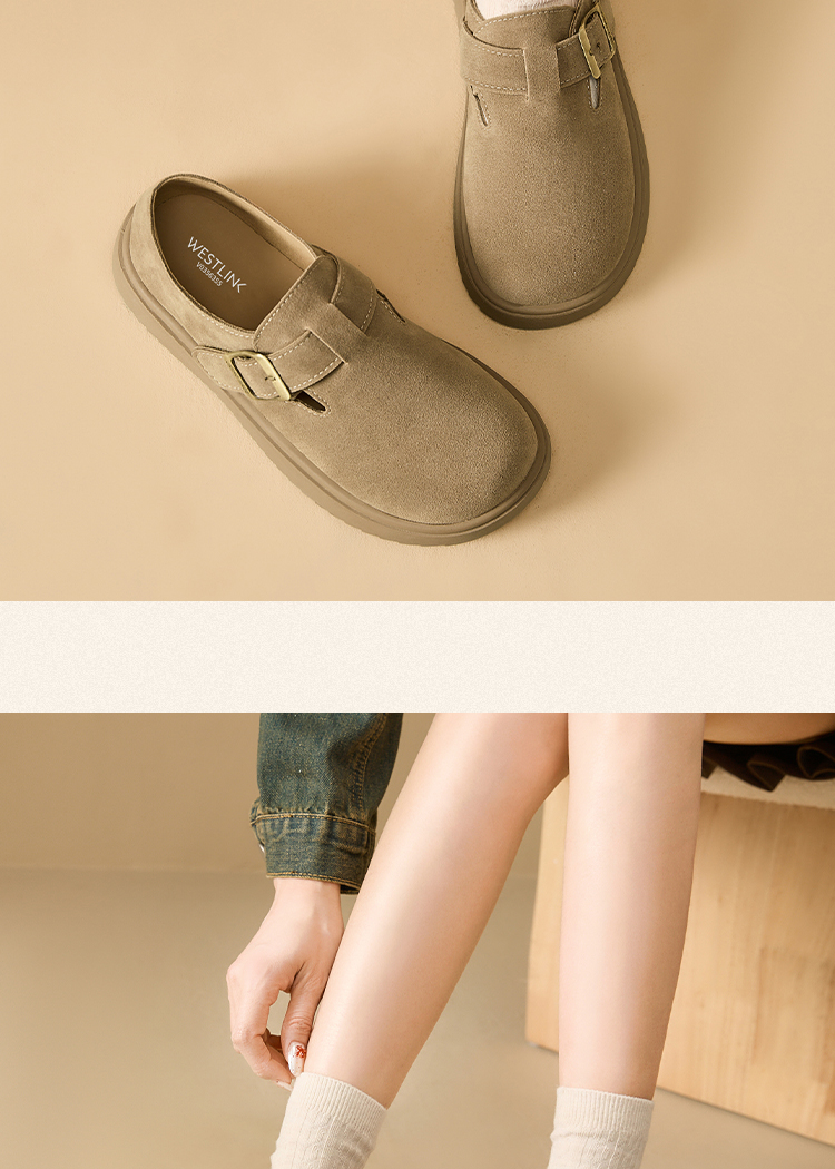 西遇全包勃肯鞋女新款复古百搭休闲单鞋一脚蹬软底平底鞋V0356355