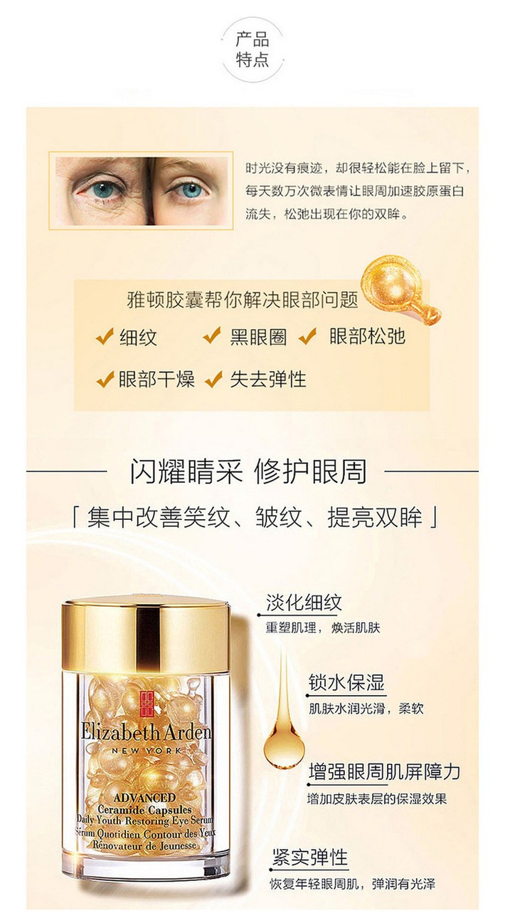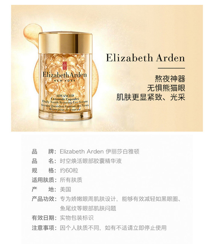 【保税仓】法国ElizabethArden伊丽莎白雅顿 金铜色升级眼胶囊60粒(有效期2025年1月至6月随机)
