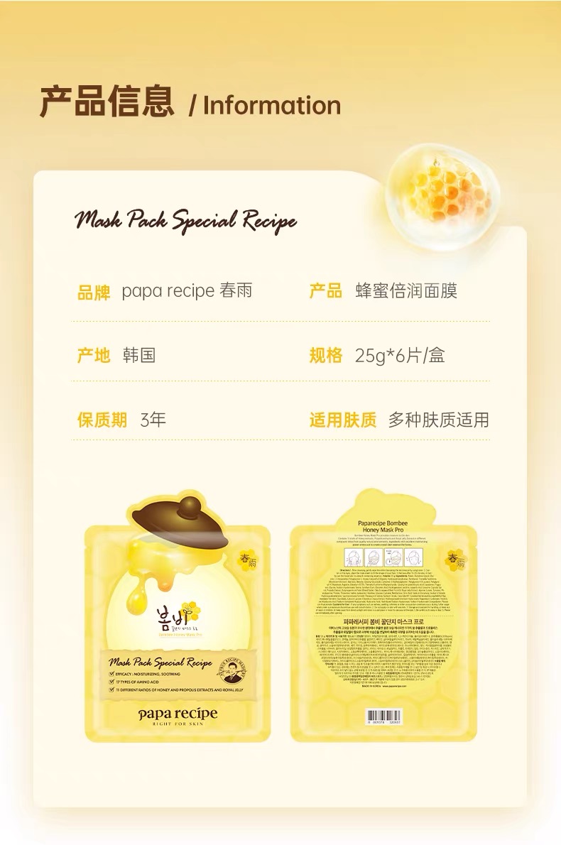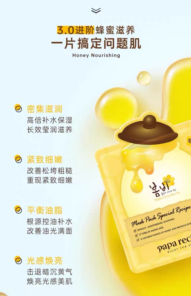 【新升级3.0】韩国paparecpe春雨蜂蜜补水保湿提亮肤色面膜6片/盒
