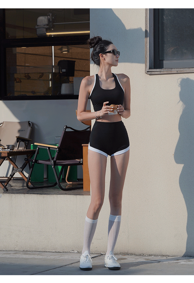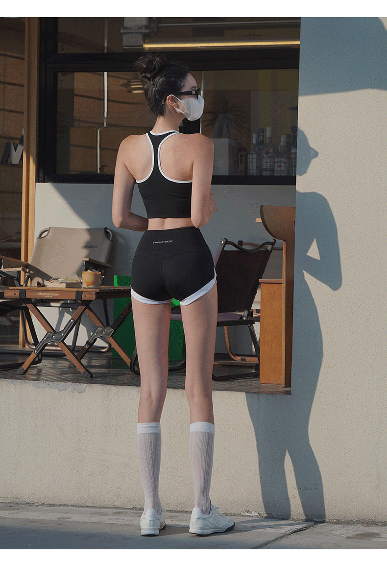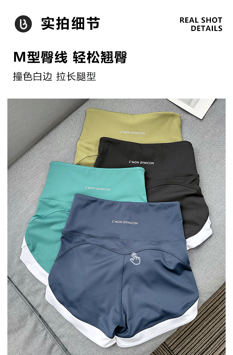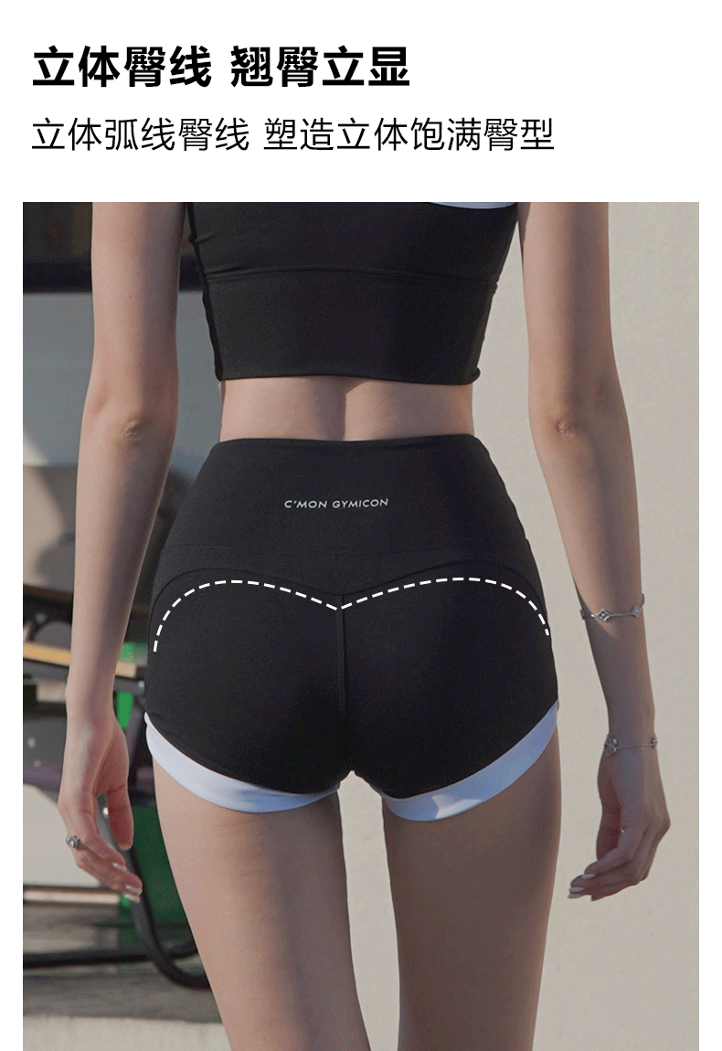 beemen瑜伽短裤女夏高腰提臀紧身速干运动健身裤跑步蜜桃三分裤薄