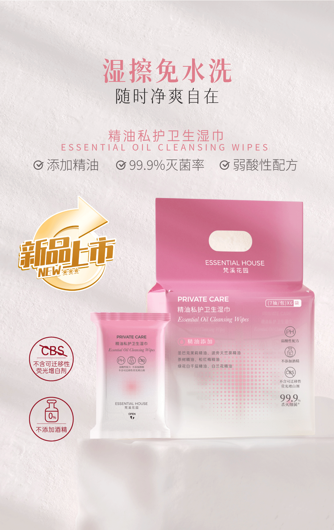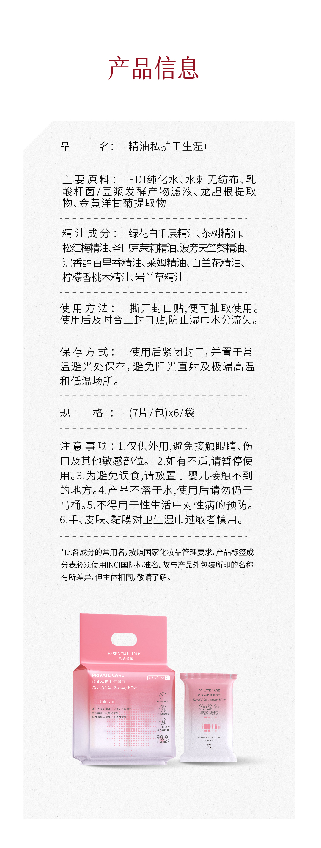 【精油配方 生理期 房事前后 产后护理 出差旅行 免洗抗菌】精油私护卫生湿巾 7片*6包 梵溪花园