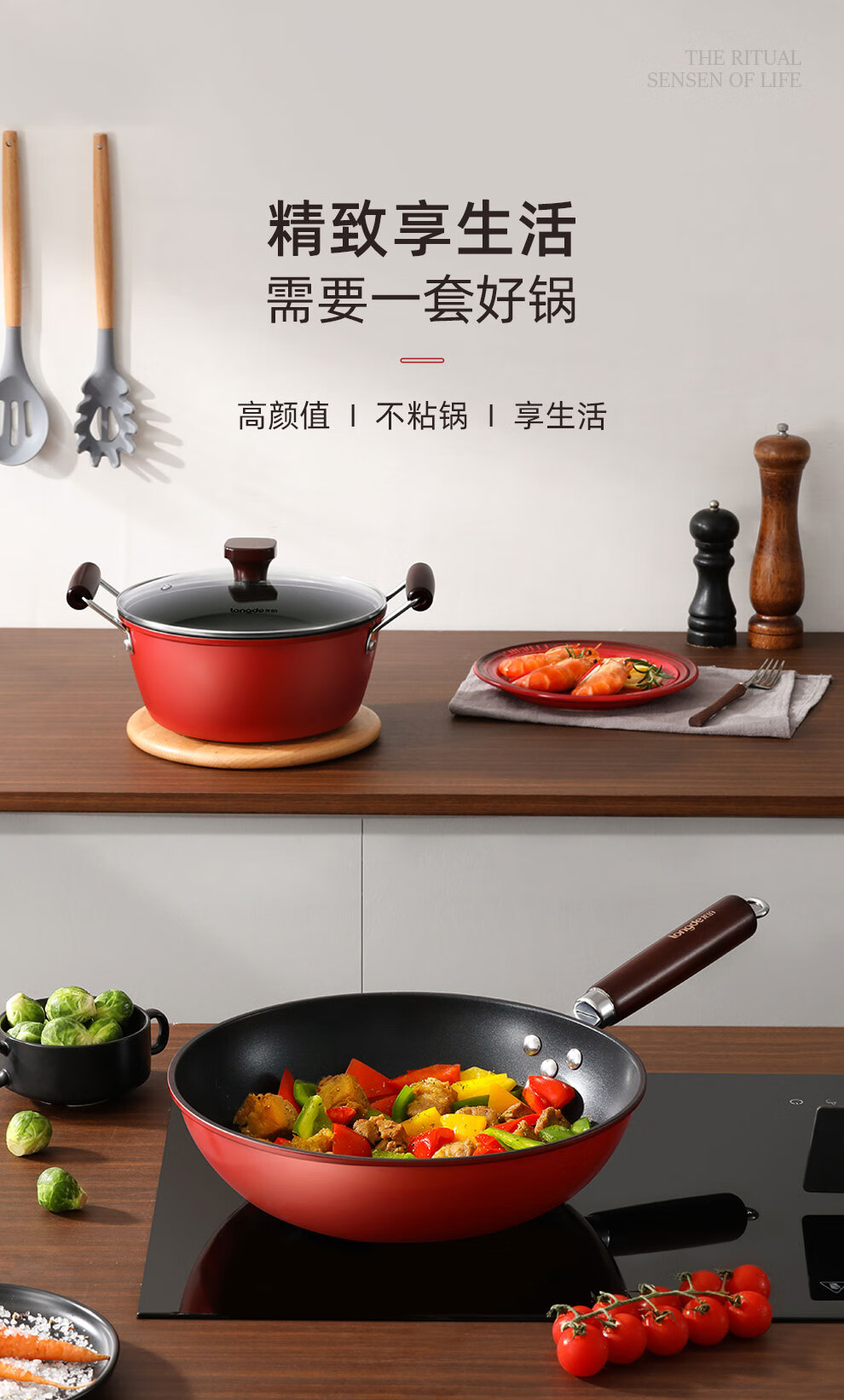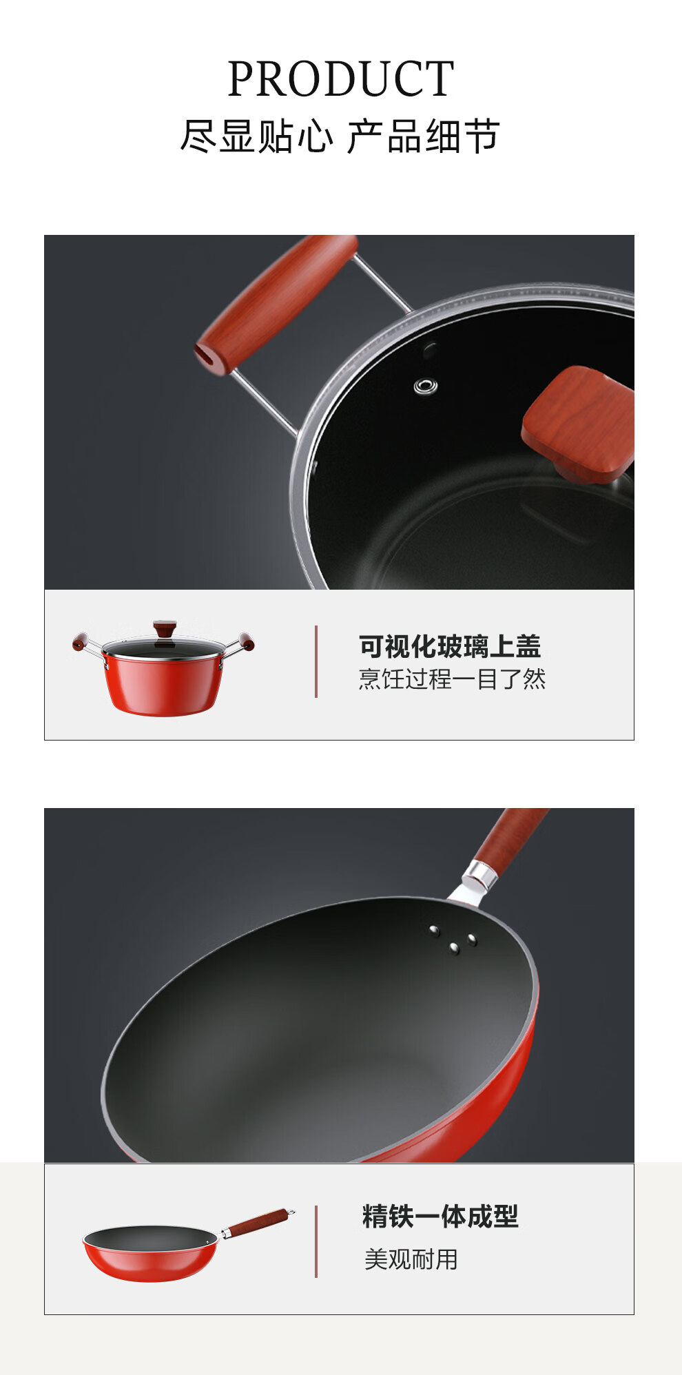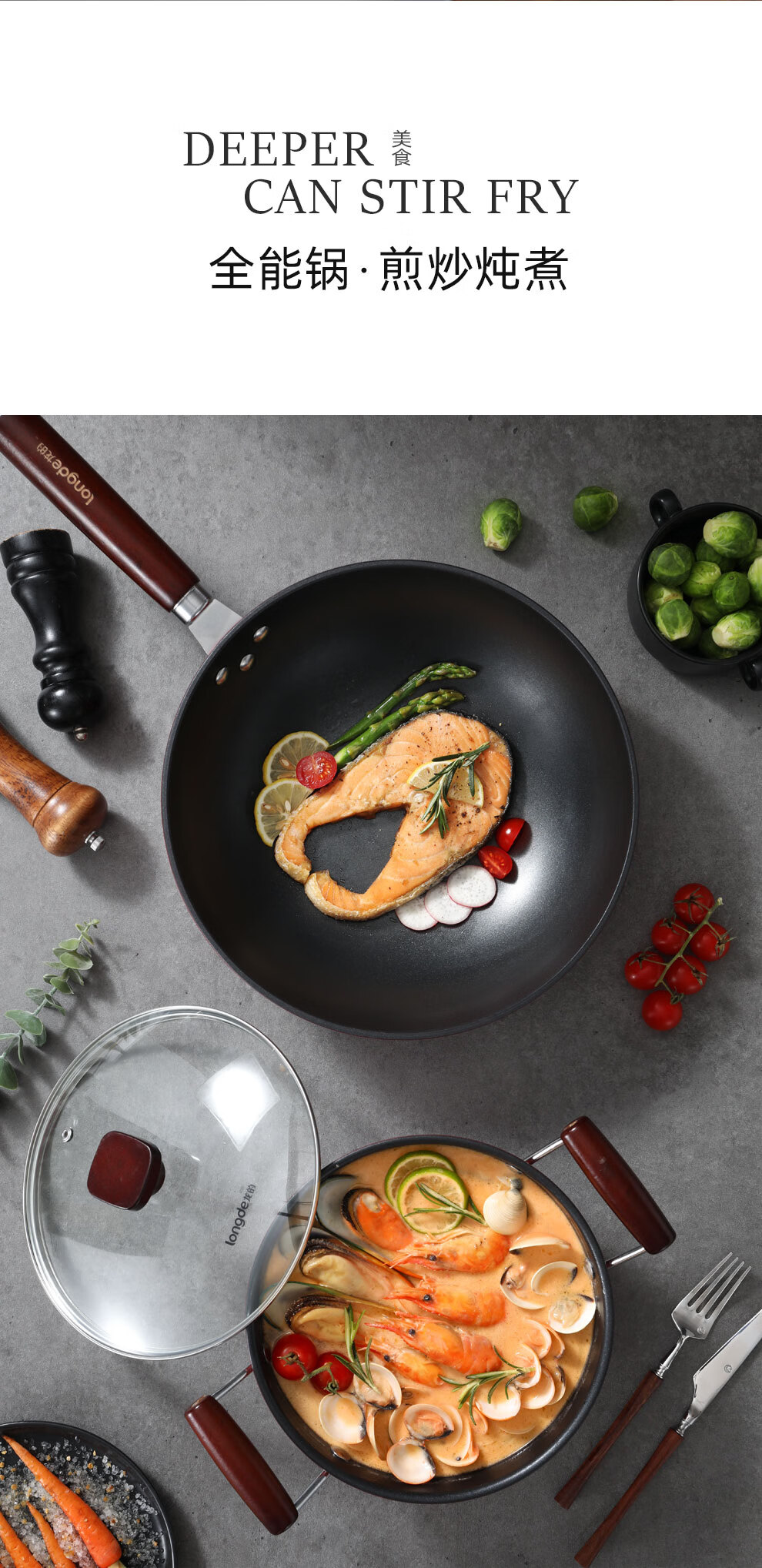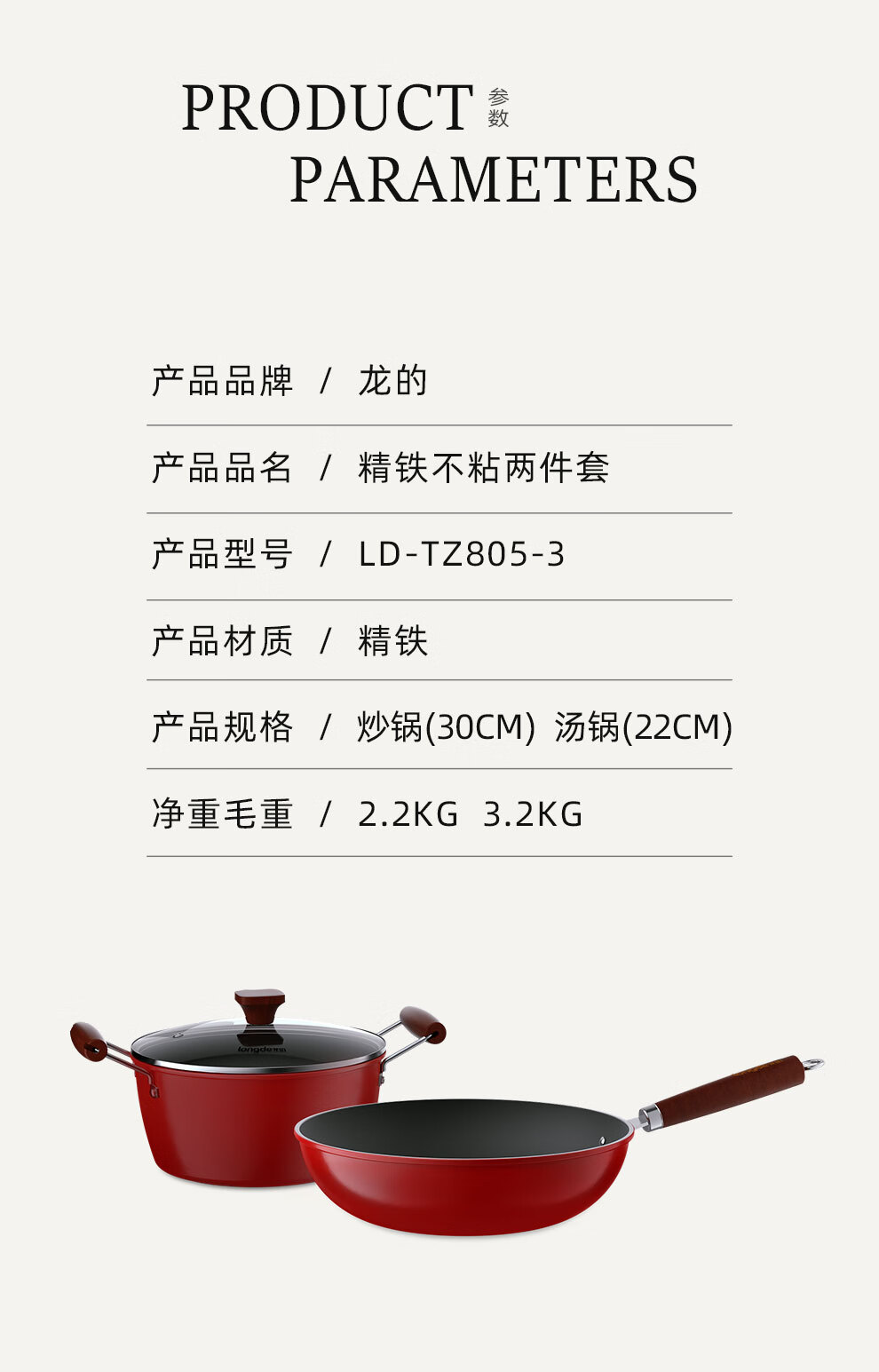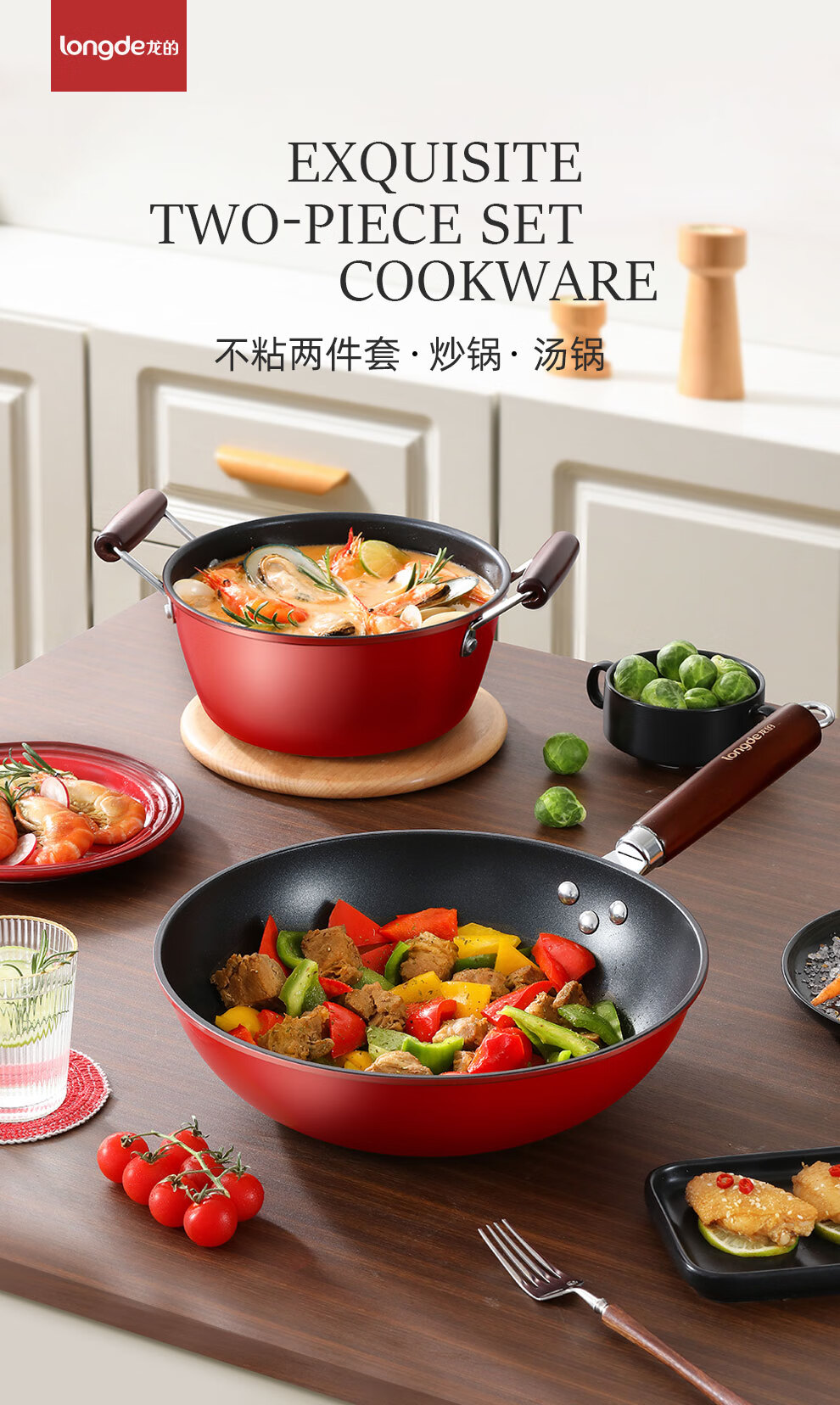 【小家电】龙的(longde)不粘锅炒锅汤锅两件套炒菜锅具电磁炉燃煤明火通用 LD-TZ805-3 HF