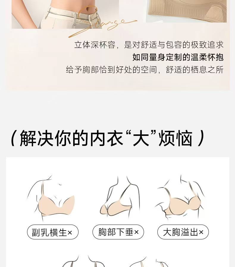 专为大胸设计 防下垂内衣粉底液隐形内衣女大胸显小提拉防下垂2025新款薄款无痕美背文胸罩