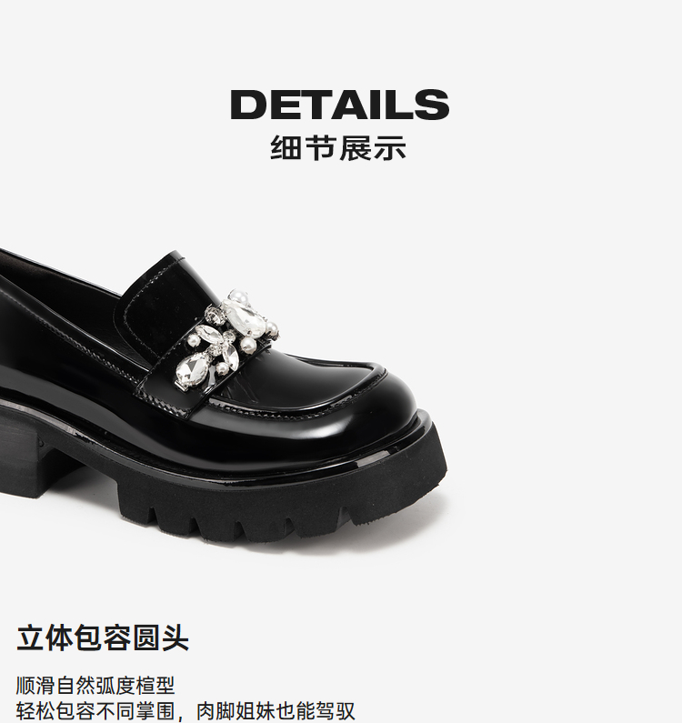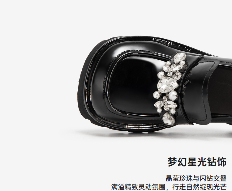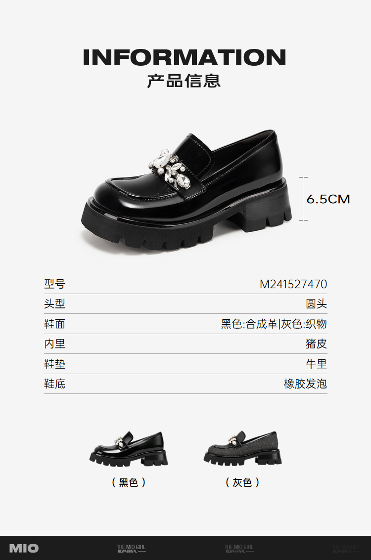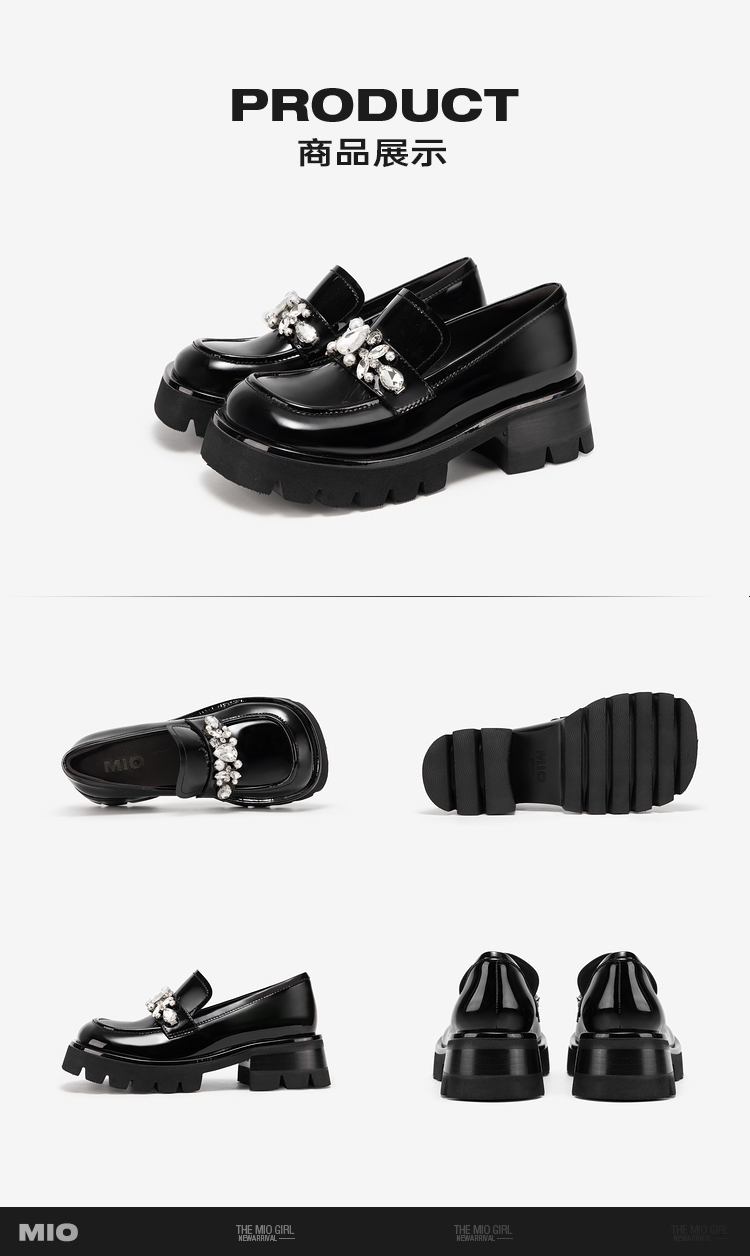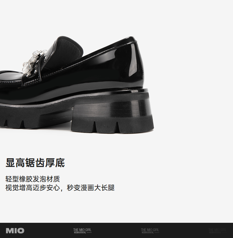 MIO米奥春季乐福鞋圆头中跟闪钻大头乐福鞋学院风单鞋M241527470