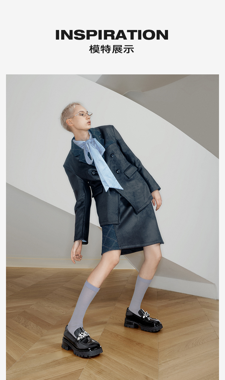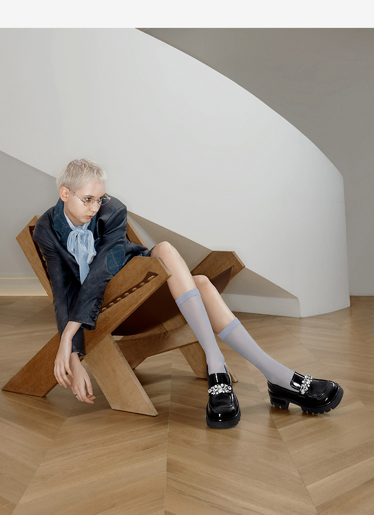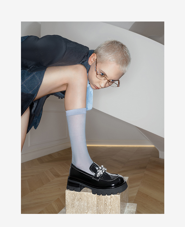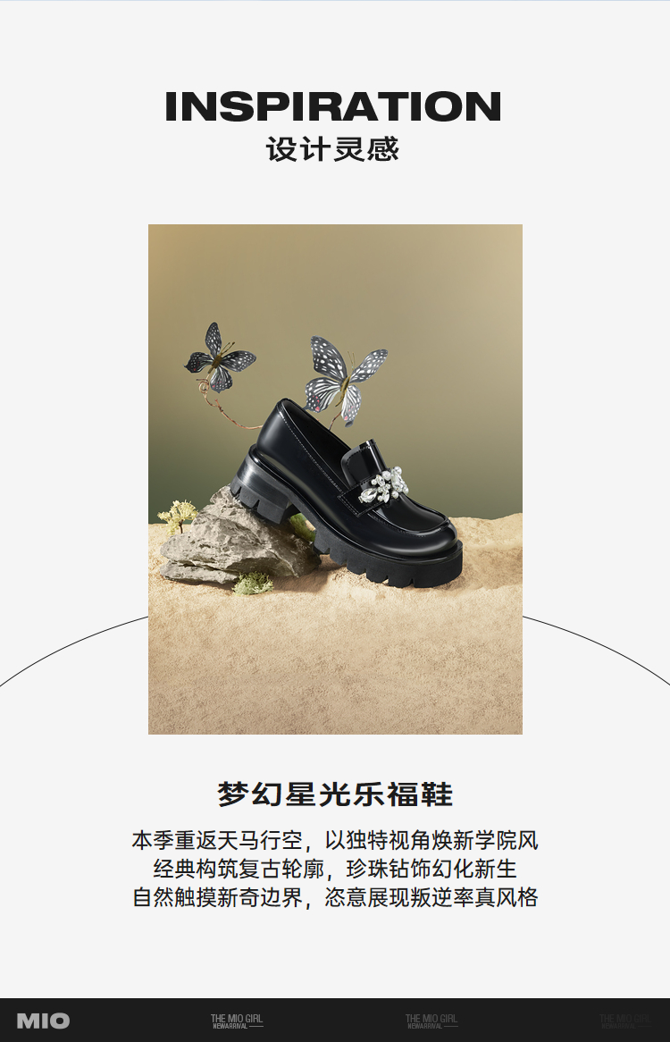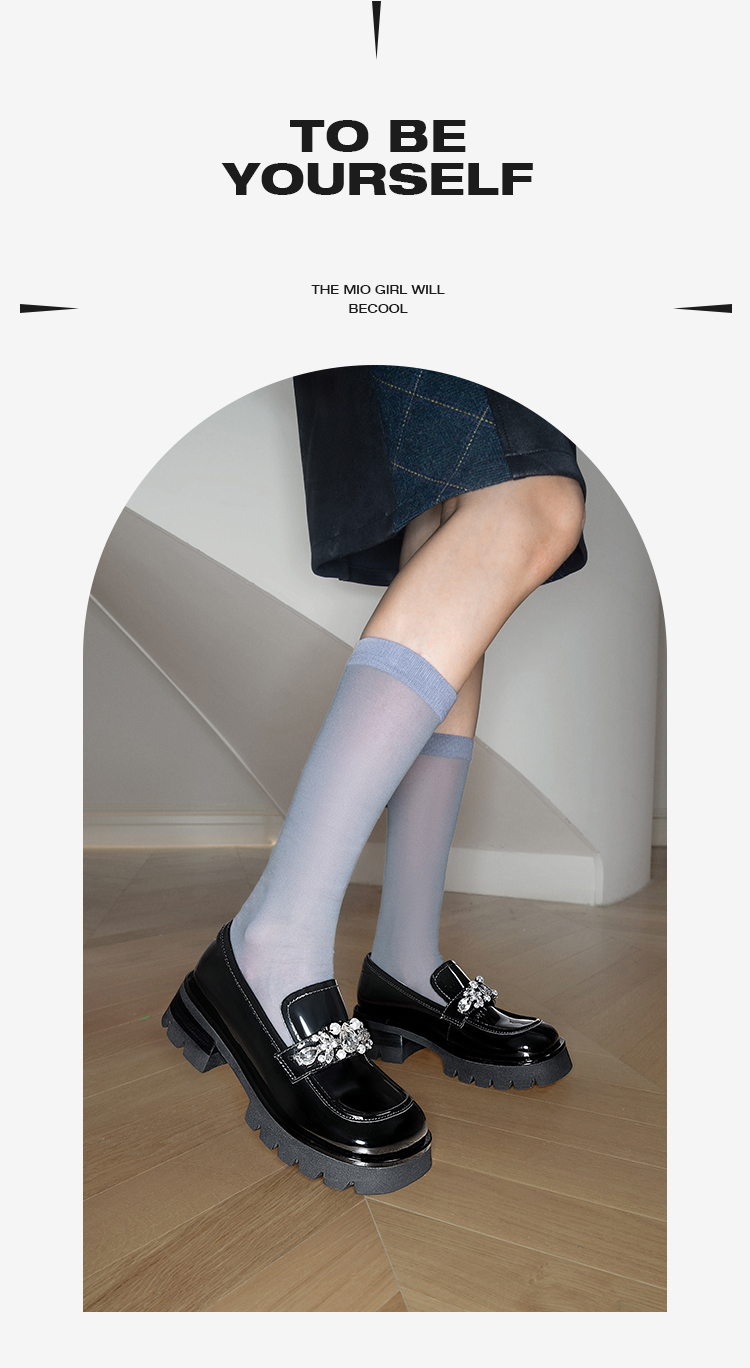 MIO米奥春季乐福鞋圆头中跟闪钻大头乐福鞋学院风单鞋M241527470