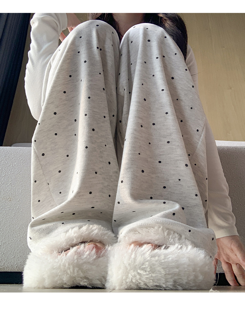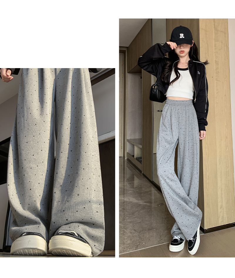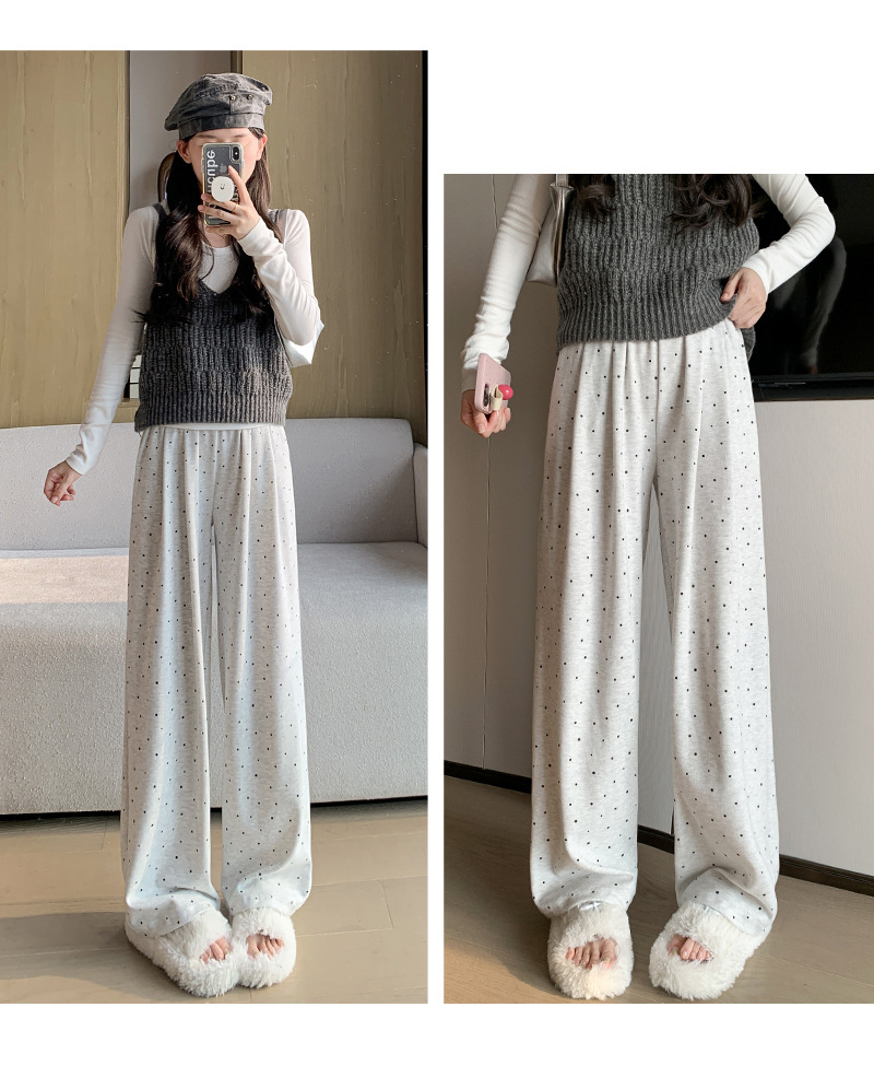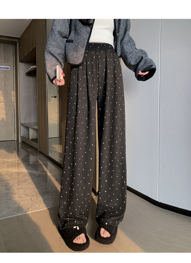 休闲波点糯米裤女春秋宽松高腰垂感小个子长裤软糯针织拖地阔腿裤2025新款小红书爆款