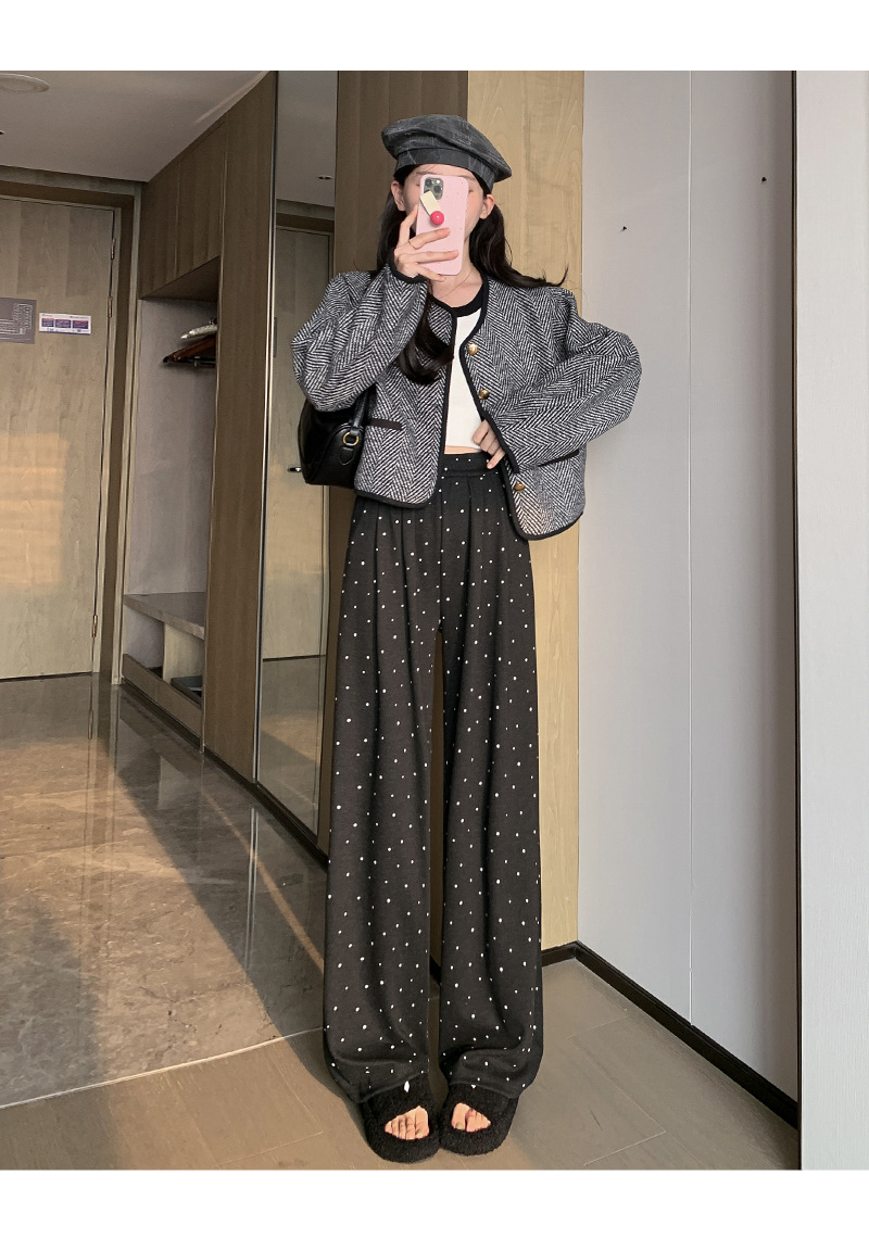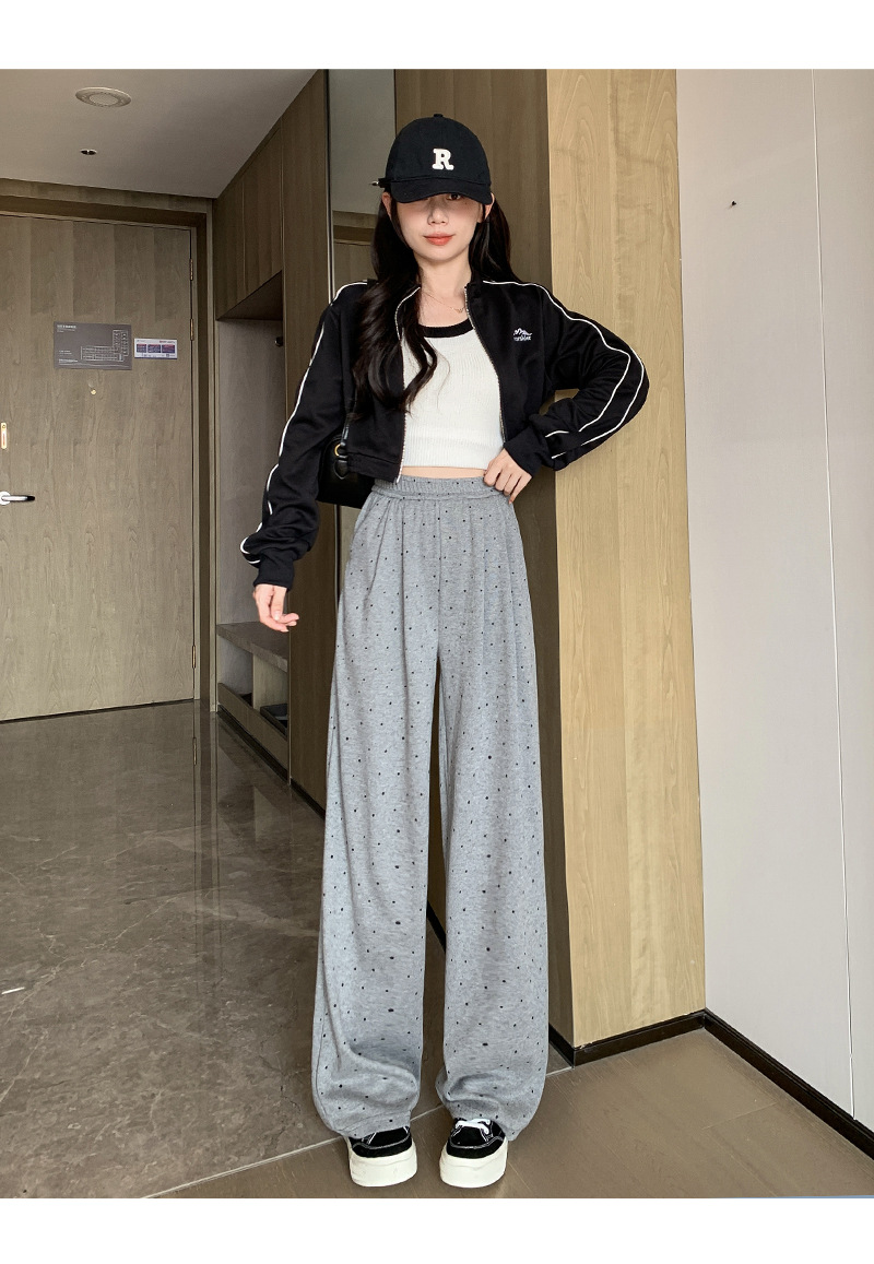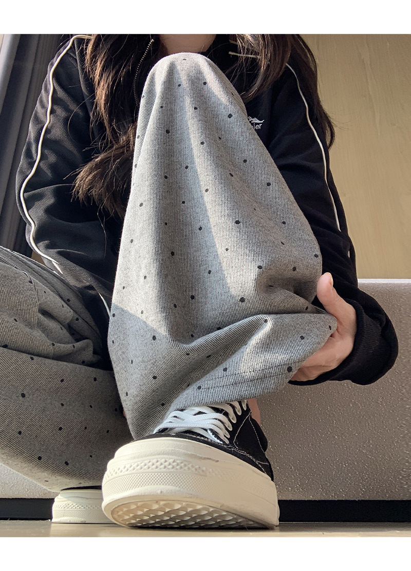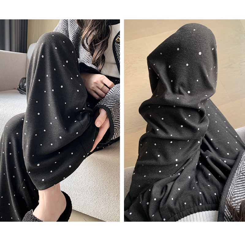休闲波点糯米裤女春秋宽松高腰垂感小个子长裤软糯针织拖地阔腿裤2025新款小红书爆款