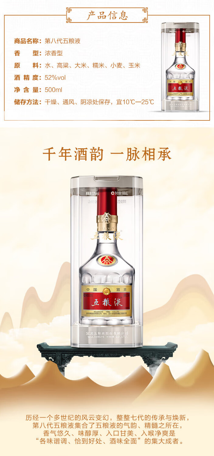 第八代五粮液/浓香型白酒/500ml/52°/单瓶装