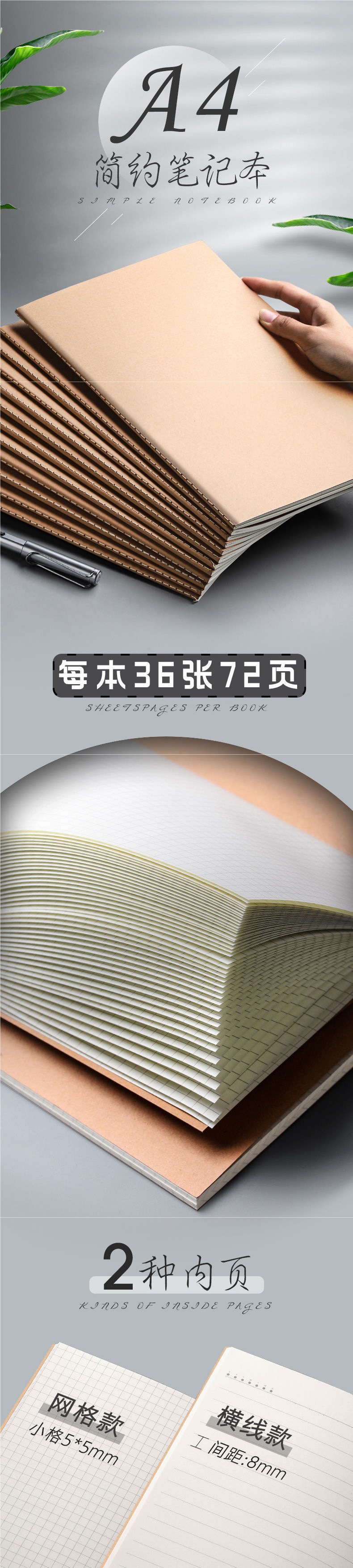 「10本装!数款可选」易记棒B5初高中生牛皮纸车线本笔记本本子加厚简约网格本横线英语